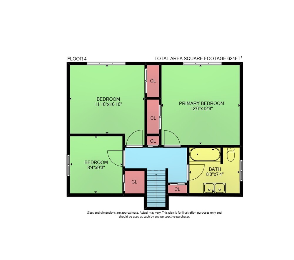Floor 3: 691 sq ft, Floor 4: 624 sq ft,