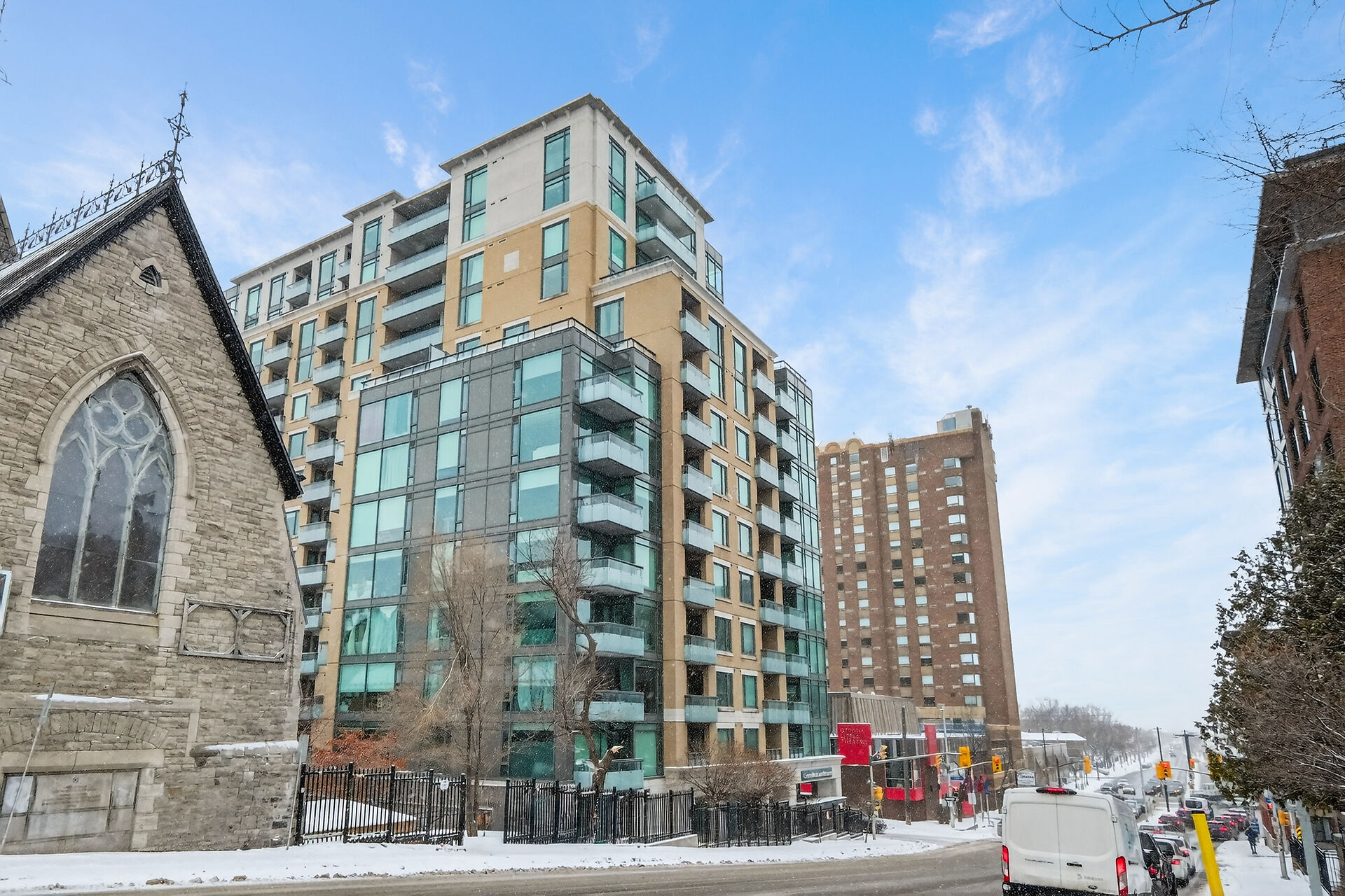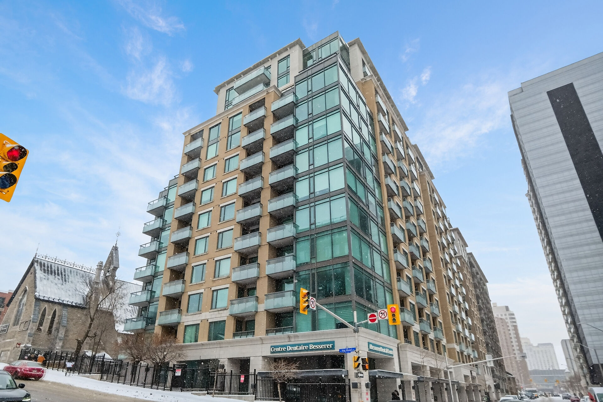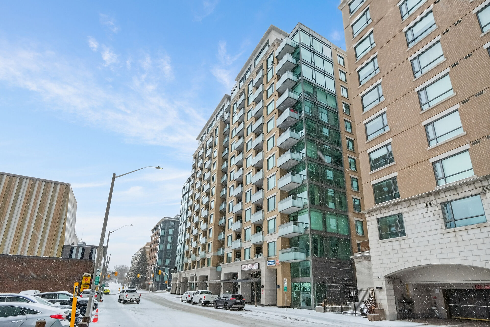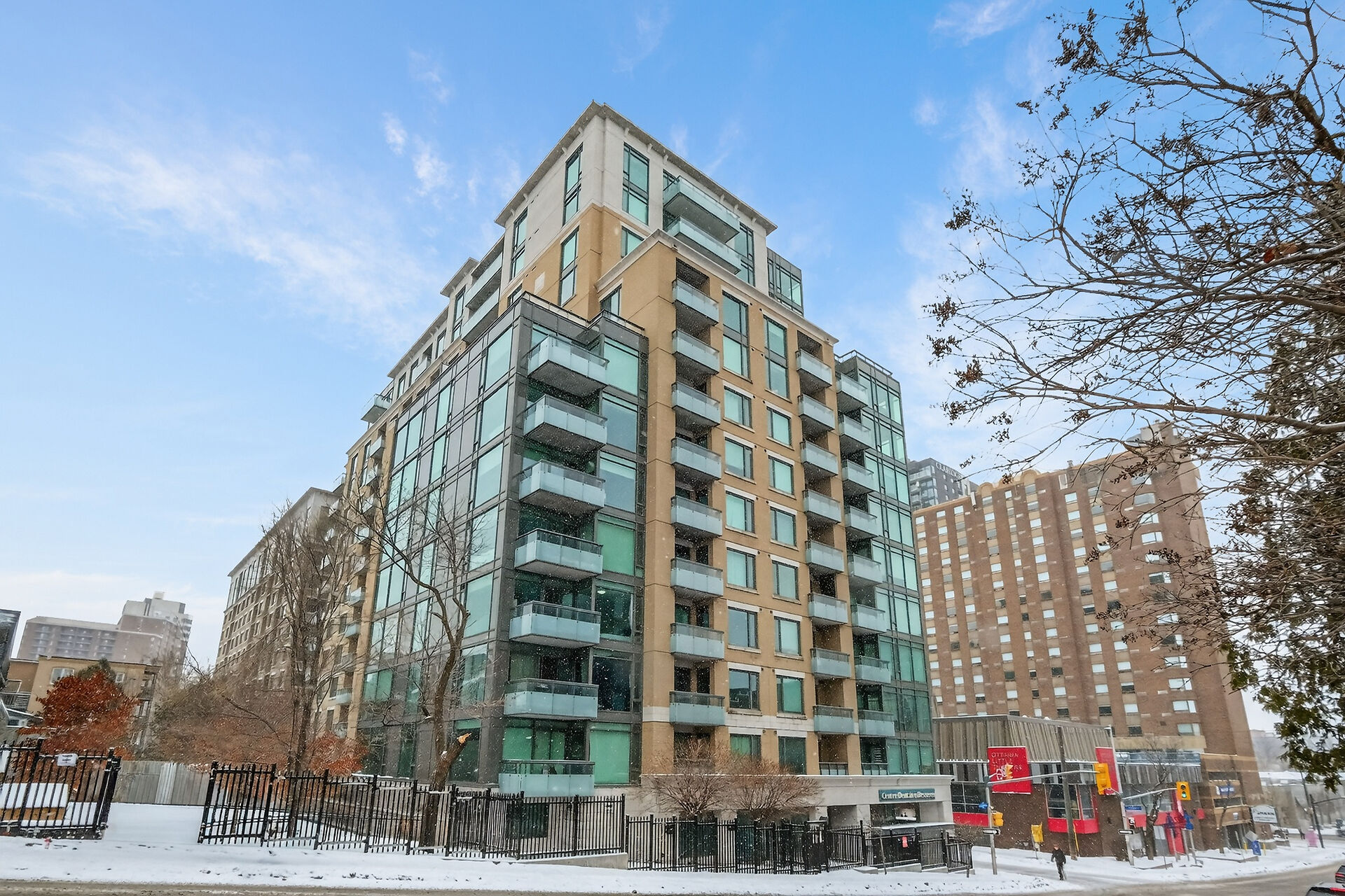 This sun-drenched two-bedroom corner suite offers the peak of downtown Ottawa living. Floor-to-ceiling windows and rich hardwood floors anchor an open-concept layout featuring a gourmet kitchen with premium appliances and a private balcony. The primary suite serves as a sophisticated sanctuary with a dedicated ensuite, while the versatile second bedroom is perfect for guests or a home office. Residents enjoy resort-style amenities, including an indoor pool, fitness center, and party room. Located steps from the University of Ottawa and LRT stations, this turnkey condo includes secure on-site security, underground parking and a private storage locker for ultimate urban convenience.