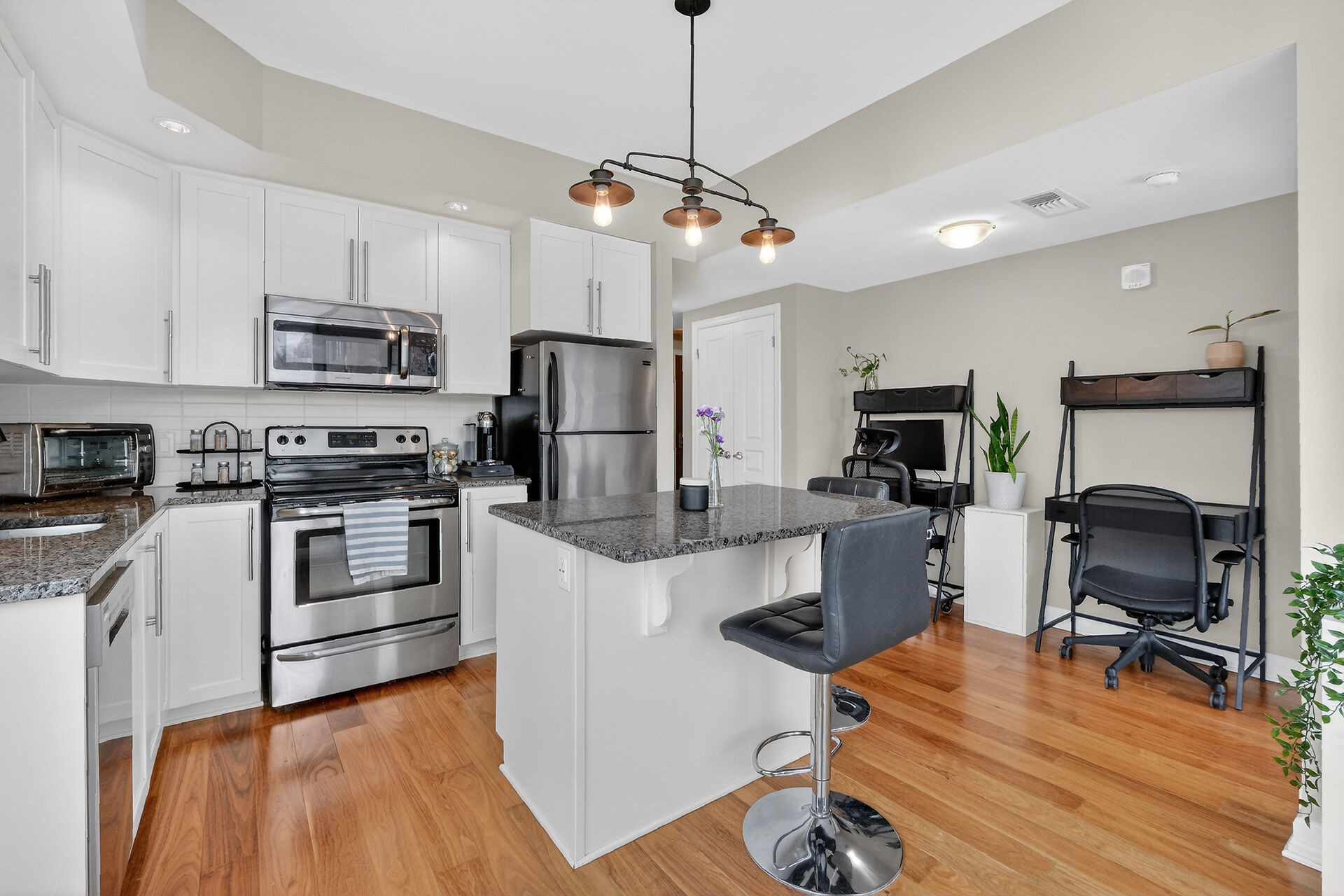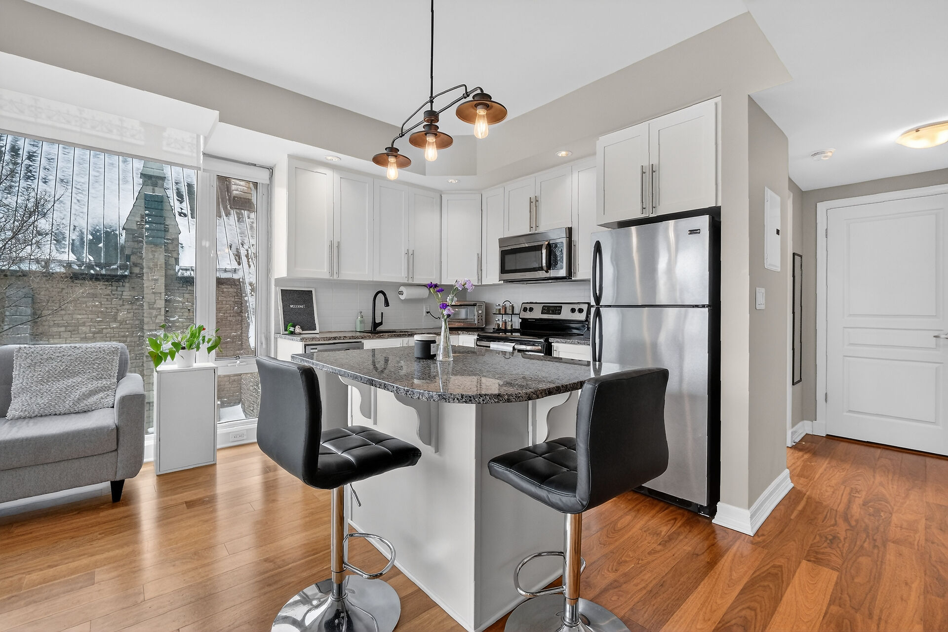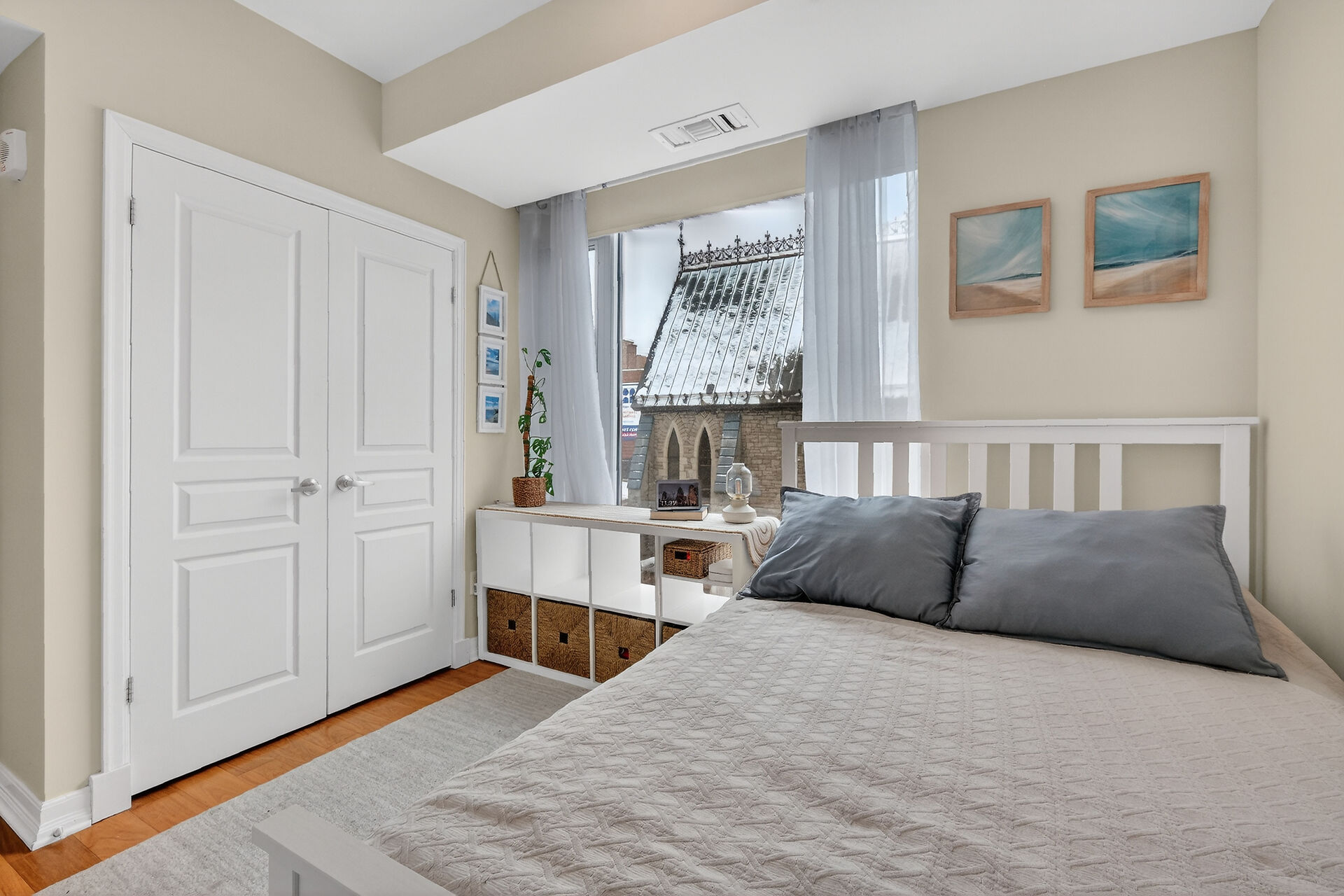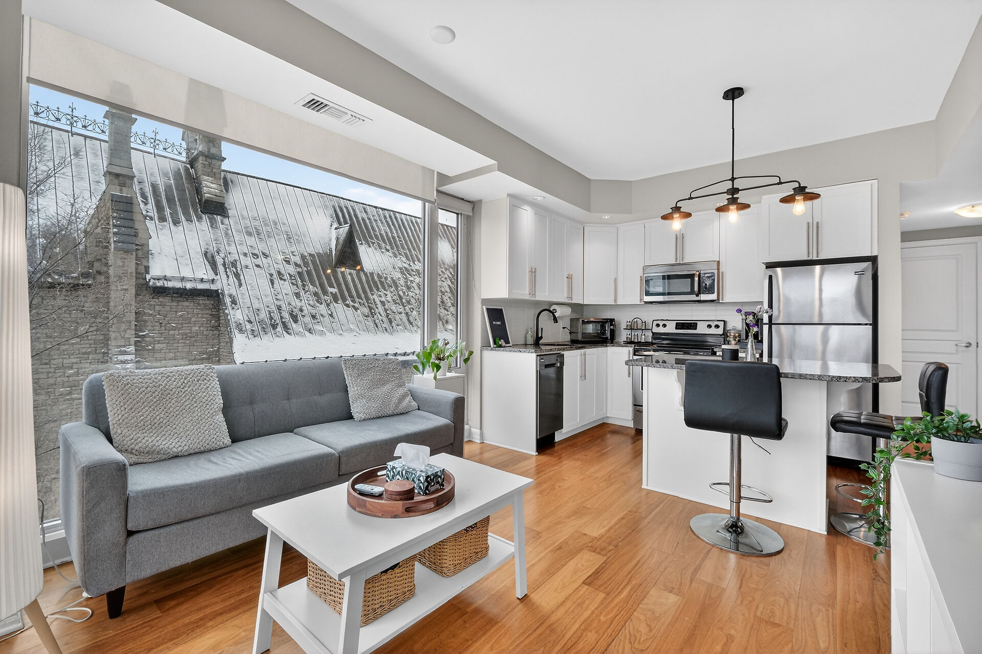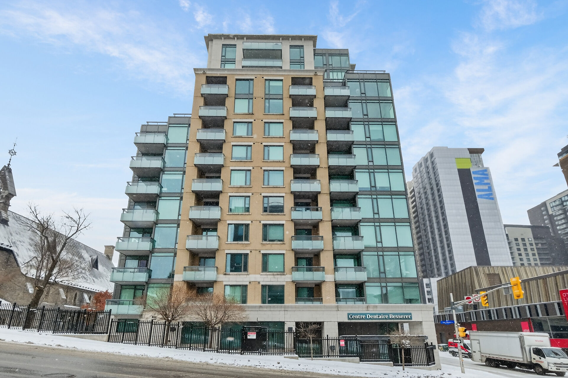 This sun-drenched two-bedroom corner suite offers the peak of downtown Ottawa living. Floor-to-ceiling windows and rich hardwood floors anchor an open-concept layout featuring a gourmet kitchen with premium appliances and a private balcony. The primary suite serves as a sophisticated sanctuary with a dedicated ensuite, while the versatile second bedroom is perfect for guests or a home office. Residents enjoy resort-style amenities, including an indoor pool, fitness center, and party room. Located steps from the University of Ottawa and LRT stations, this turnkey condo includes secure on-site security, underground parking and a private storage locker for ultimate urban convenience.