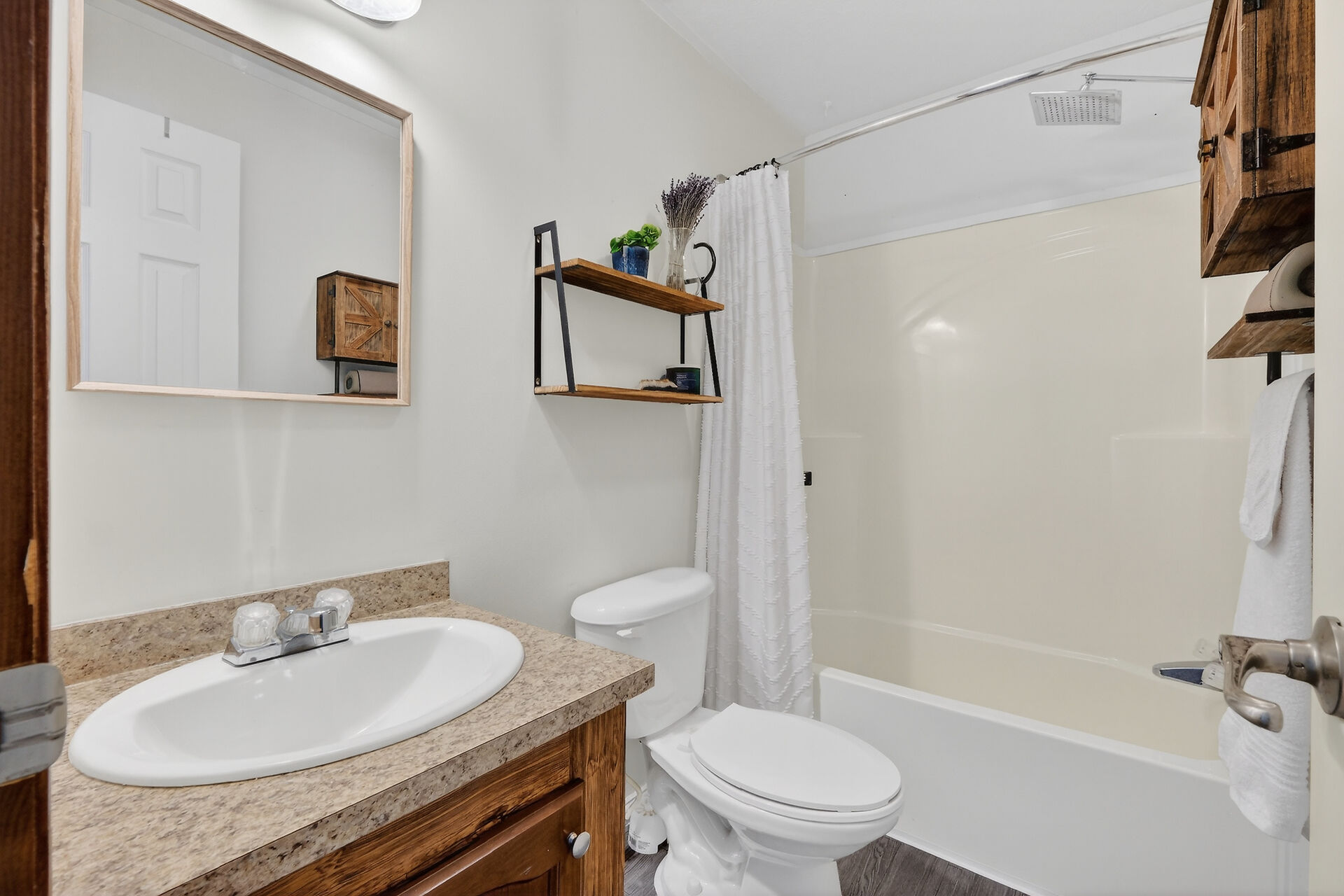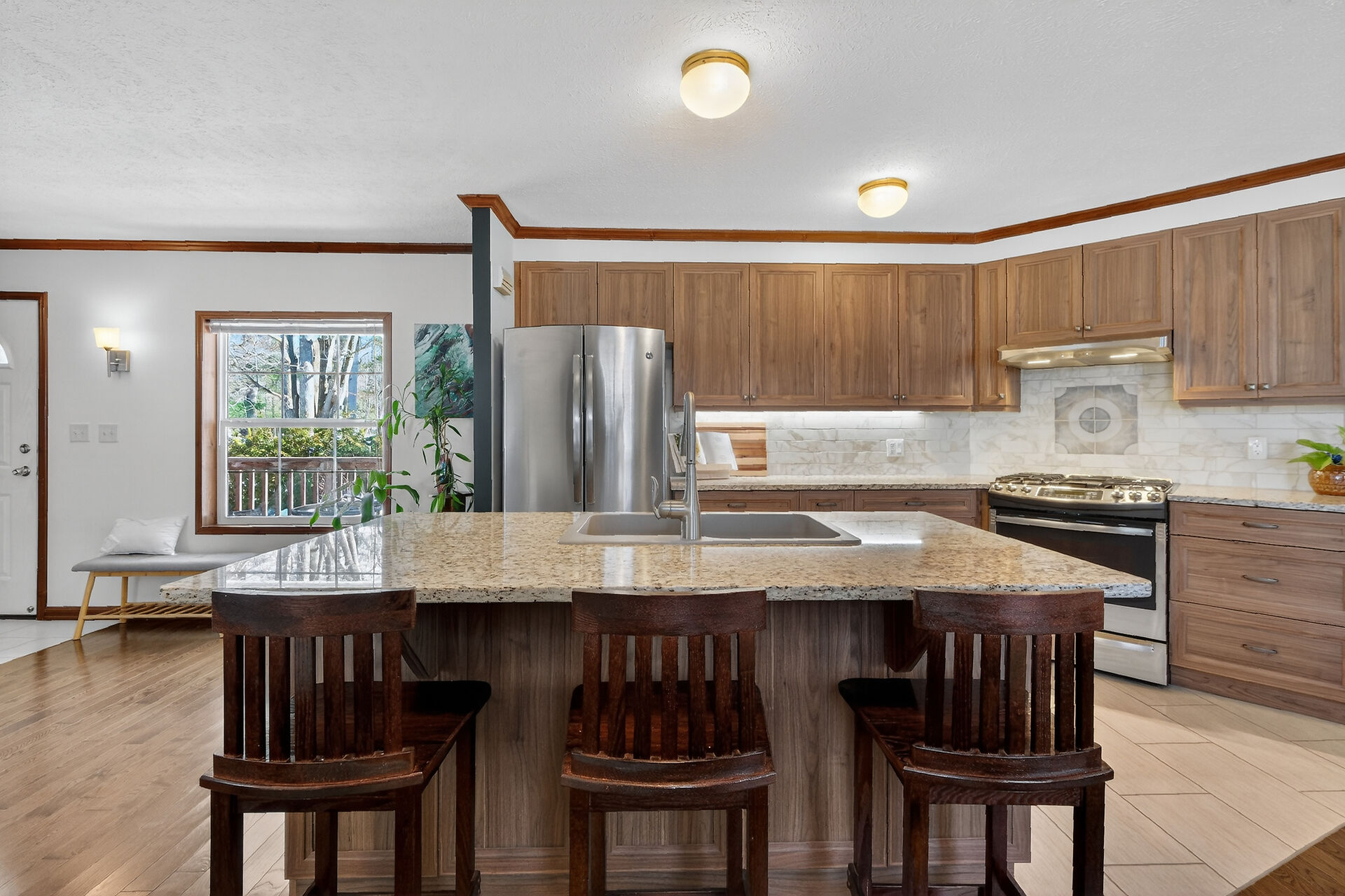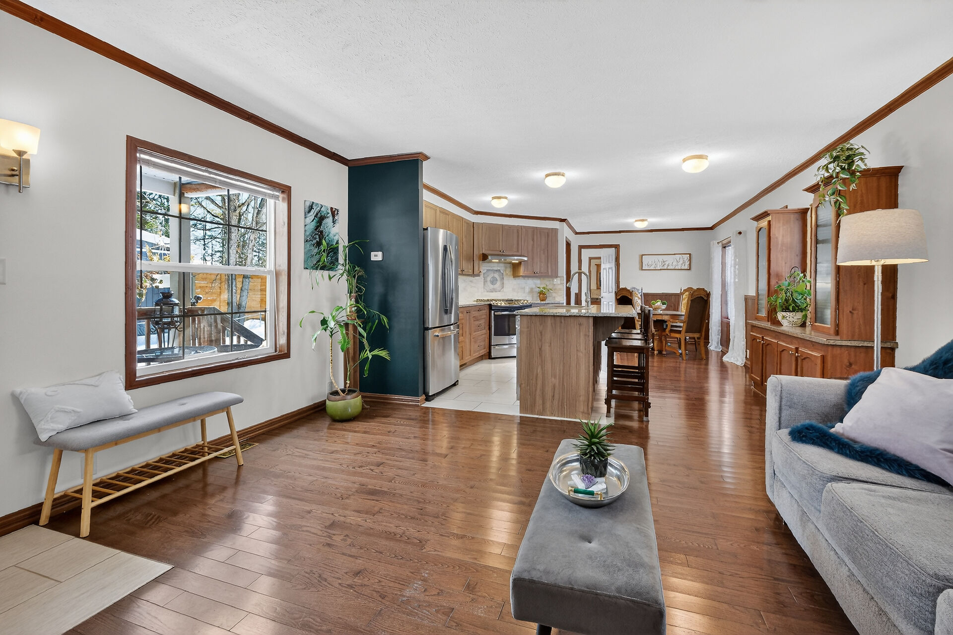 Meticulously maintained and elegantly appointed, this 3 bedroom, 2 bathroom detached mobile bungalow showcases a refined balance of comfort, style and everyday functionality. Constructed in 2011, this impressive 80' x 16' home offers over 1200 square feet of thoughtfully designed living space. Step inside to a sun-filled, open-concept interior where the living room, dining area and kitchen blend seamlessly creating an inviting setting for effortless entertaining. Rich hardwood flooring flows throughout the principal living areas and bedrooms, enhancing the home's upscale finishes. The chef-inspired kitchen is both stylish and functional, featuring granite countertops and stainless steel appliances.