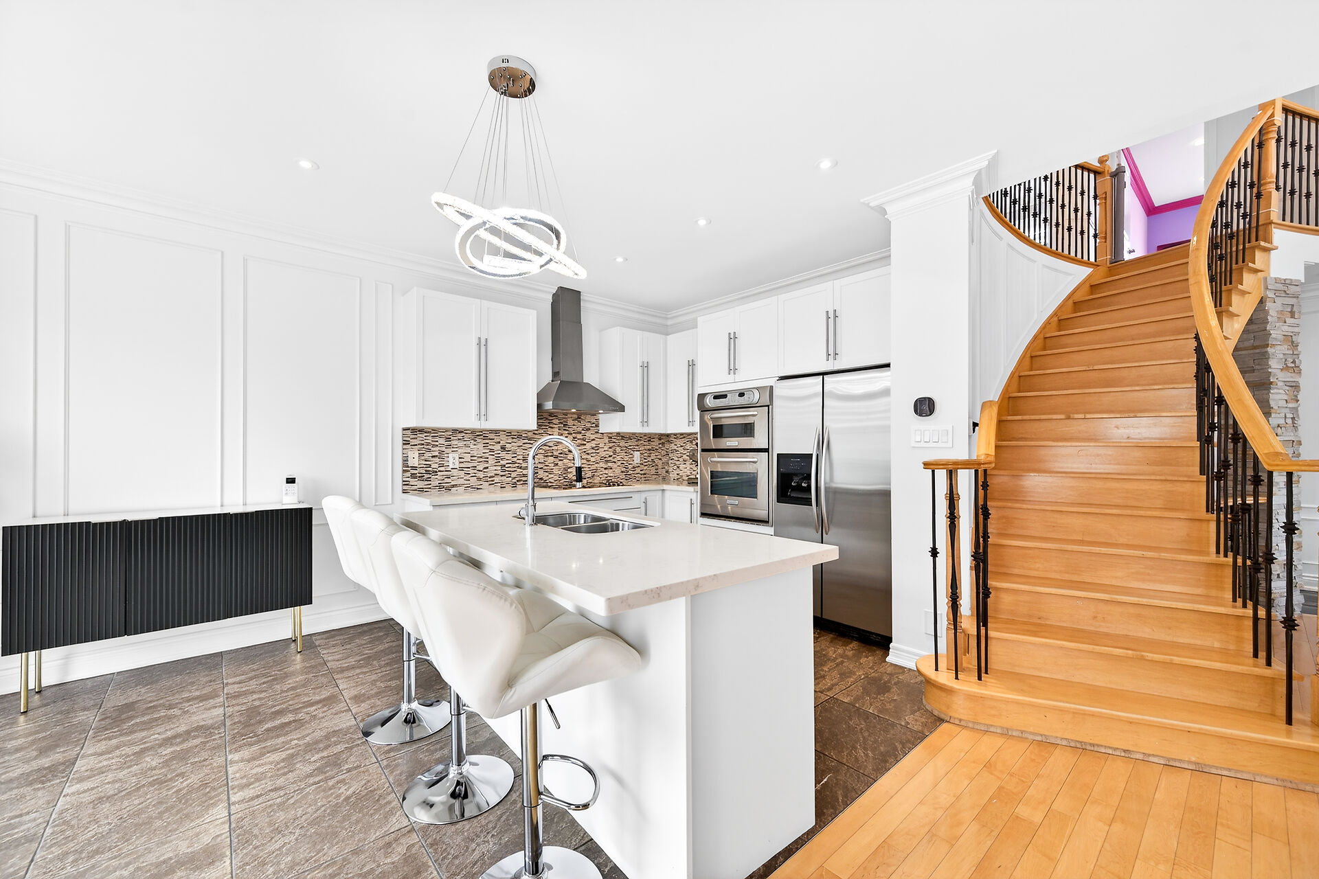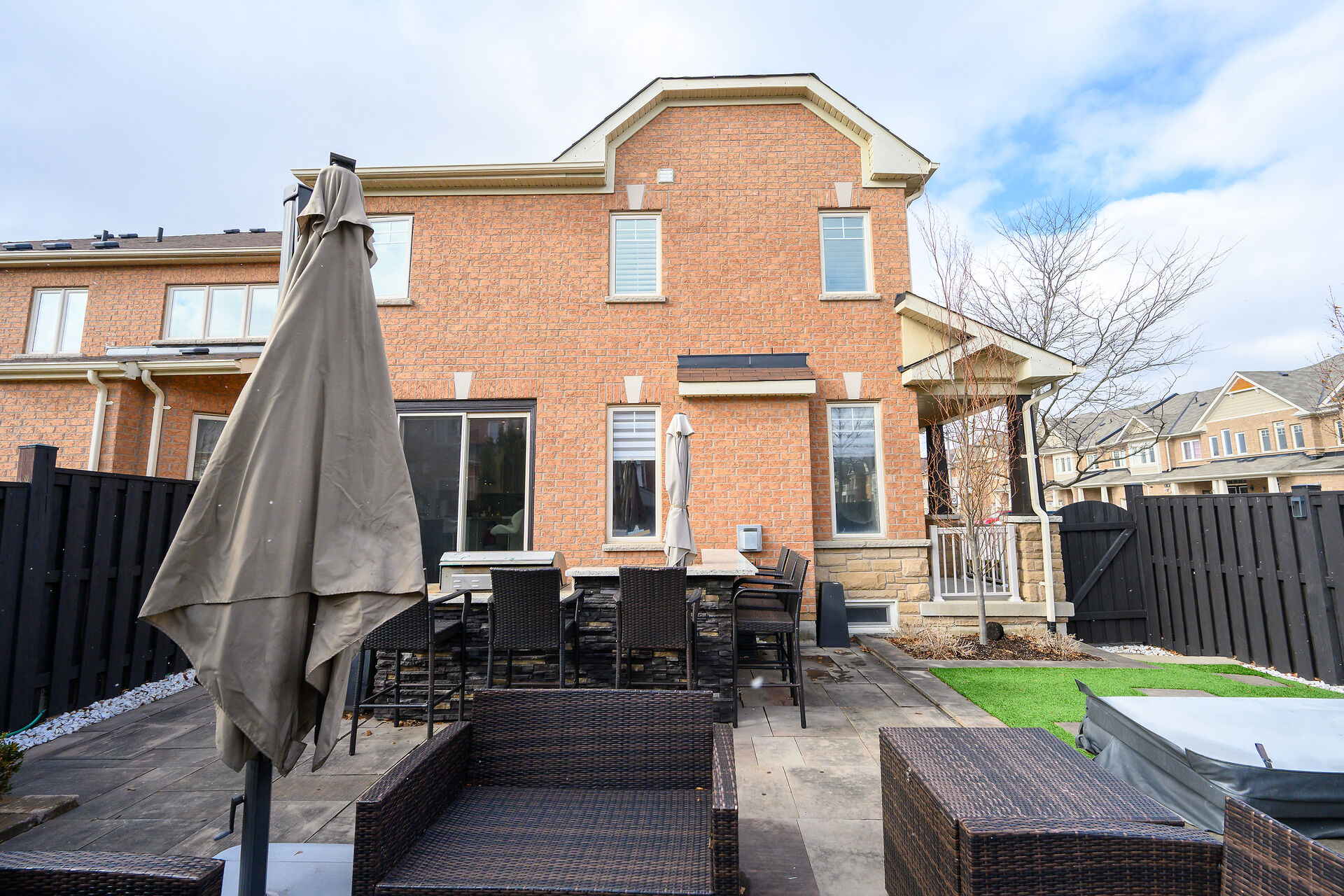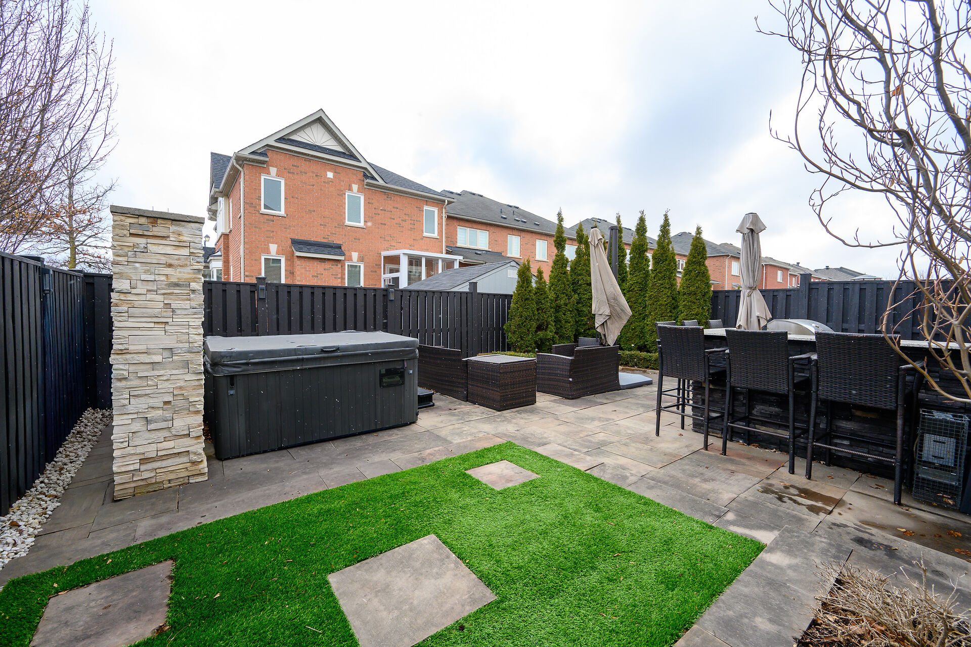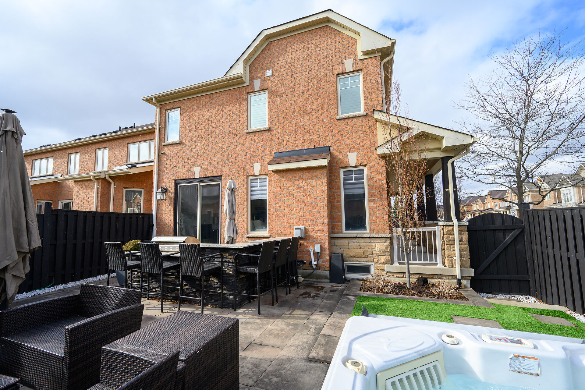 Welcome To This Beautifully Maintained Corner Lot Townhome In Prestigious Jefferson, Richmond Hill. This Sun-Filled Freehold Offers 3+1 Bedrooms And 3.5 Bathrooms With A Functional Layout. No Sidewalk And Private Driveway For 3 Cars Plus Garage. Enjoy A Resort-Style Backyard With Outdoor Kitchen, Hot Tub, Stone Patio, And Mature Trees. Features Include Smooth Ceilings, Crown Moulding, Wainscoting, Pot Lights, And Wood Shutters. Open-To-Above Dining With 18 Ft Ceiling And Crystal Chandelier. ChefâÂÂs Kitchen With Quartz Counters And Built-In Appliances. Finished Basement With Spa-Inspired Shower, Heated Floors, And Steam-Ready Setup. A True Turnkey Home With Exceptional Detail.
