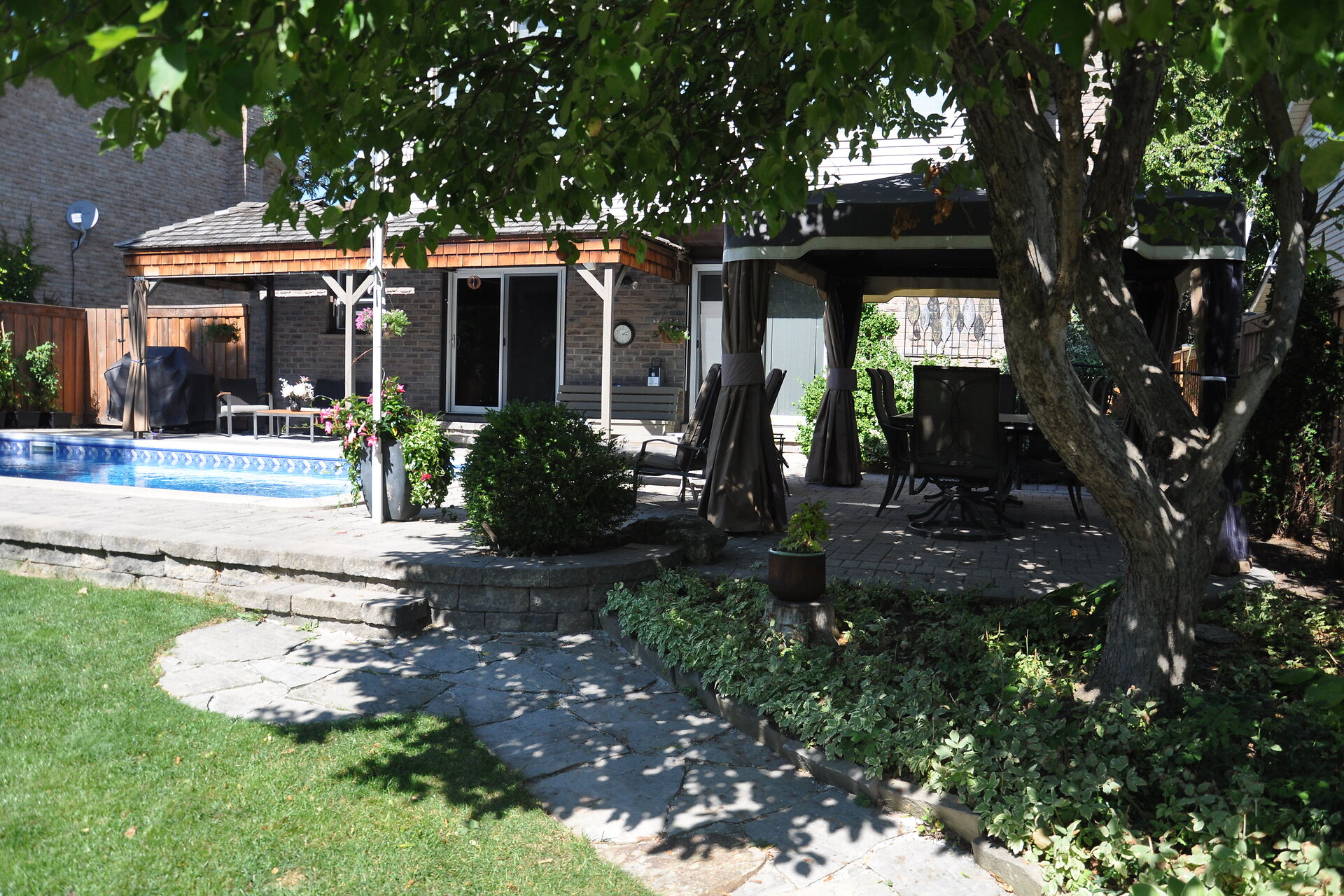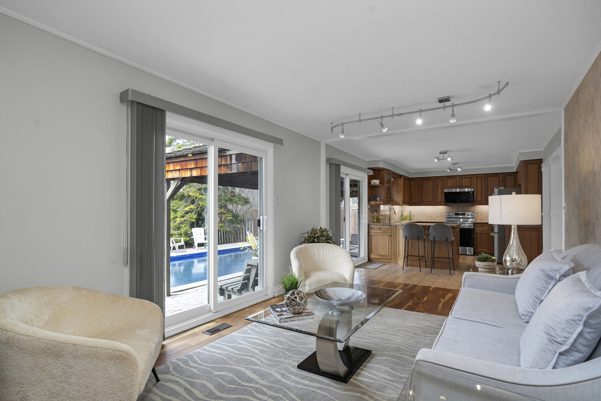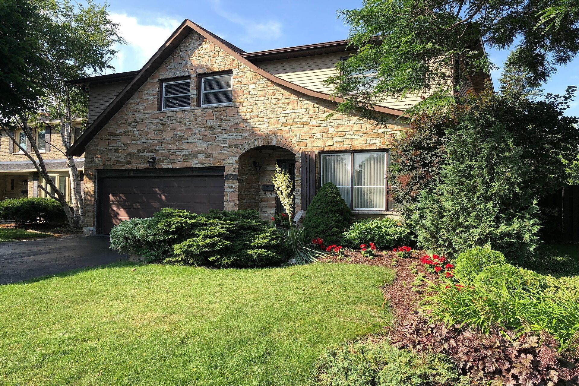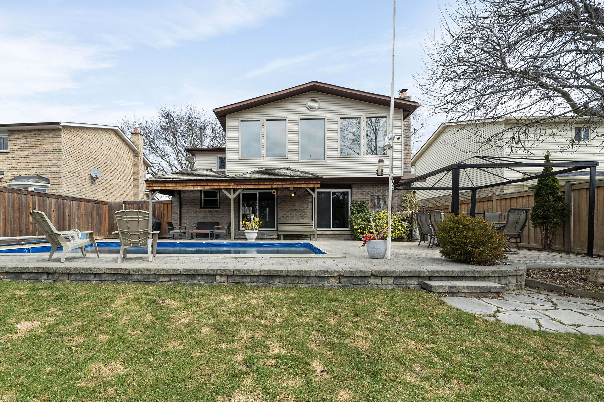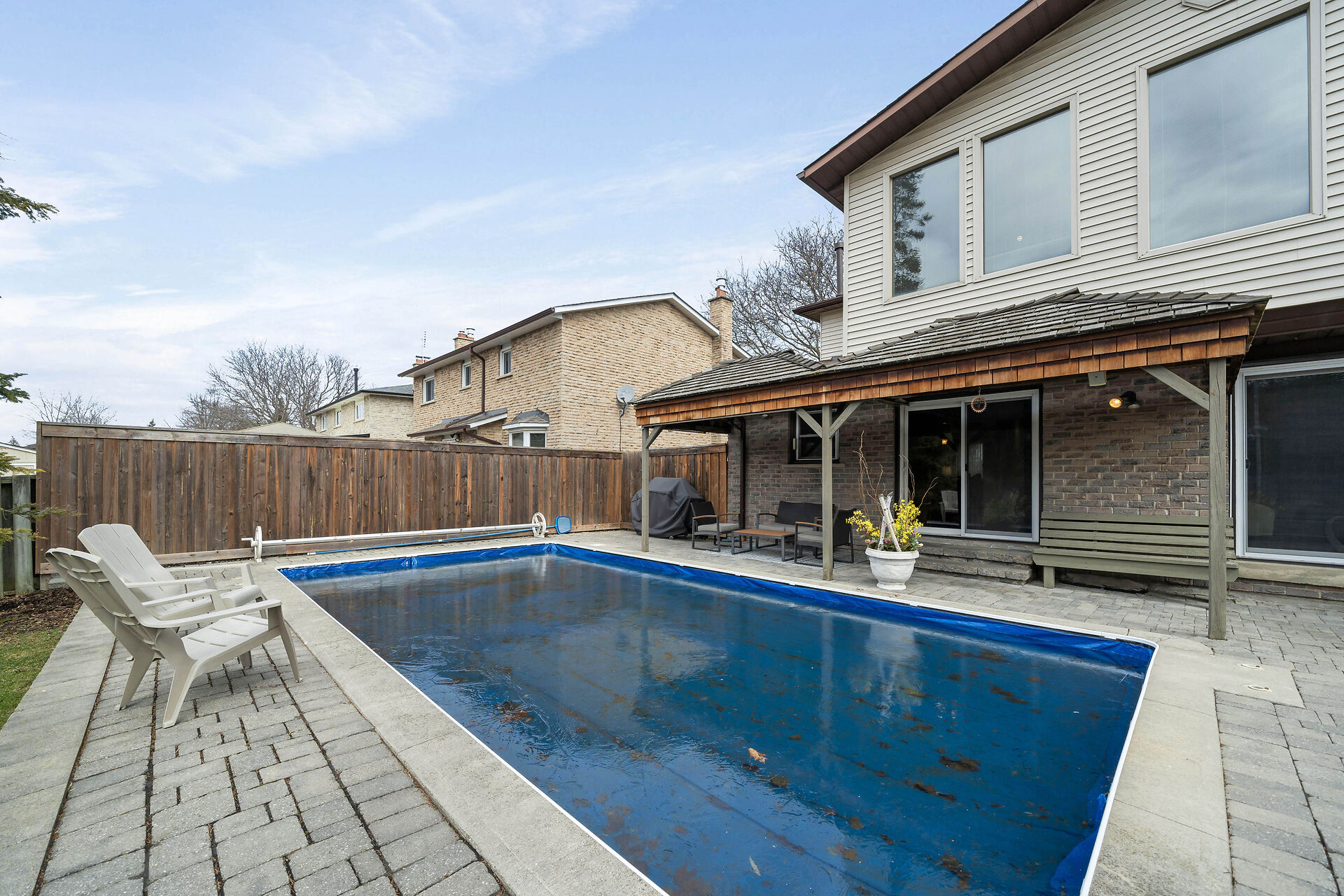 First listing with a ravine view on the street in five years! Spacious four -bedroom family home has a private landscaped yard with pool on a quiet crescent. Enjoy the scenic path network that takes you to two schools and a playground without crossing a street! Watch the seasons change in the forest from the spectacular second floor custom bonus room. This home has been lovingly cared for and is move in ready. Get ready to entertain with four driveway parking spaces, attractive living/dining area with stunning acacia hardwood floors, generous kitchen/family room leading to covered deck, pool and yard. Unmatched privacy in the sought-after Timberlea neighborhood! Walking distance to shops and restaurants.