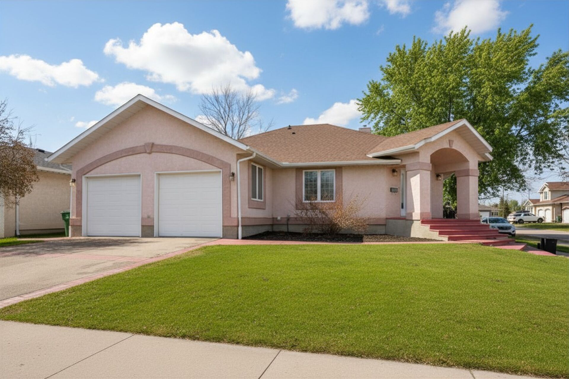 Discover style and elegance in this custom-built executive home in a desirable Sunningdale cul-de-sac, steps from parks, schools, and paths. Enter the gracious foyer leading to a spacious living room with a vaulted ceiling, seamlessly joining a charming dining area. Large south-facing windows flood these spaces with light. The oak kitchen boasts quartz countertops, storage & an island. A window & patio door overlook the deck & fenced yard. 5 Bedrooms, 3 Baths & Main Floor Laundry. The primary suite w/walk-in closet & updated ensuite. The lower level showcases space & features a family room w/gas fireplace, a game area, 2 bedrooms, bath & major storage. Dbl. att. heated garage w/cubbies completes this home.