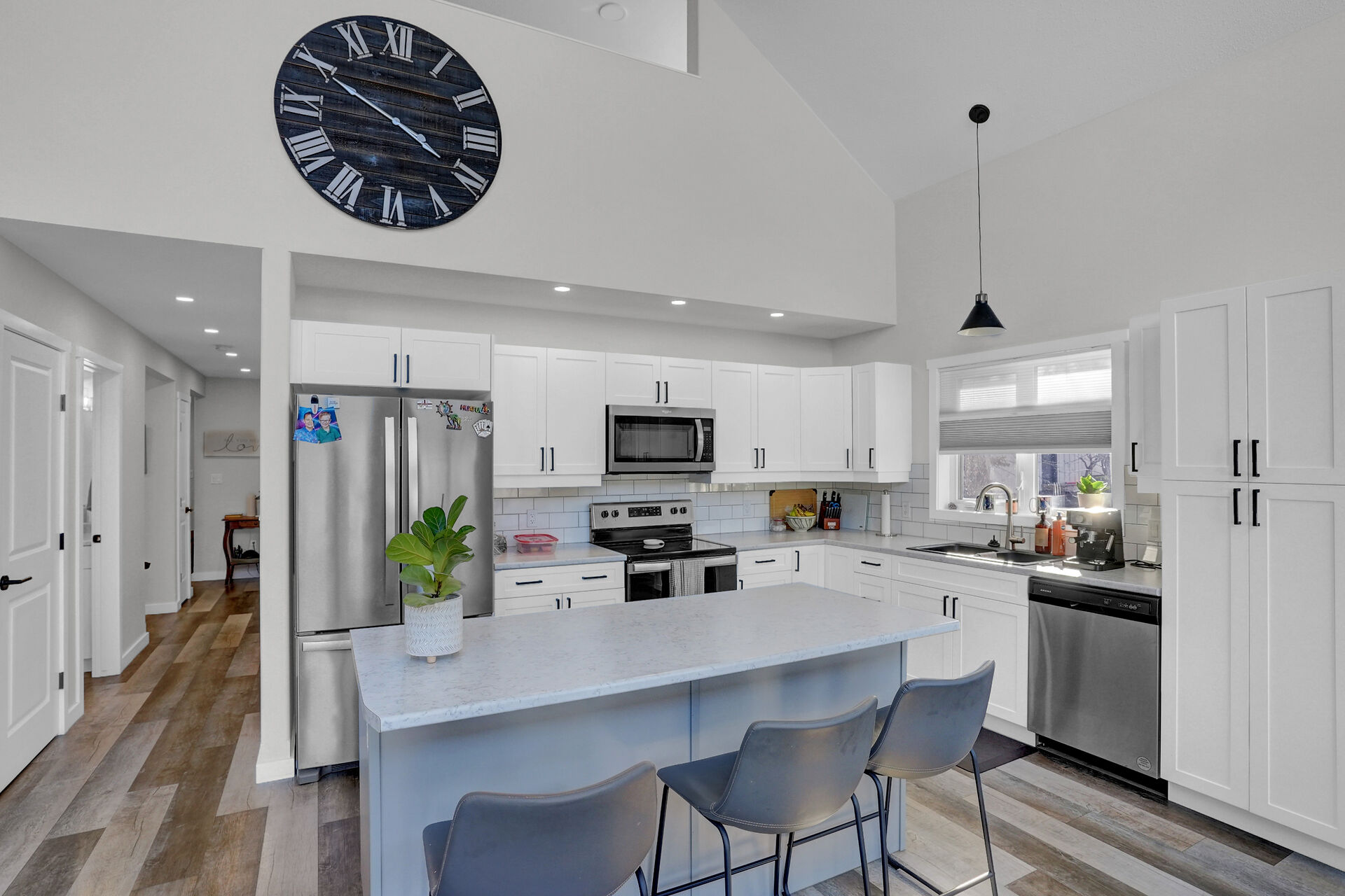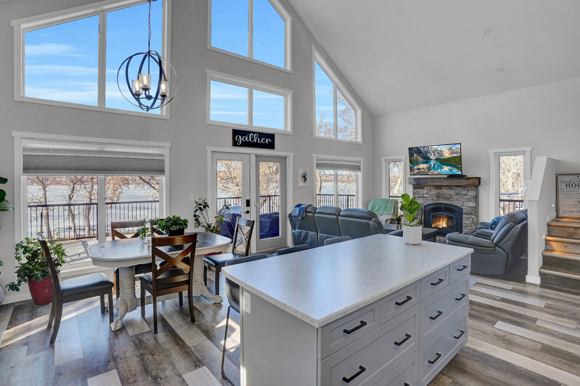 Welcome to a luxurious lakefront 4 season living in North Grove on Buffalo Pound Lake. Just a short drive from Moose Jaw and Regina, this stunning home offers upscale comfort with breathtaking lake views. The open-concept design features chalet-style windows, a wood burning fireplace, and a gourmet kitchen. The main floor includes a primary bedroom with a walk-in closet and ensuite, a powder room, laundry, and access to the triple heated garage. Upstairs, a flex room, 2 bedrooms, and a bath await. The outdoor deck and manicured grounds enhance relaxation. Enjoy the dock, boat lift, and private lake access for year-round recreation in this serene resort community.