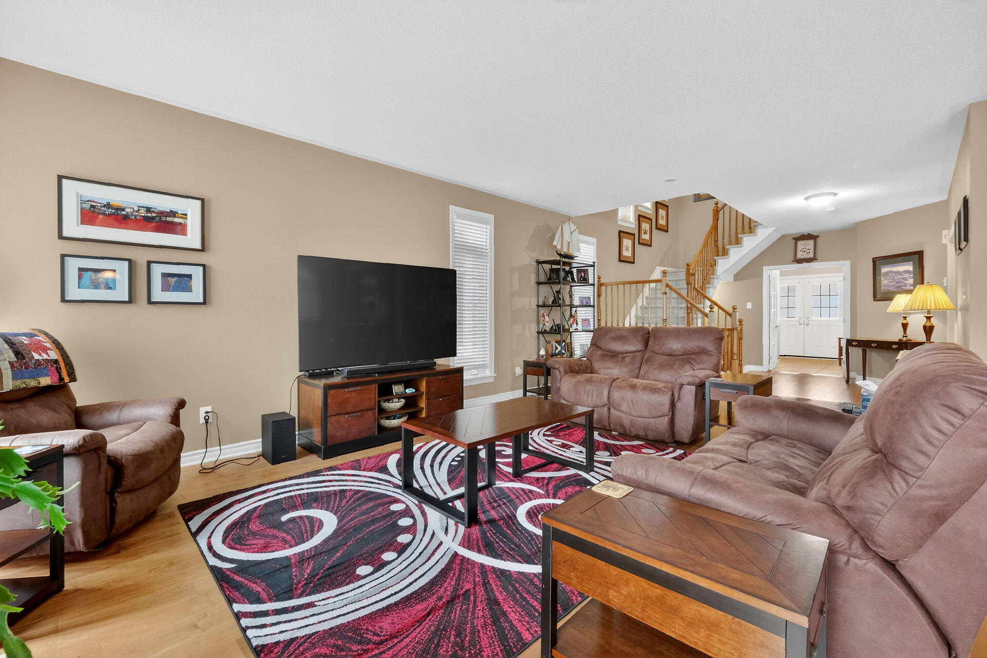 Welcome to the popular Bristol model by Tamarack Homes in sought-after Jackson Trails, Stittsville. Prime location minutes to DND Carling Campus, Tanger Outlets, Canadian Tire Centre, schools, parks, transit and trails. Bright open concept main floor with 9' ceilings, hardwood flooring and main floor den/office. Stylish kitchen with island overlooks living room with gas fireplace and dining area with walkout to maintenance-free deck and fully fenced yard. Spacious primary retreat with walk-in closet and 5-piece ensuite. Convenient second floor laundry. Finished lower level with family room, 5th bedroom and full bath. Double garage and interlock driveway complete this move-in ready home.
