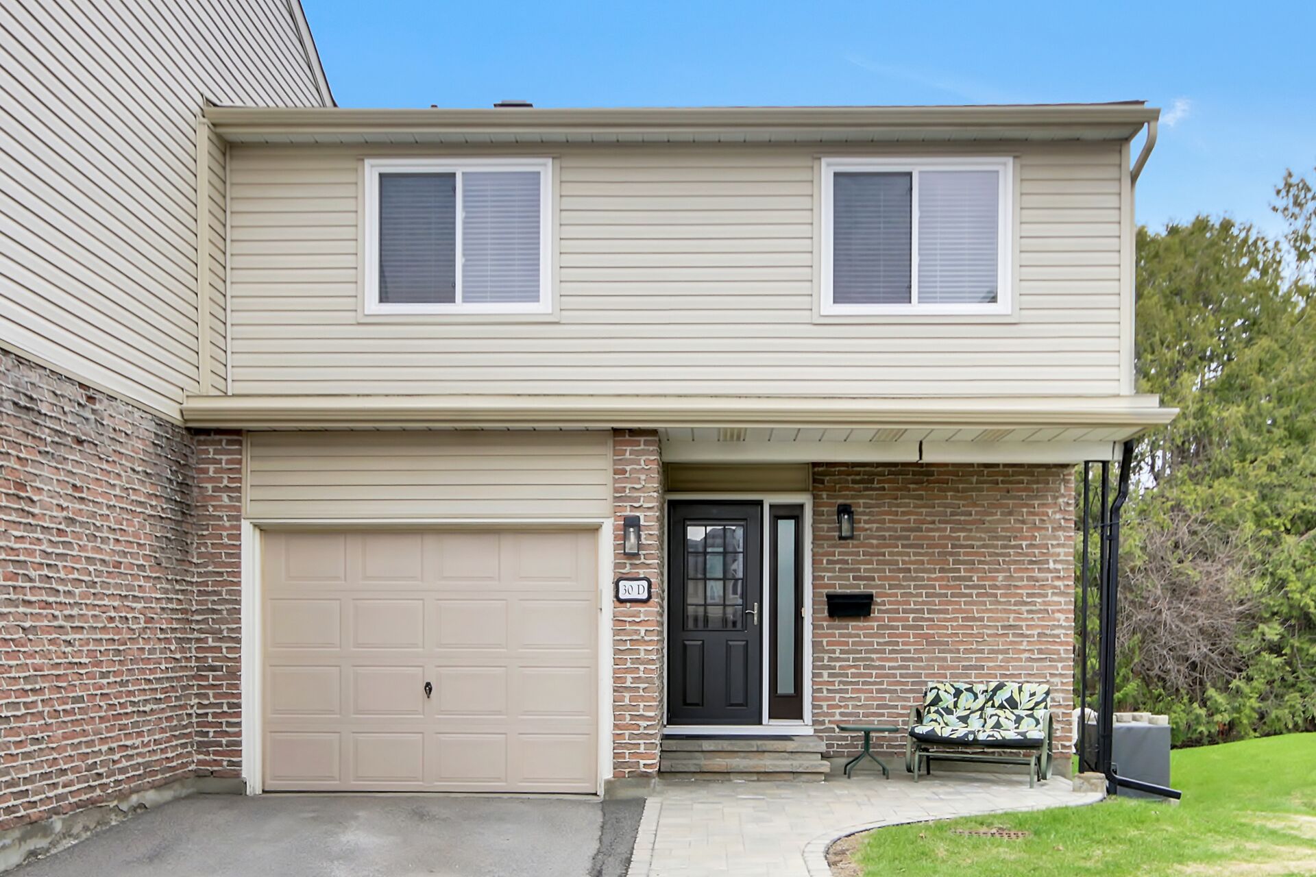 30 D Black Forest Lane. Premium End unit with additional windows for natural light. Best location in the complex with a massive side yard and a large deck for entertaining. Nicely landscaped, private entry with interlocking brick. Beautifully maintained by long time owners with a newer kitchen, stainless steel appliances and quartz counter tops. Open concept to the dining room with views to the back deck. Laminate flooring through the main level and 2nd level. Updated main floor powder room with a window. Staircase flooded with natural light by a large square window. Renovated and expanded main bathroom offers a soaker tub and second vanity for a dressing area. 4 Exceptionally spacious bedrooms.