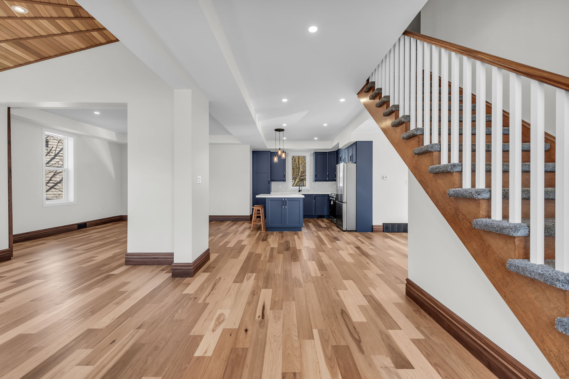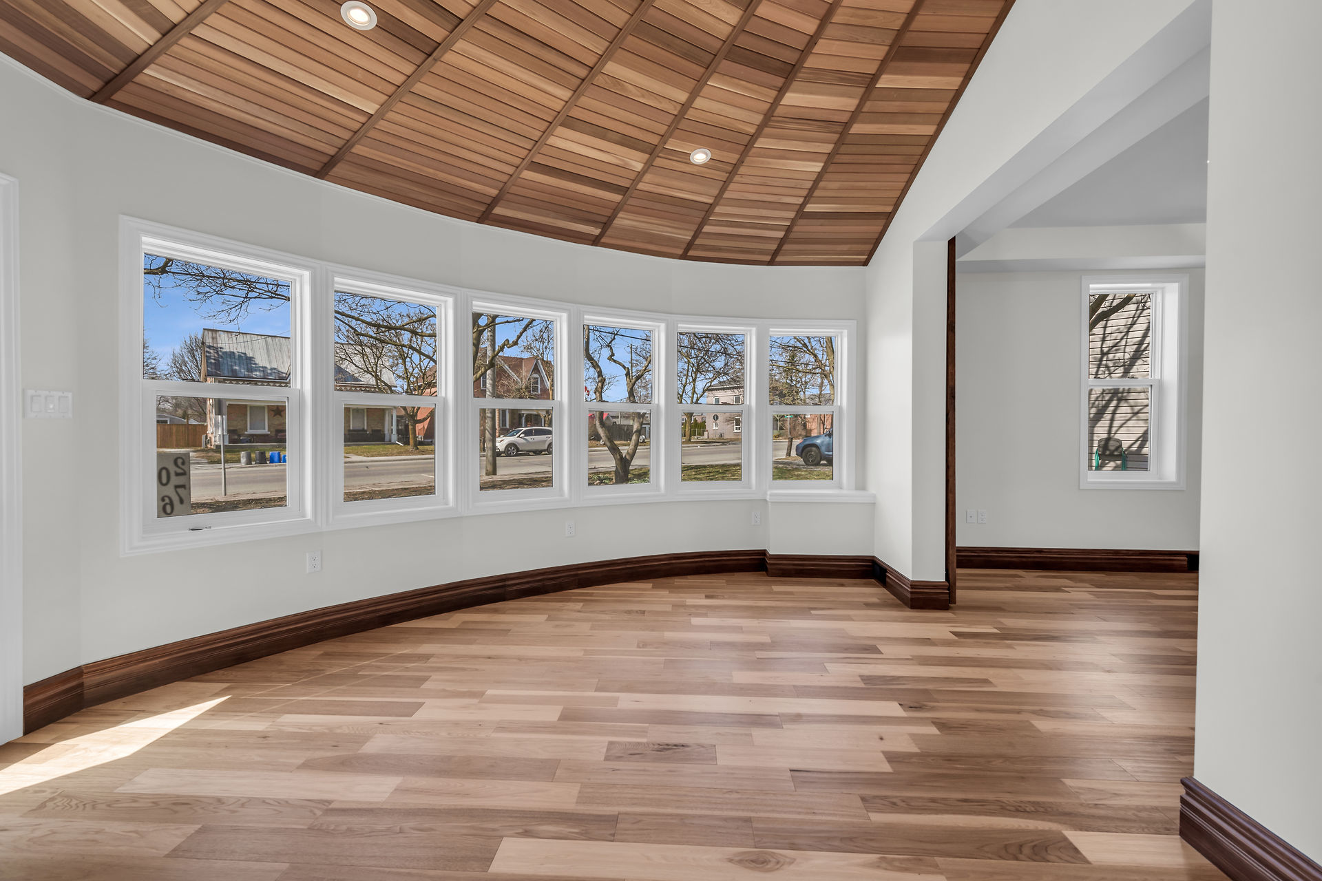 Beautiful 1-1/2 storey century style home extensively renovated and updated with exquisite attention to detail. Features 1800 sqft of stylishly decorated above grade living space with 3 bedrooms, 2 baths and upper-level laundry. The wow-factor begins as soon as you enter the front door. Expansive windows provide tons of natural light showcasing the open concept main floor layout featuring engineered Hickory hardwood flooring, living room with vaulted cedar ceiling, roomy family room and dining areas with custom sliding doors adjacent to the breathtaking custom kitchen and brand new hi-end stainless steel appliances. The mudrm with side door entry leads to a sprawling deck with a pavilion overlooking the backyard.