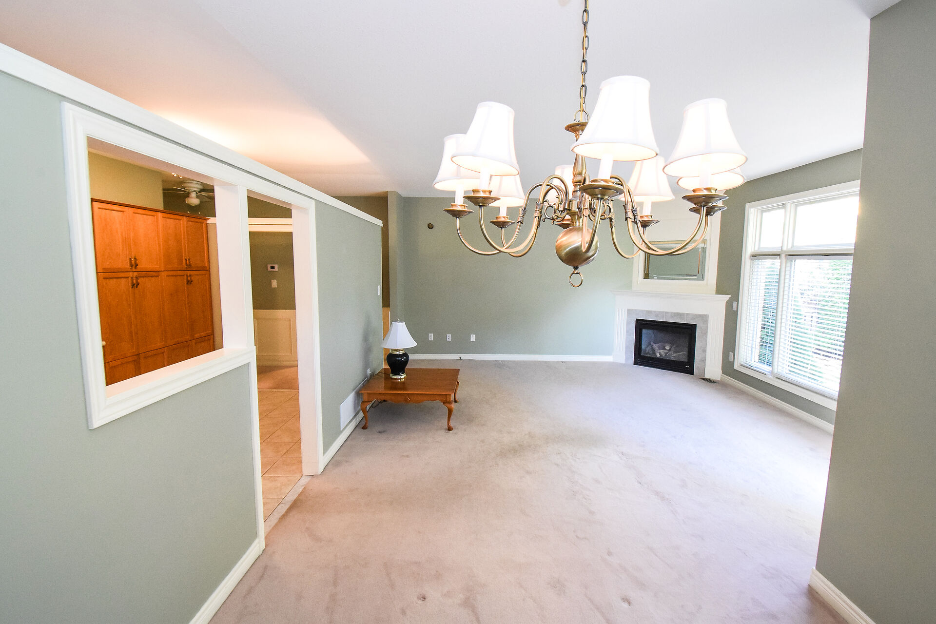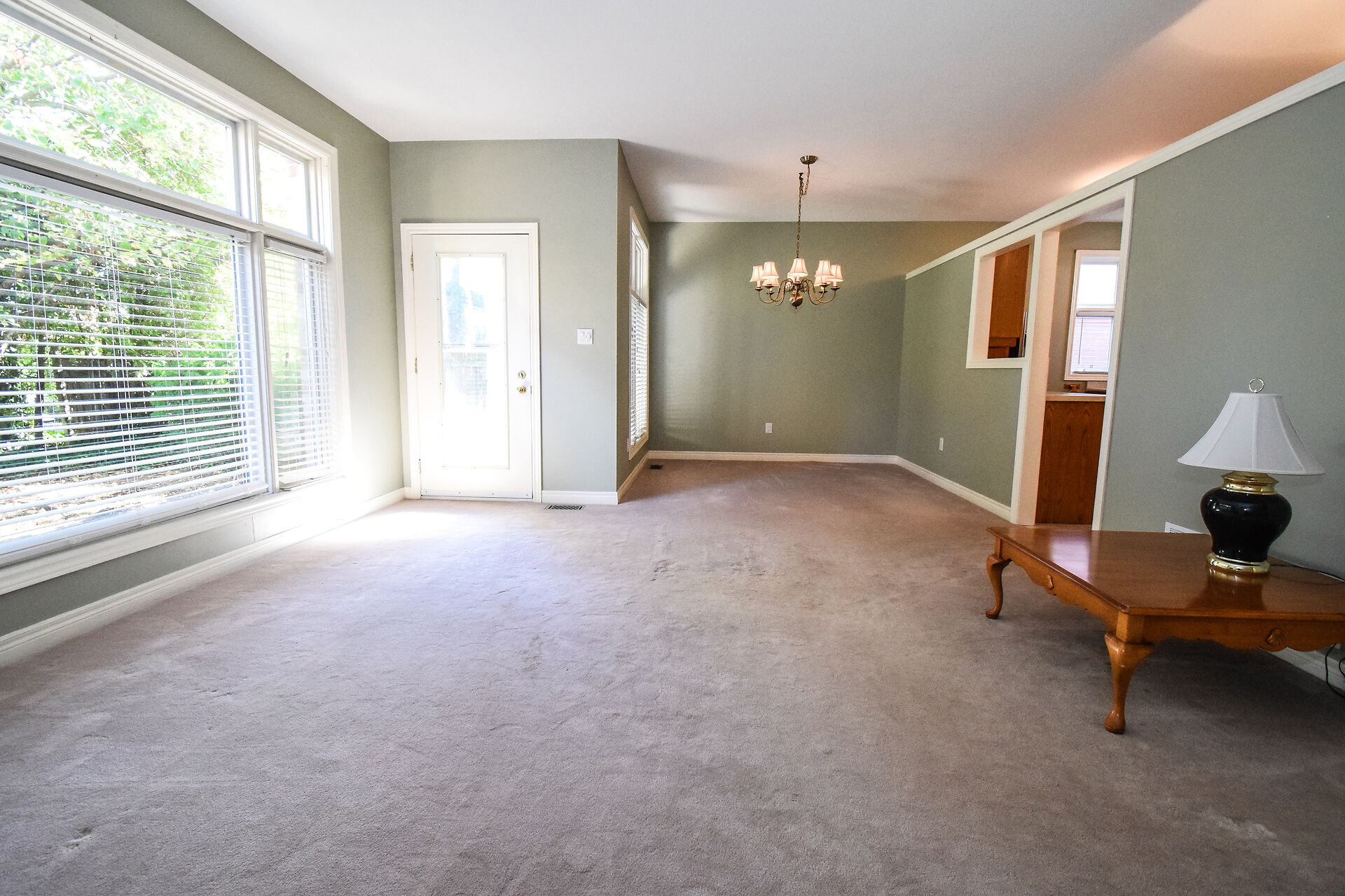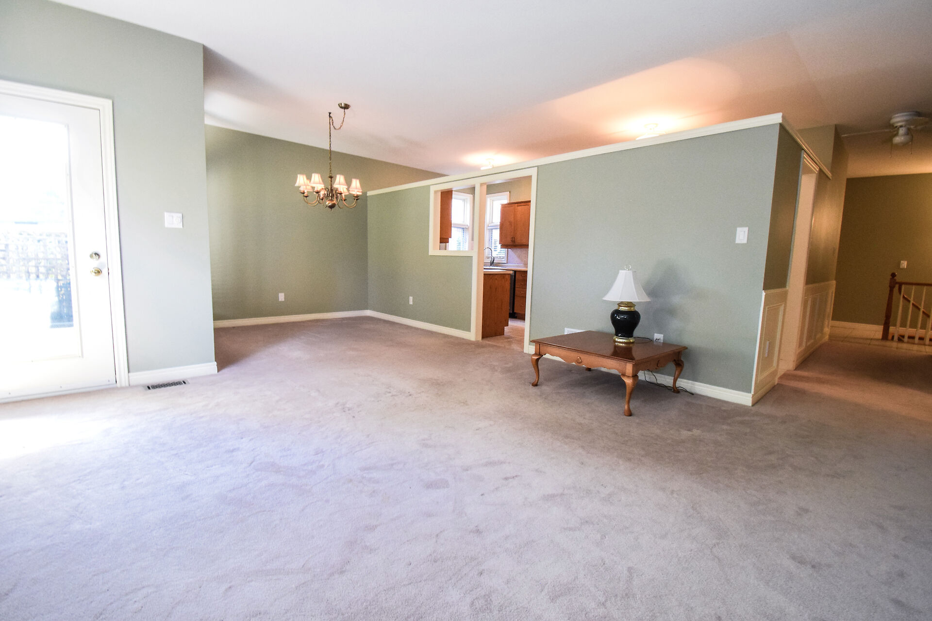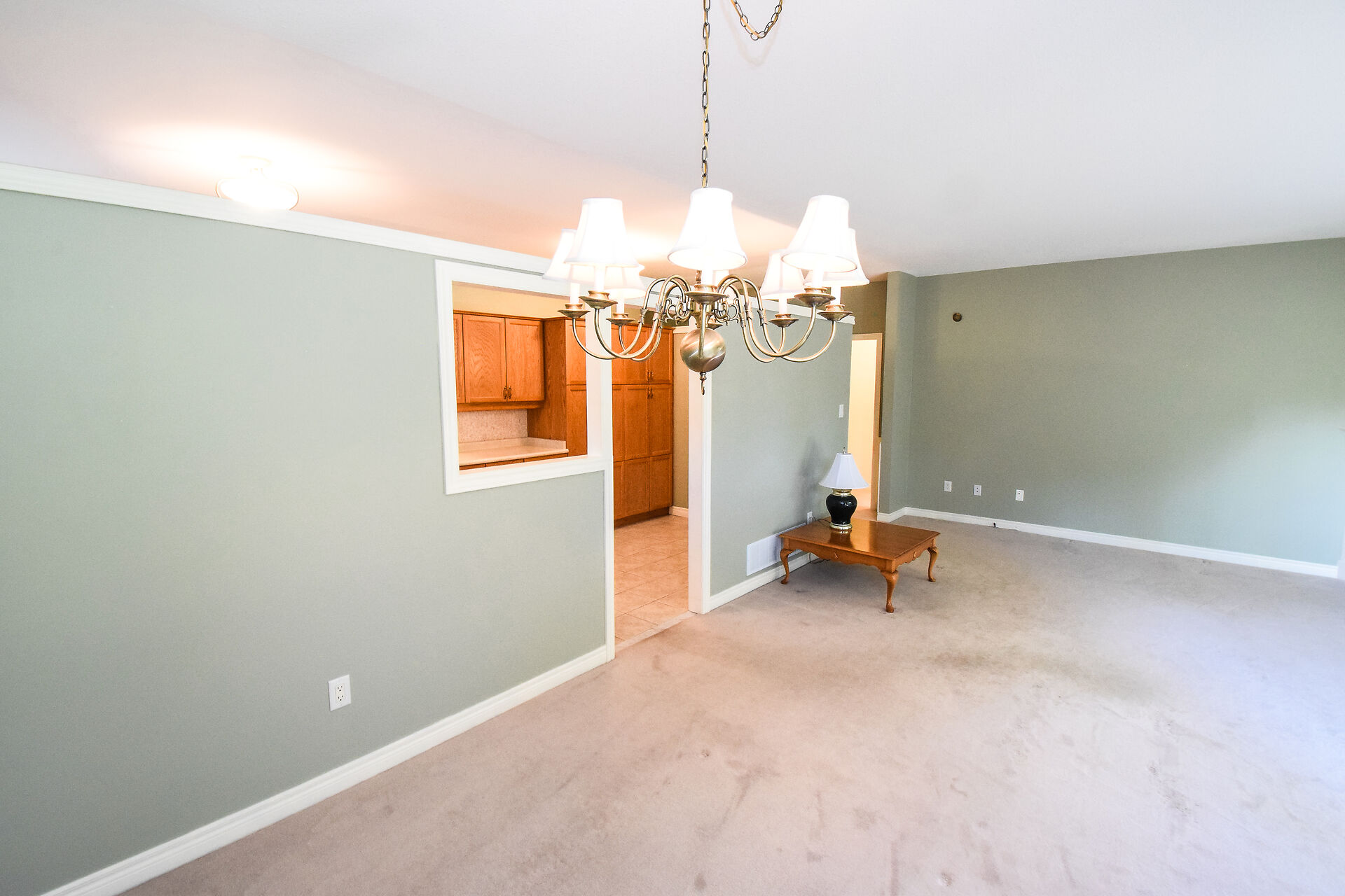Entry Hallway View of Living Room and Kitchen