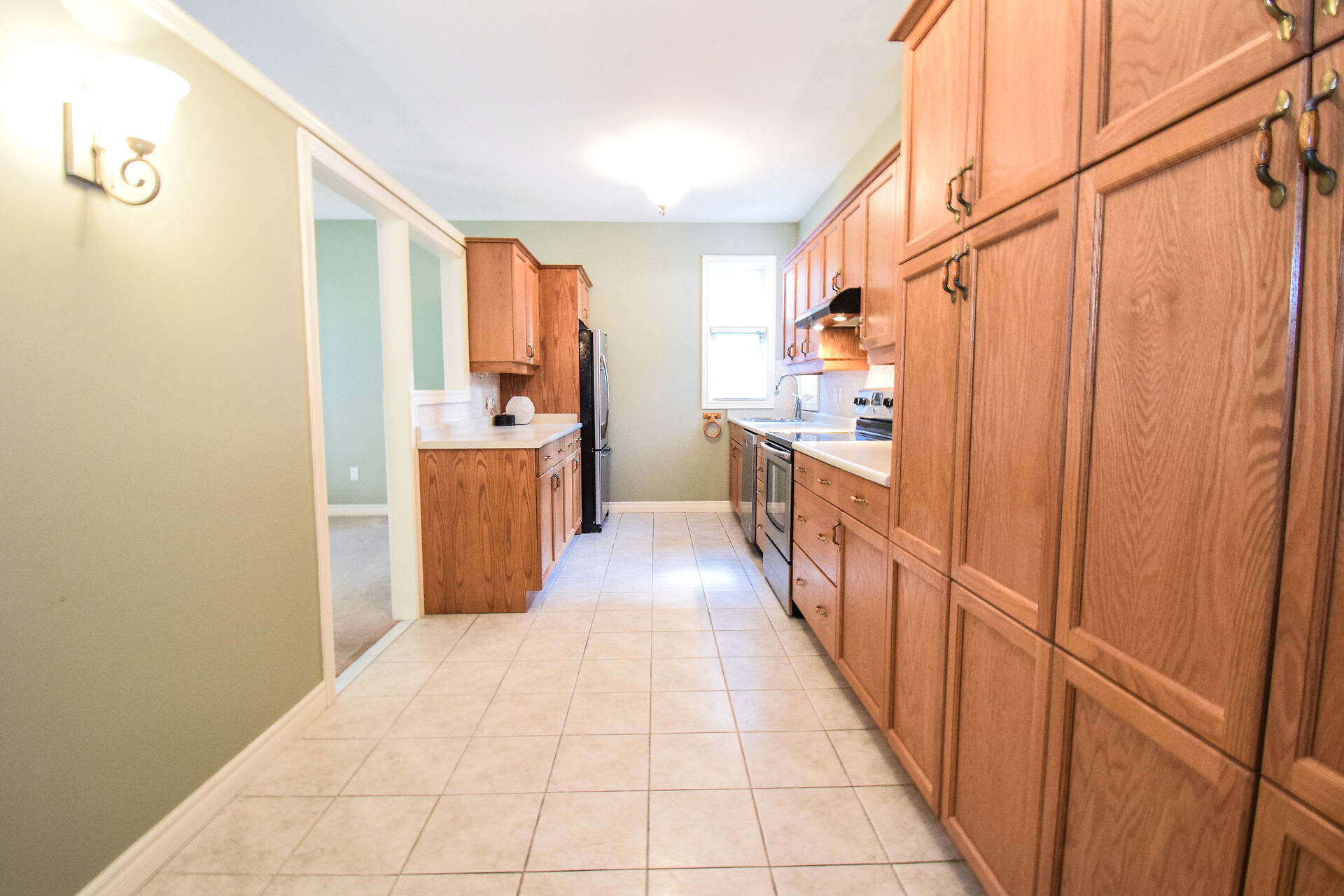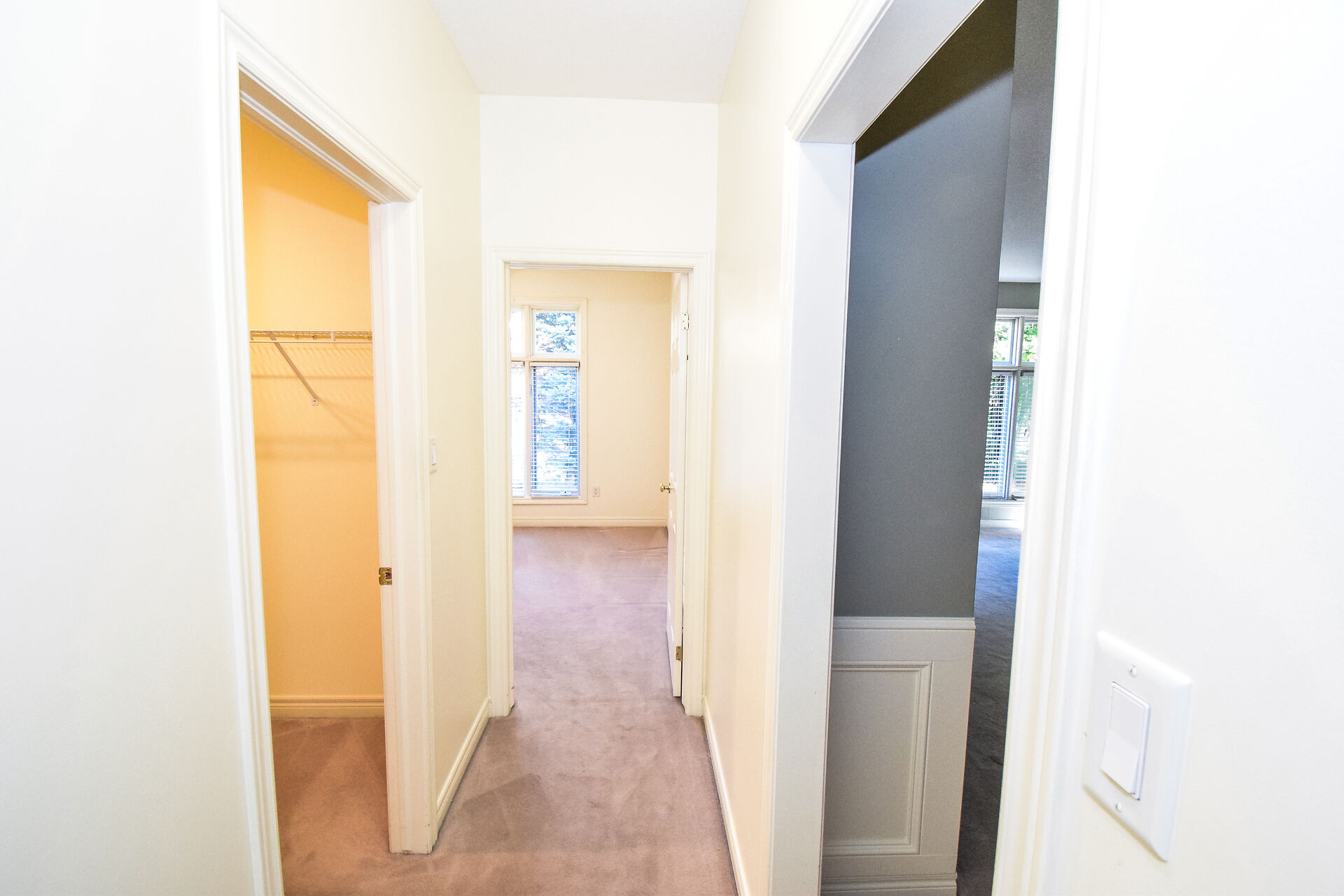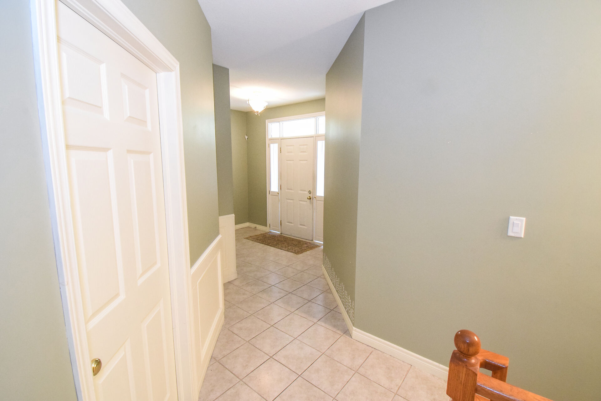 Entry Hallway View of Living Room and Kitchen