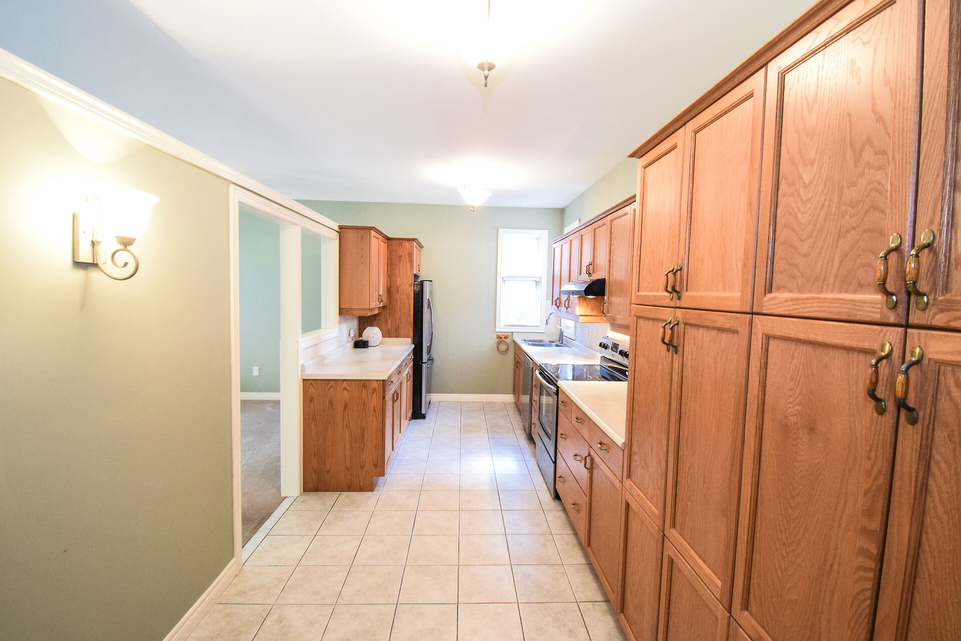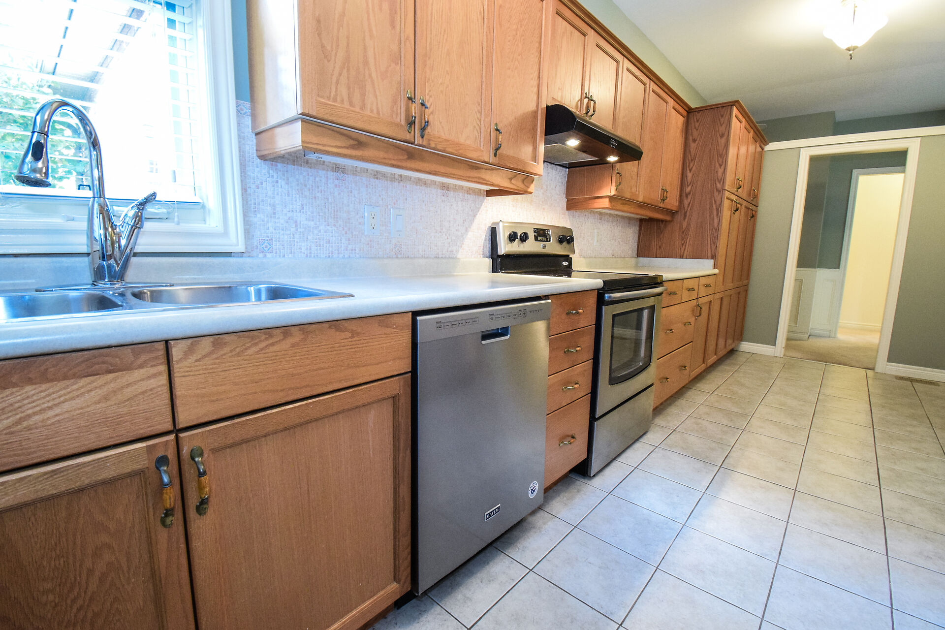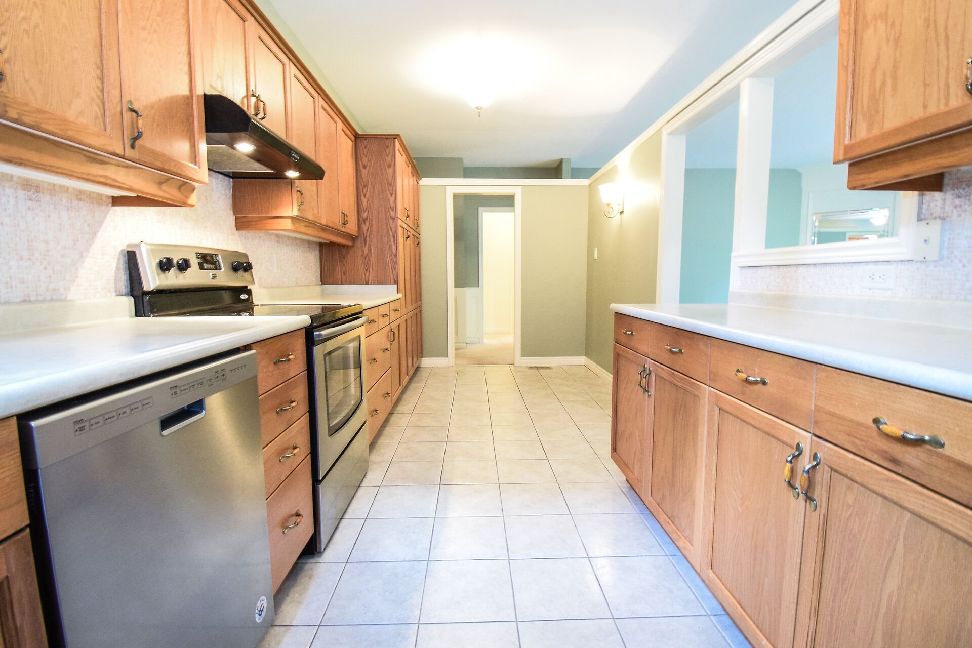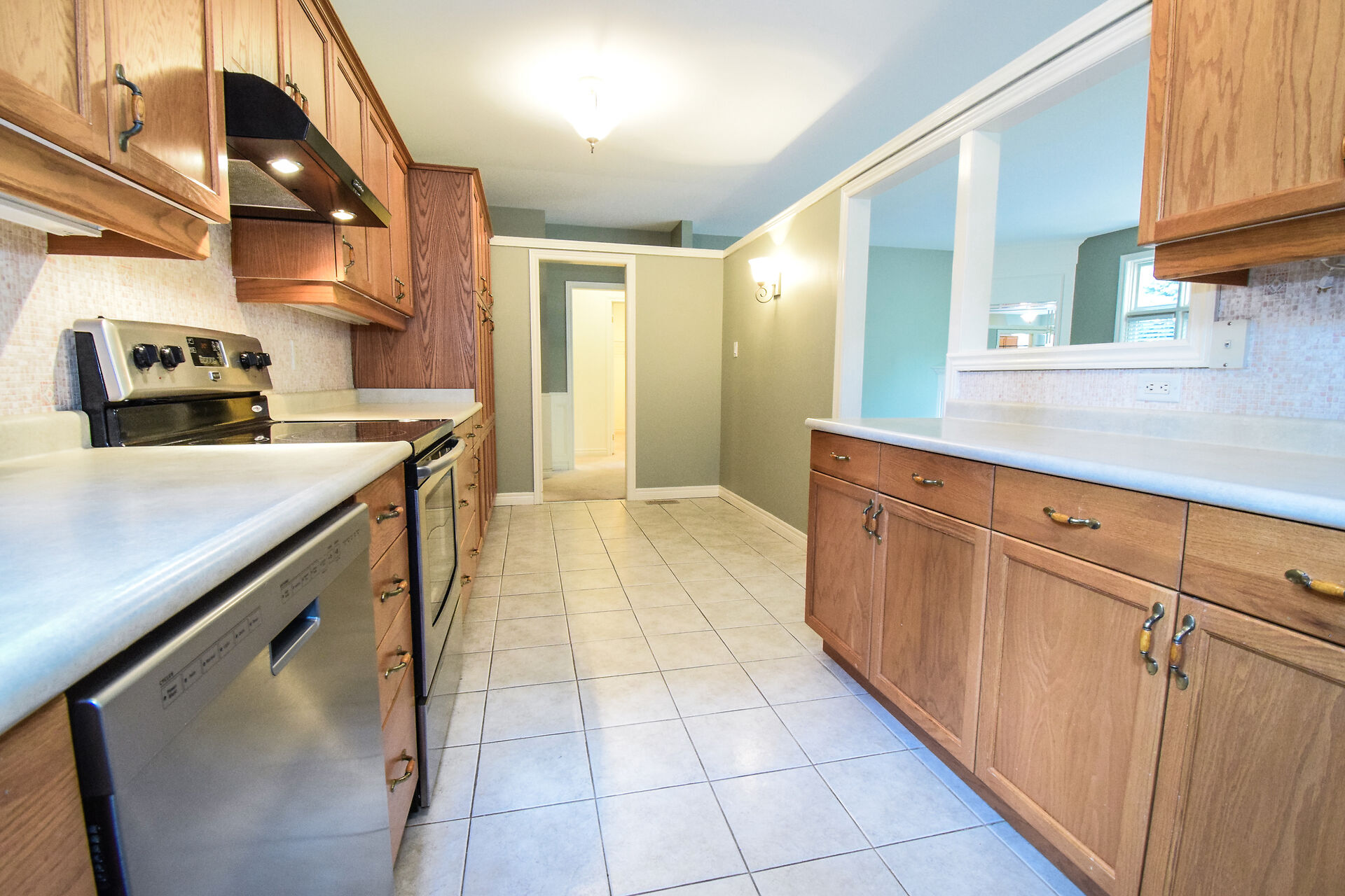 Entry Hallway View of Living Room and Kitchen