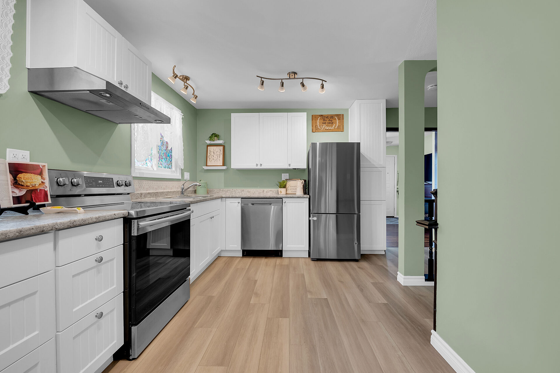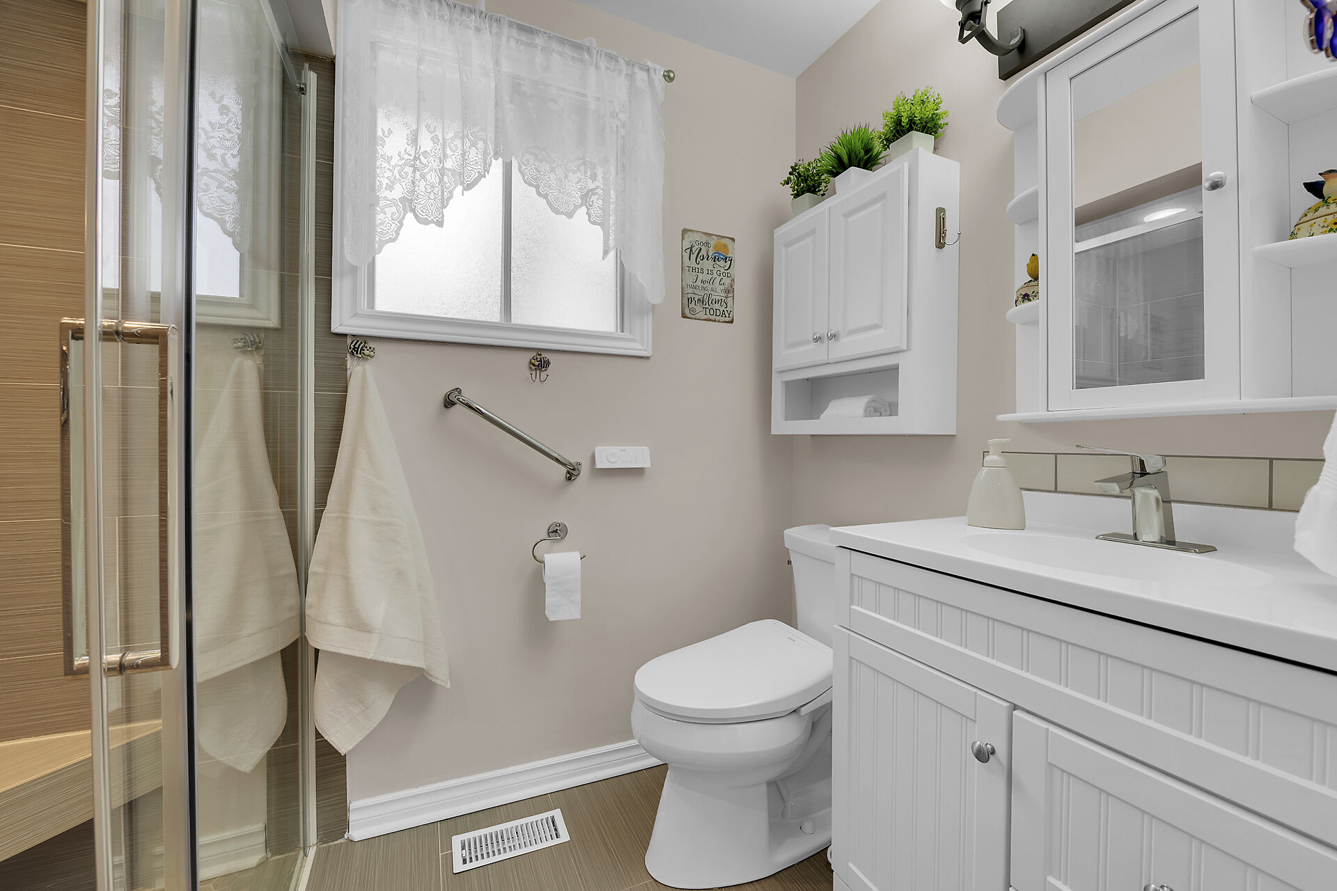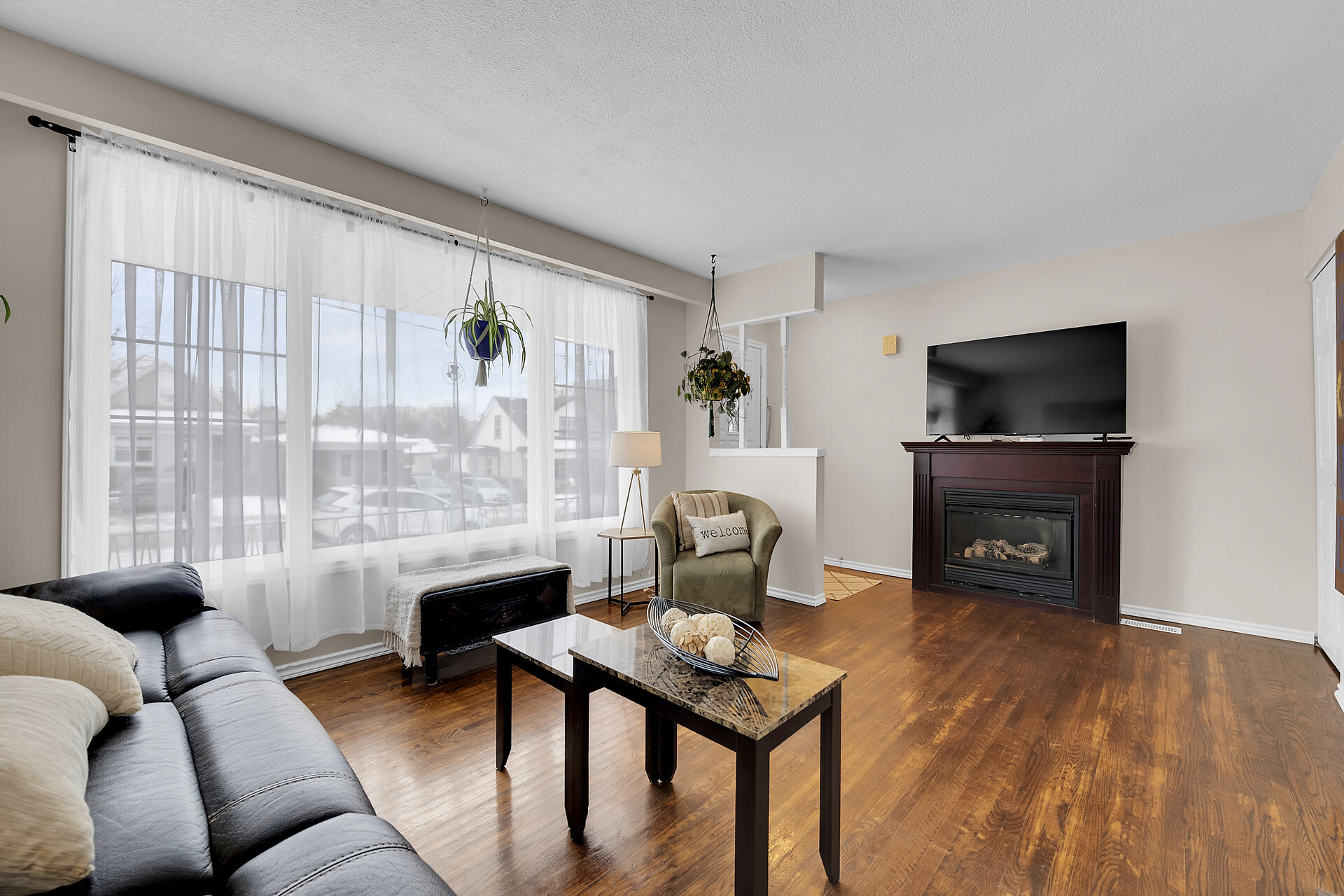 Discover this beautifully updated 3+1 bedroom, 1.5 bath charming brick bungalow in a desirable Hamilton Mountain neighborhood! Step into the bright, spacious living room featuring hardwood floors and a cozy gas fireplace, perfect for relaxing evenings. The 2022-renovated kitchen boasts stylish white cabinetry, ample counter space, and stainless-steel appliances. The second bedroom offers sliding doors to a deck and a fully fenced yard. The main bathroom (updated 2020) features a stunning walk-in tile & glass shower, while the new 2-piece basement bath (2020) adds extra convenience. The lower level offers a separate side entrance. Single garage & drive with inside entry.