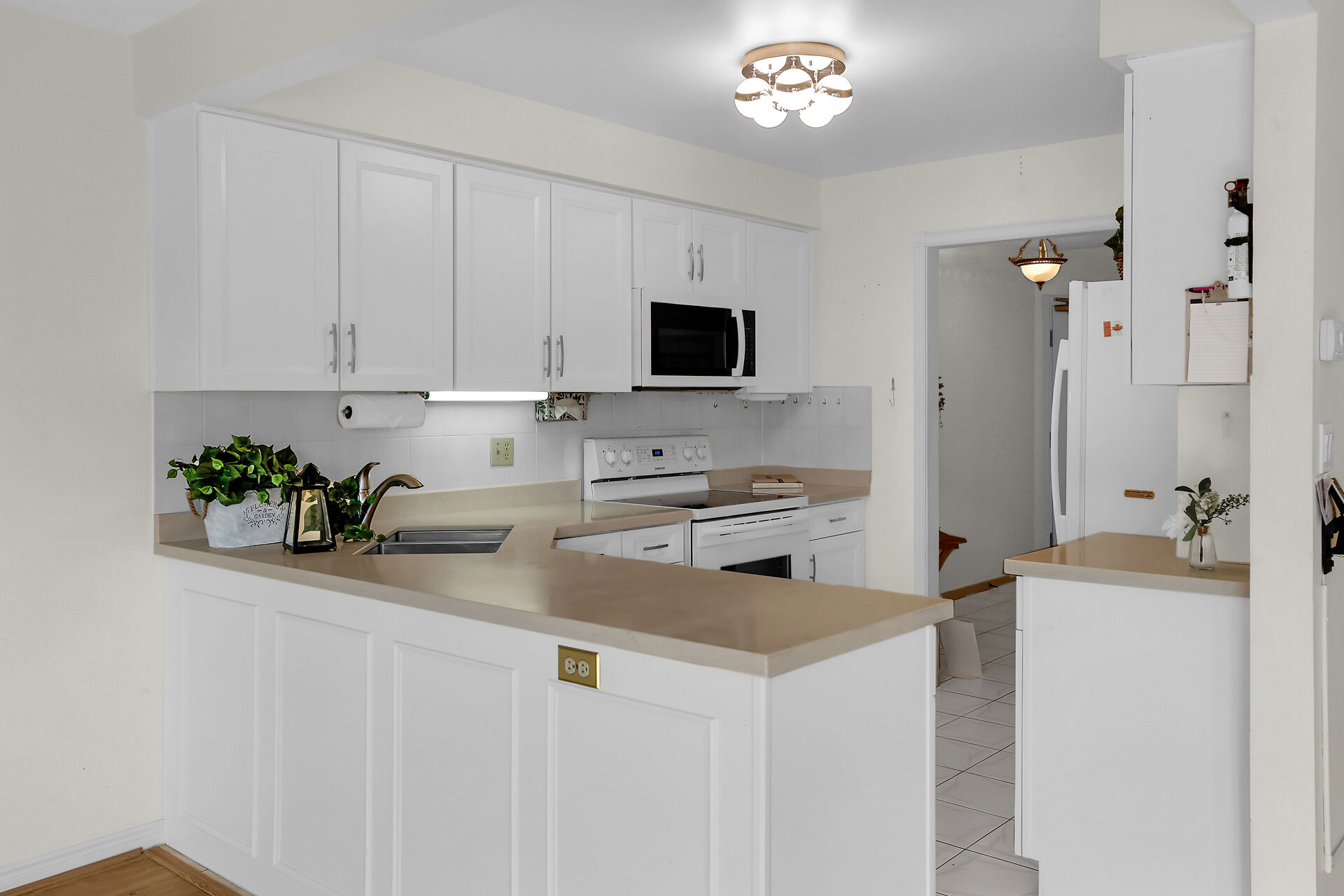 Welcome to #16-3050 Pinemeadow Drive, The Enclave south! This bright and airy corner unit offers 2 bedrooms, 2 full baths, and a large in-suite laundry room, complete with laundry basin. Enjoy a refurbished kitchen in classic white with upgraded countertop and plenty of cabinets. This desirable layout includes an open concept living area that feels warm and inviting. The corner unit also offers a good sized balcony with plenty of room for the bbq. This quiet, well-maintained low-rise building is a gem. Popular building for seniors but also a great place to start. Available immediately.