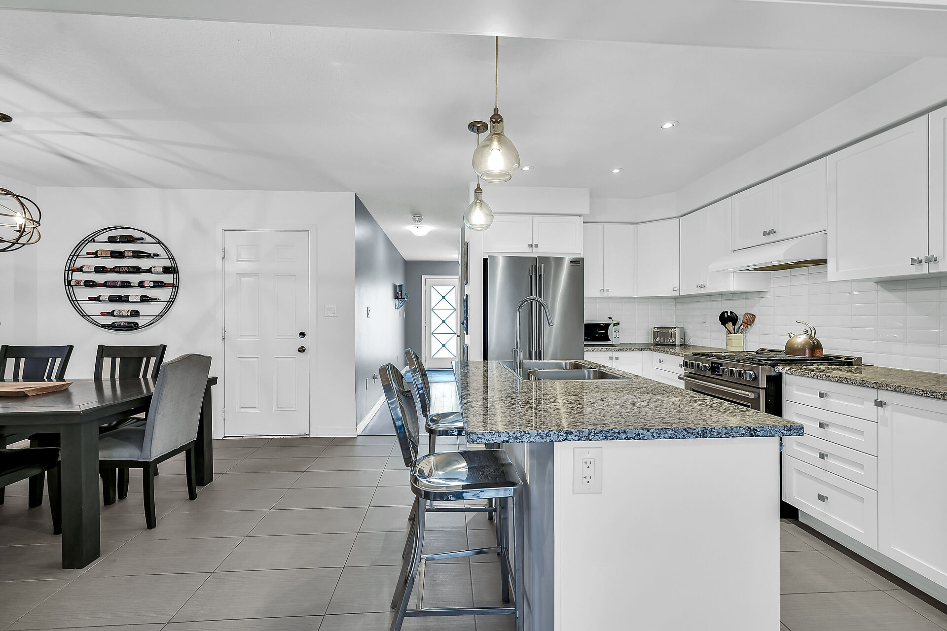 Upgraded 3-bedrm, 2.5-bath detached home in the sought-after Heritage Green community. Approx. 1750 sq ft two-storey home features a carpet-free layout, elegant oak staircase, upgraded finishes throughout. Eat-in kitchen boasts granite counters, extended-height cabinetry, a gas line to the stove, stylish backsplash, modern lighting. Enjoy a separate dining area and bright, spacious living room—perfect for entertaining or relaxing. Upstairs, the open-concept primary suite offers a 4-piece ensuite with frameless glass shower, plus convenient bedroom-level laundry.