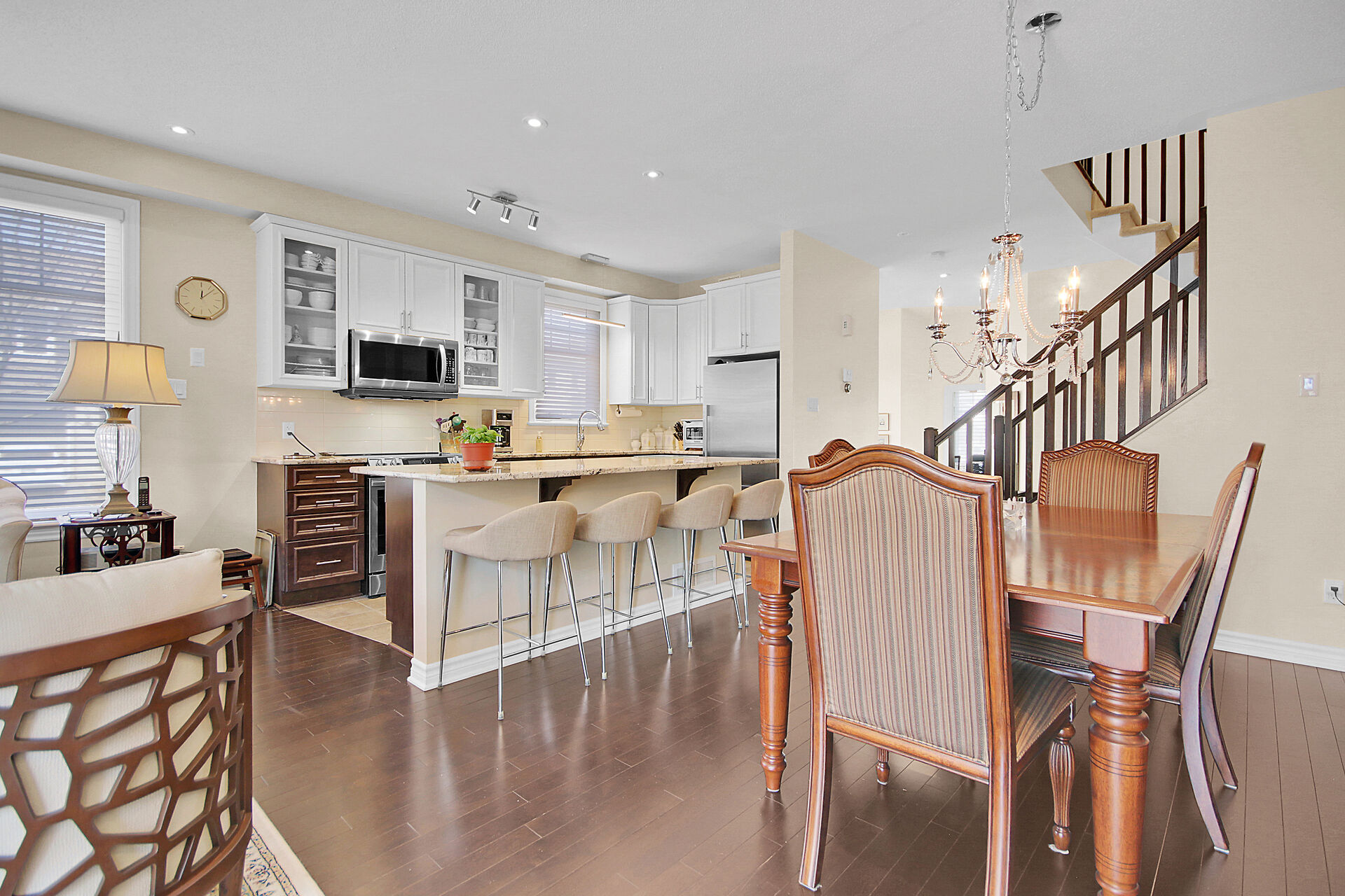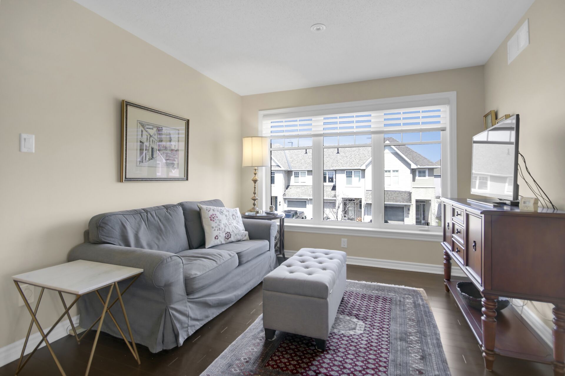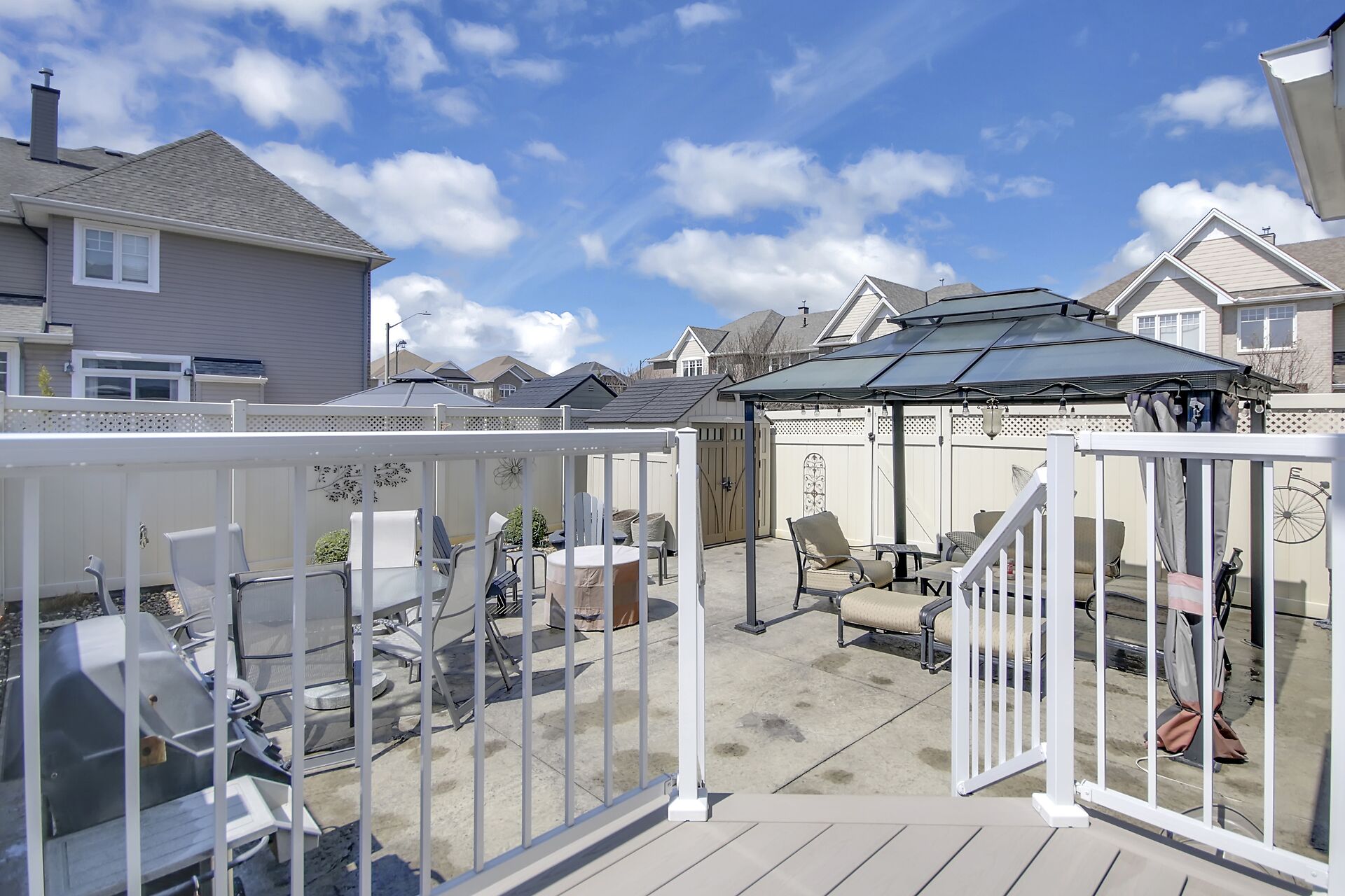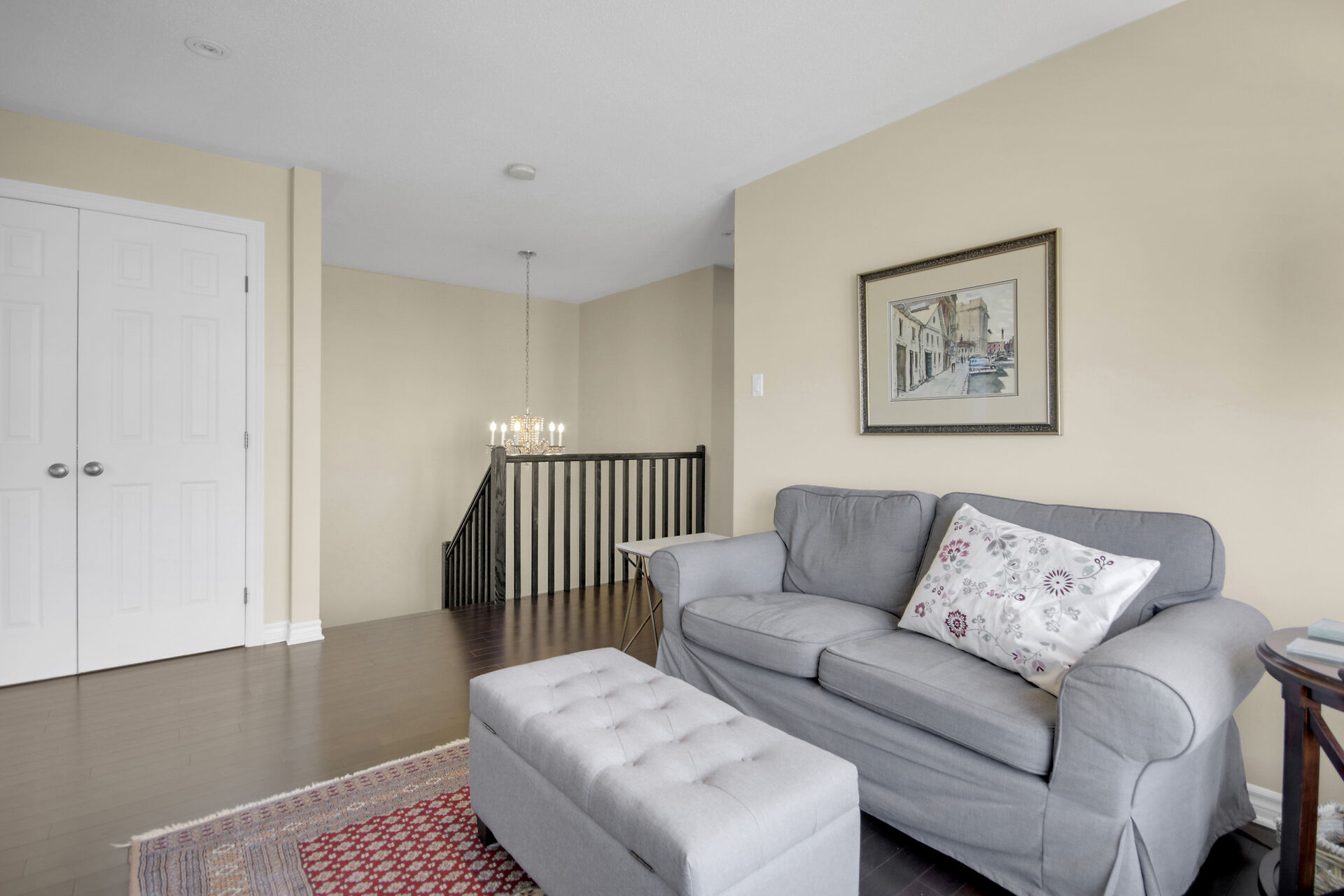 Welcome to this outstanding end unit home. From the stamped concrete driveway, walkway & fully fenced yard to the hdwd floo flowing throughout the spacious layout you will not be disappointed. Some of the many features include, main floor office with two corner windows, open concept great room ideal for entertaining or relaxing, built in buffet in the dining room. Include all appliances. Cozy gas fireplace in the lvgrm. 2nd level offers 3 bdrms + a fabulous loft and 2nd floor laundry. The good size primary bedroom enjoys a spa like ensuite with separate shower and walk in clothes closet. Lower level is your large bright L shaped recreation room plus huge storage area. Over $70K in upgrades.