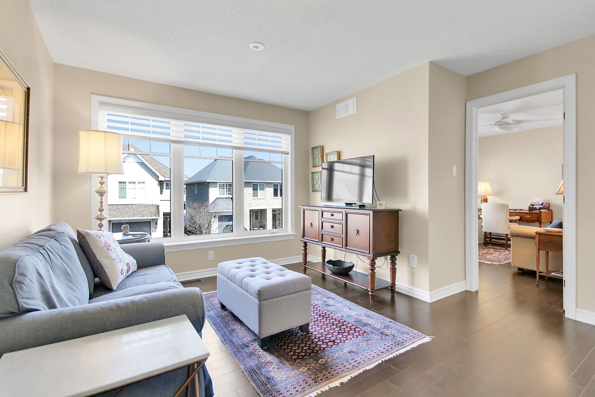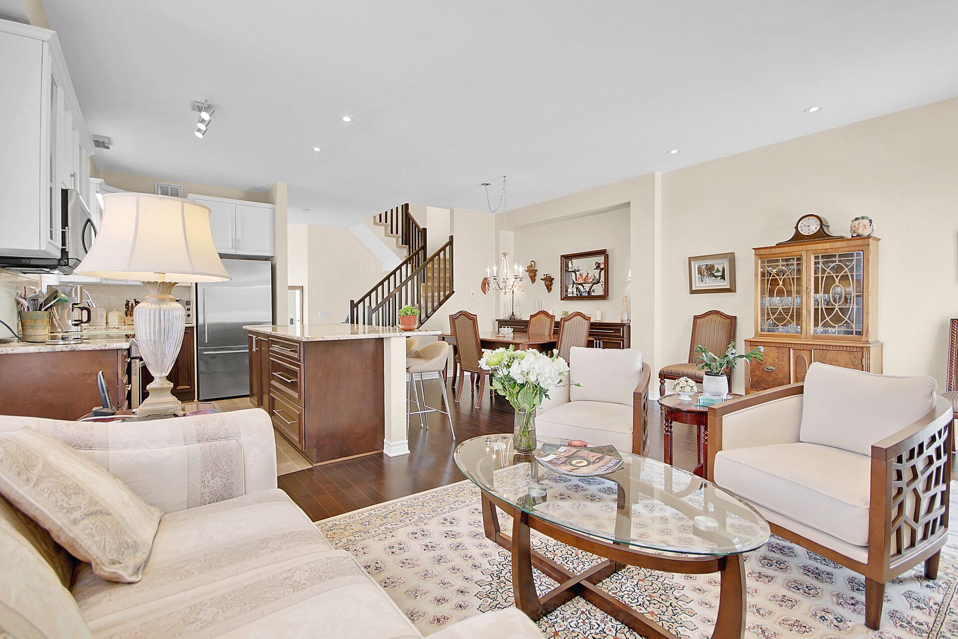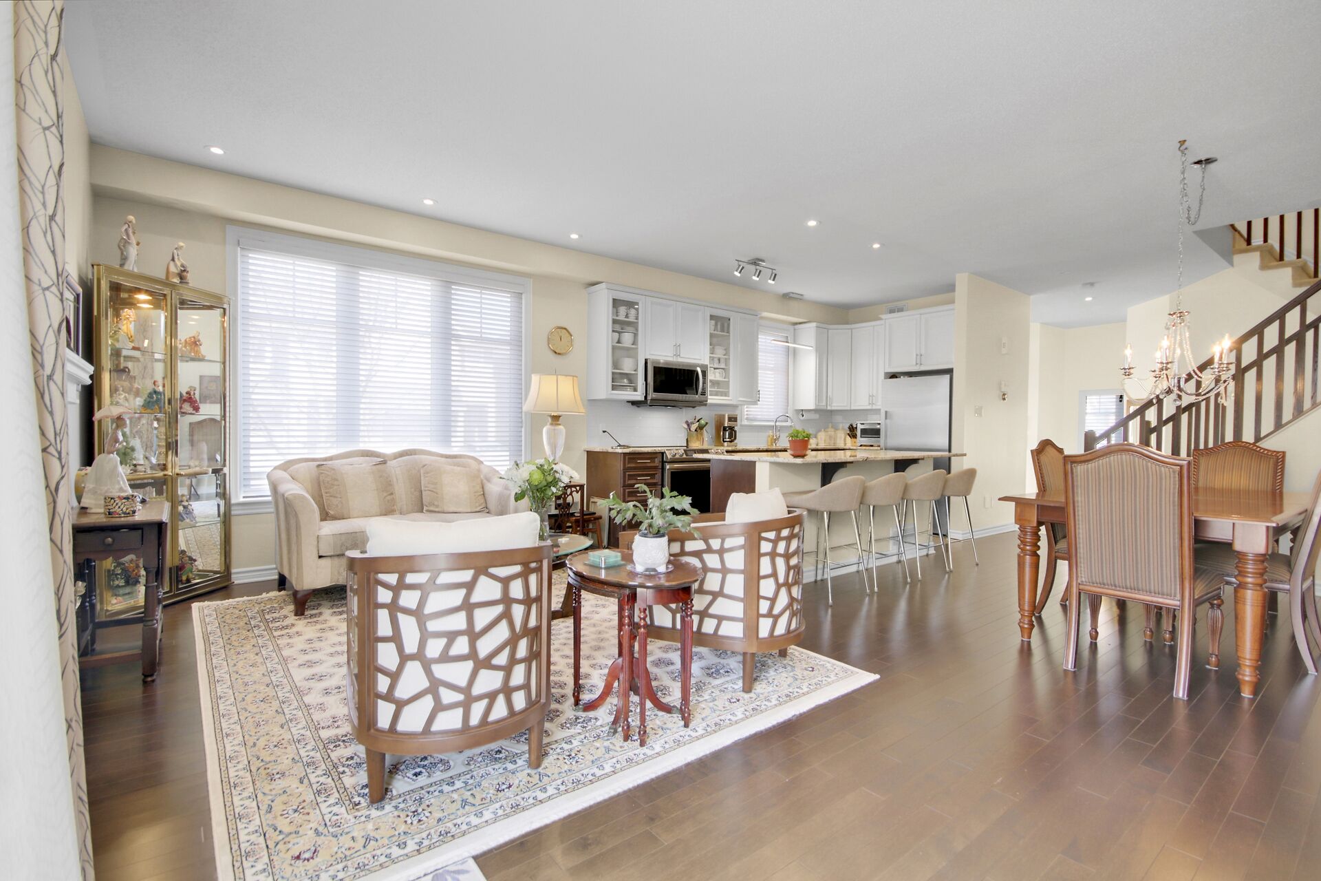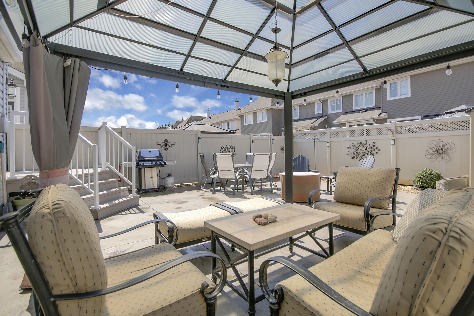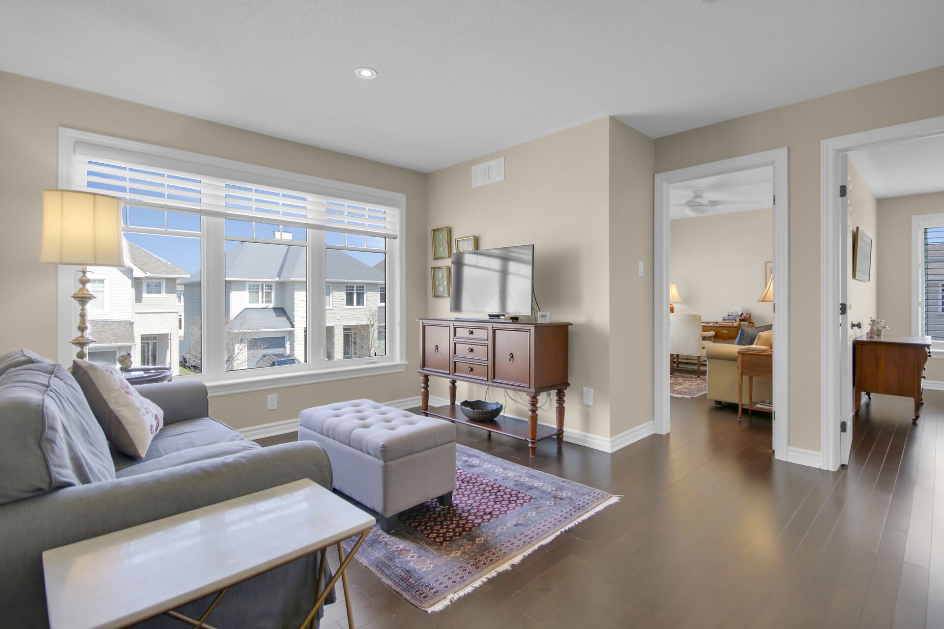 Welcome to this outstanding end unit home. From the stamped concrete driveway, walkway & fully fenced yard to the hdwd floo flowing throughout the spacious layout you will not be disappointed. Some of the many features include, main floor office with two corner windows, open concept great room ideal for entertaining or relaxing, built in buffet in the dining room. Include all appliances. Cozy gas fireplace in the lvgrm. 2nd level offers 3 bdrms + a fabulous loft and 2nd floor laundry. The good size primary bedroom enjoys a spa like ensuite with separate shower and walk in clothes closet. Lower level is your large bright L shaped recreation room plus huge storage area. Over $70K in upgrades.