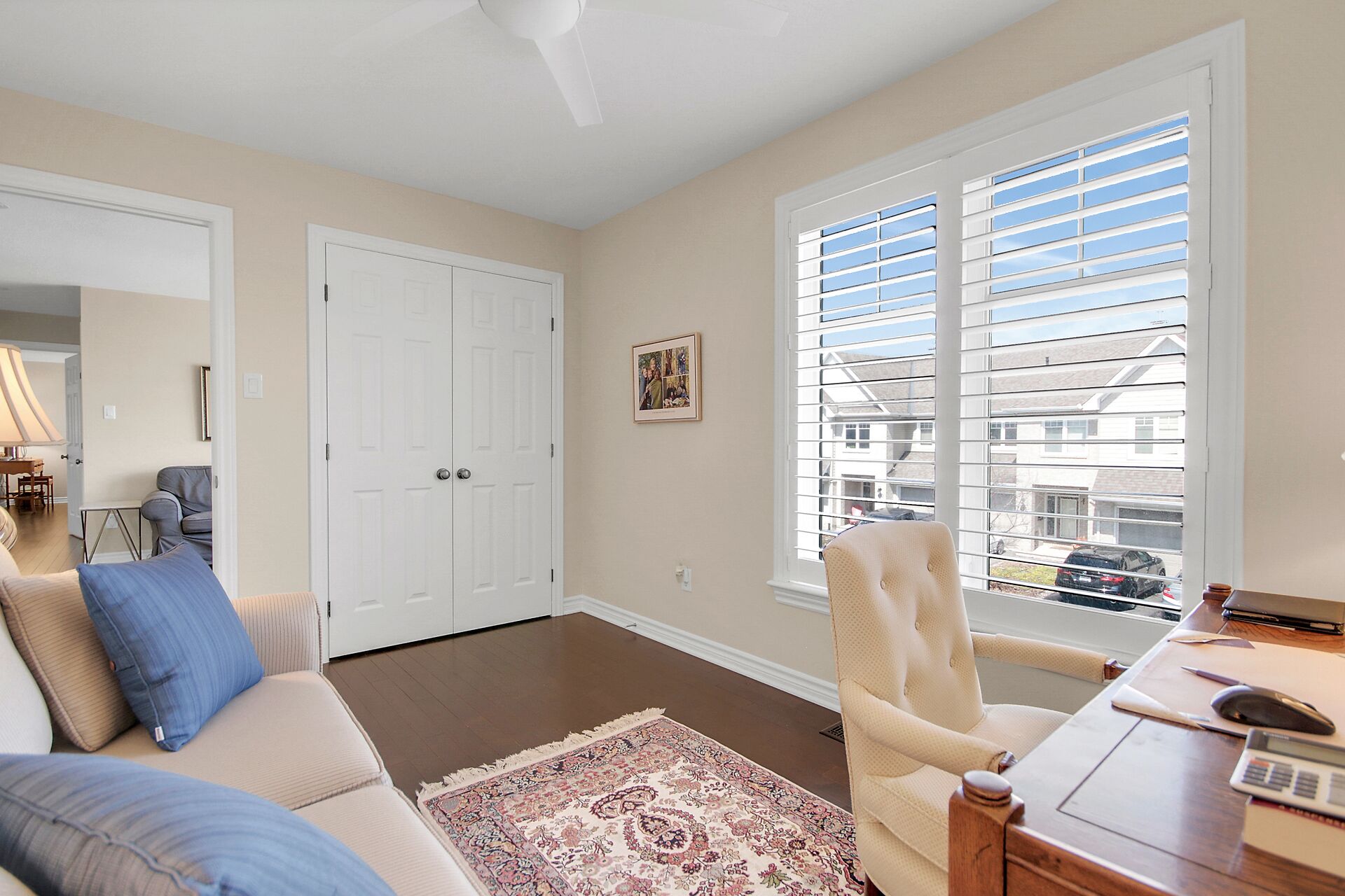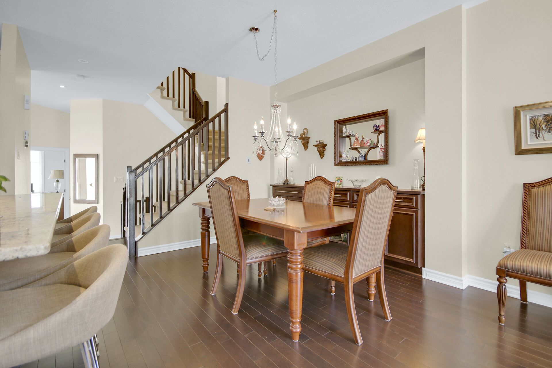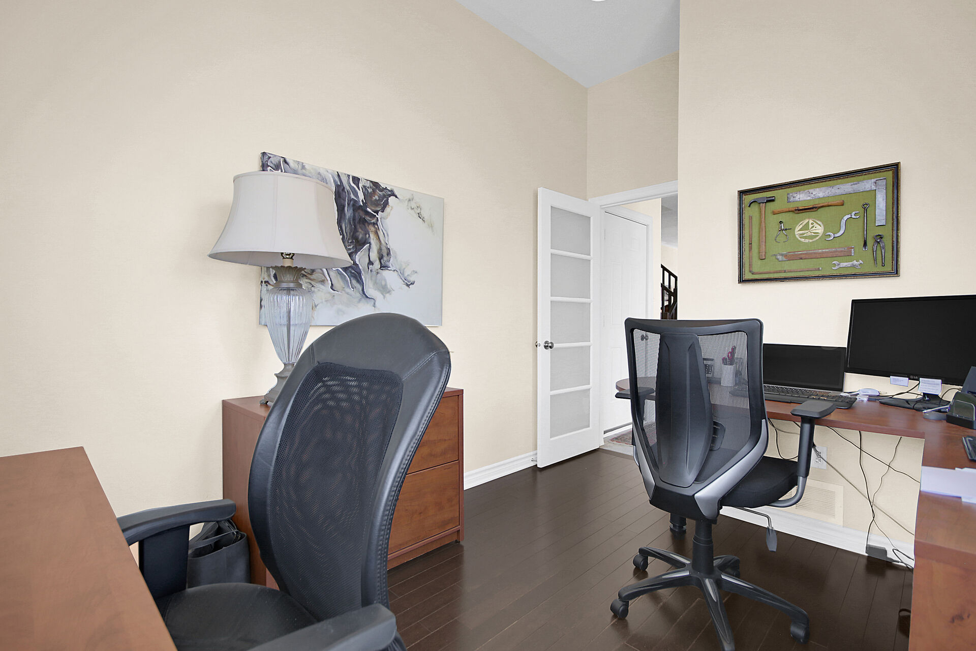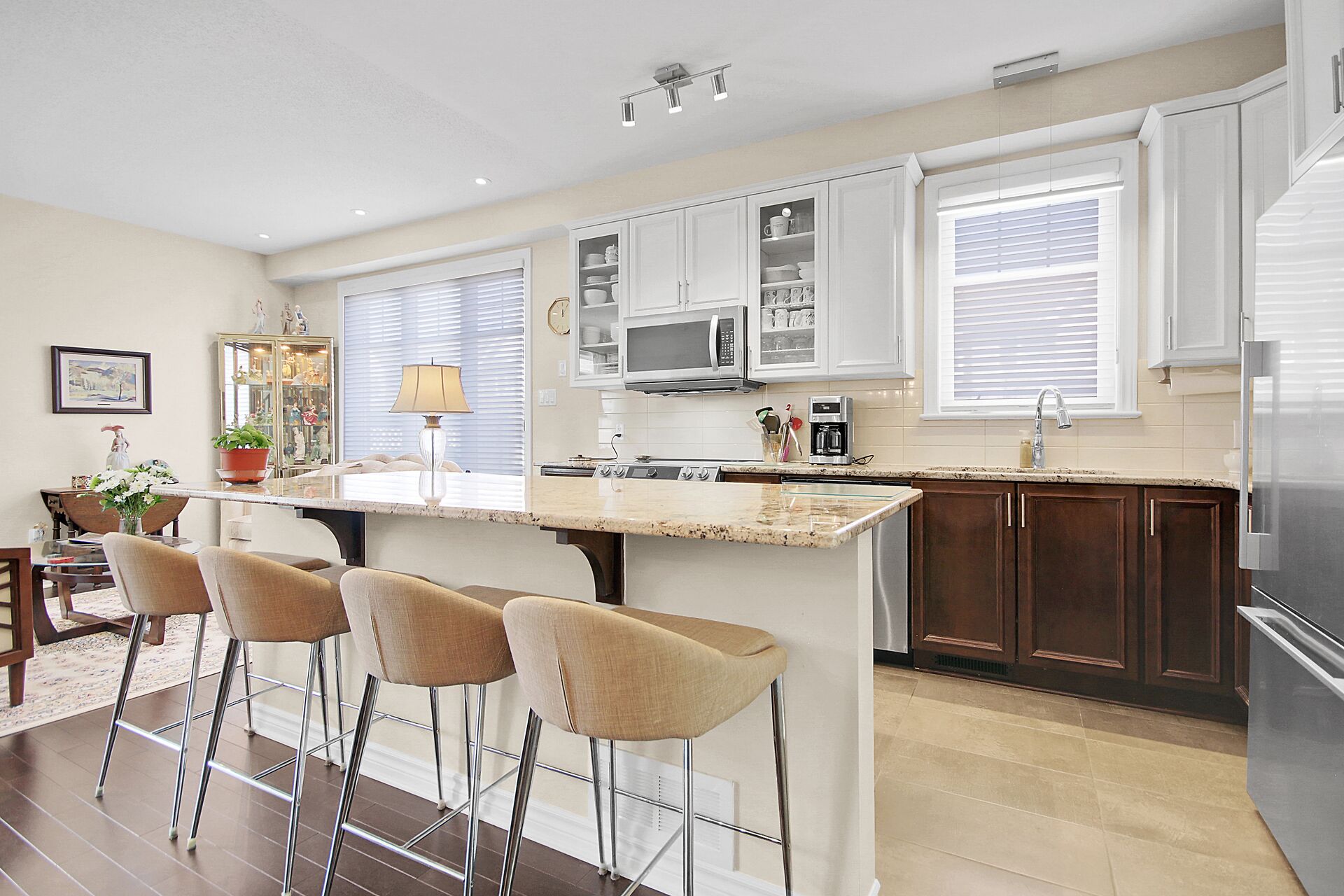 Welcome to this outstanding end unit home. From the stamped concrete driveway, walkway & fully fenced yard to the hdwd floo flowing throughout the spacious layout you will not be disappointed. Some of the many features include, main floor office with two corner windows, open concept great room ideal for entertaining or relaxing, built in buffet in the dining room. Include all appliances. Cozy gas fireplace in the lvgrm. 2nd level offers 3 bdrms + a fabulous loft and 2nd floor laundry. The good size primary bedroom enjoys a spa like ensuite with separate shower and walk in clothes closet. Lower level is your large bright L shaped recreation room plus huge storage area. Over $70K in upgrades.