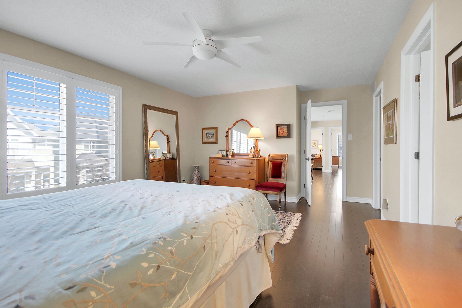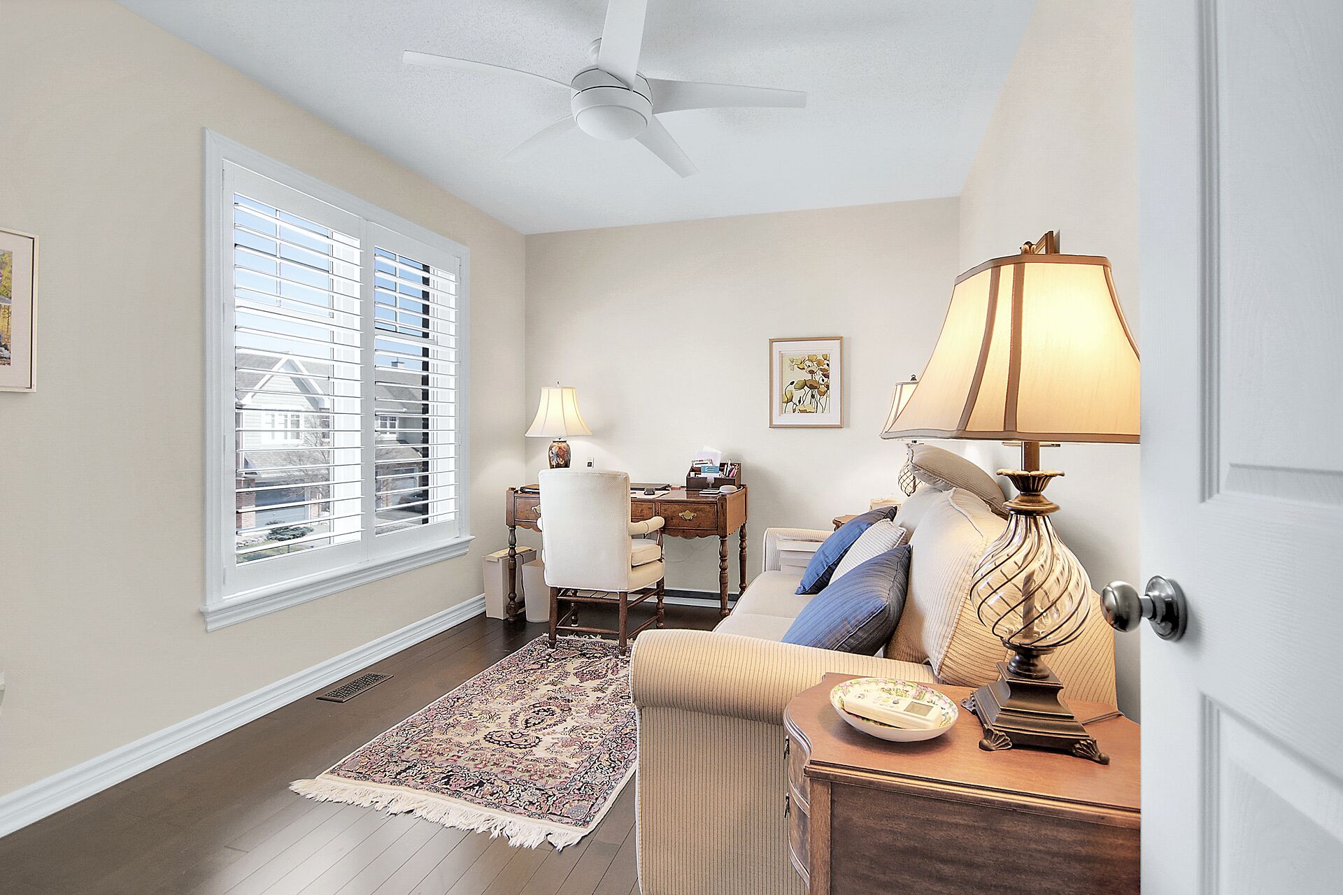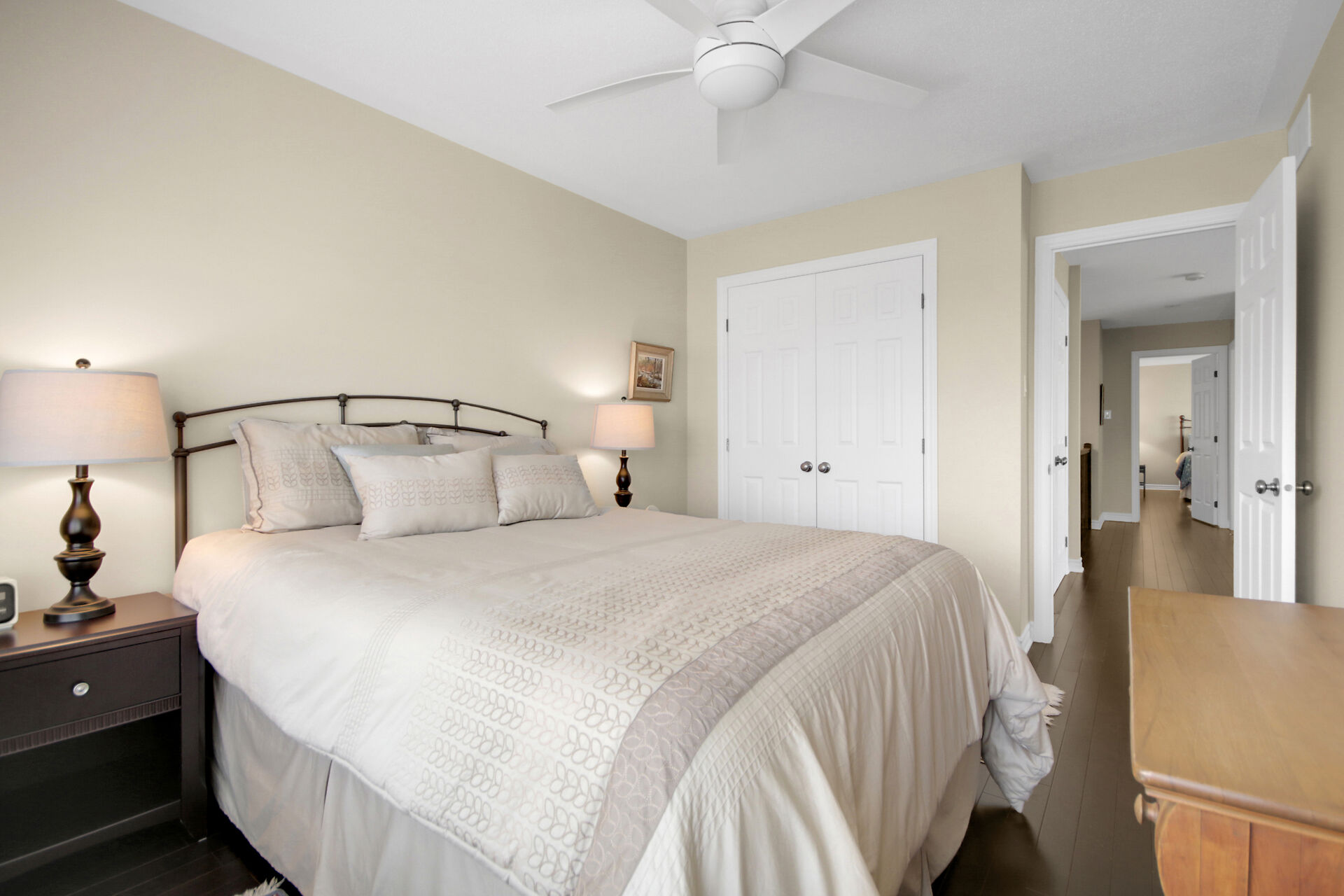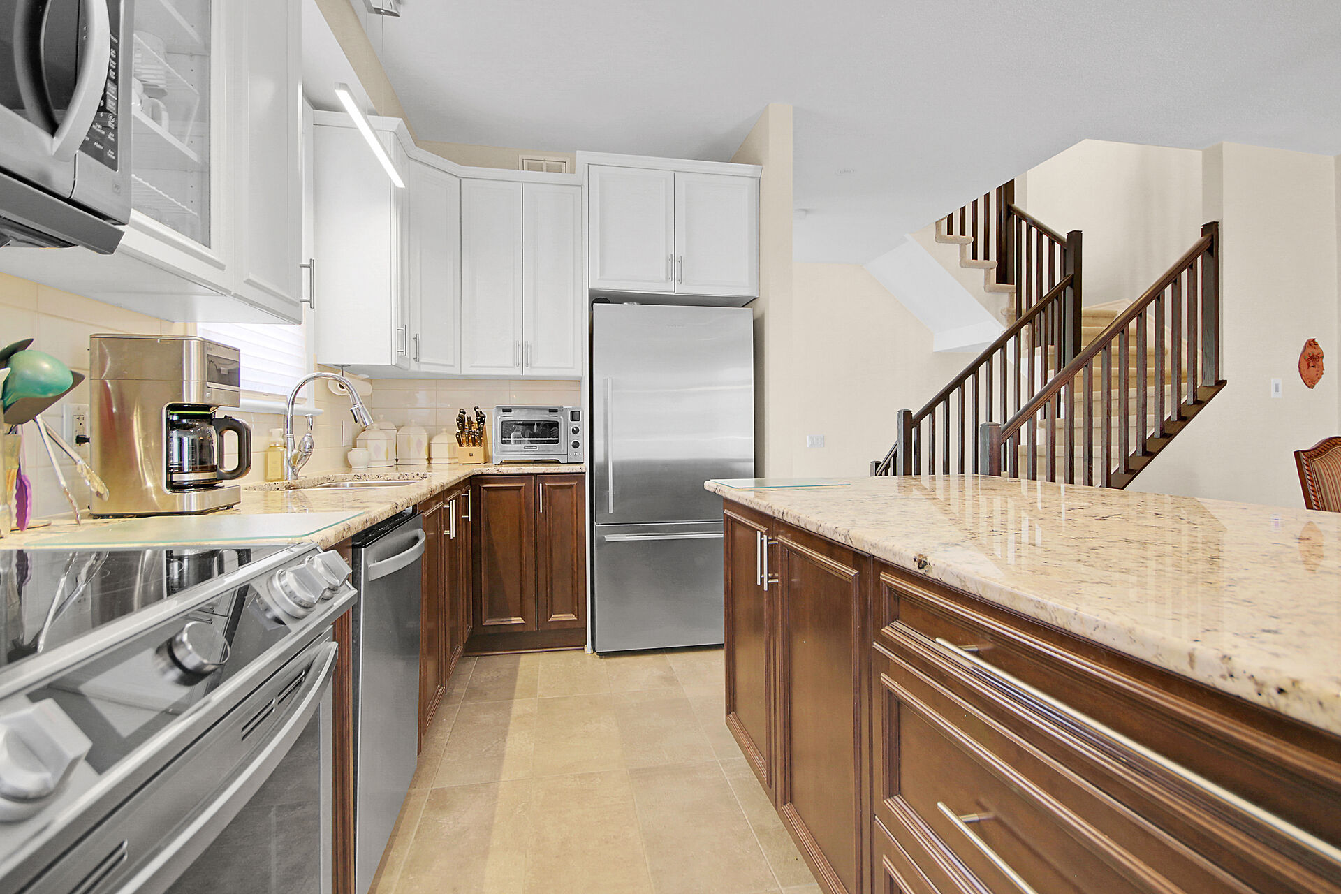 Welcome to this outstanding end unit home. From the stamped concrete driveway, walkway & fully fenced yard to the hdwd floo flowing throughout the spacious layout you will not be disappointed. Some of the many features include, main floor office with two corner windows, open concept great room ideal for entertaining or relaxing, built in buffet in the dining room. Include all appliances. Cozy gas fireplace in the lvgrm. 2nd level offers 3 bdrms + a fabulous loft and 2nd floor laundry. The good size primary bedroom enjoys a spa like ensuite with separate shower and walk in clothes closet. Lower level is your large bright L shaped recreation room plus huge storage area. Over $70K in upgrades.