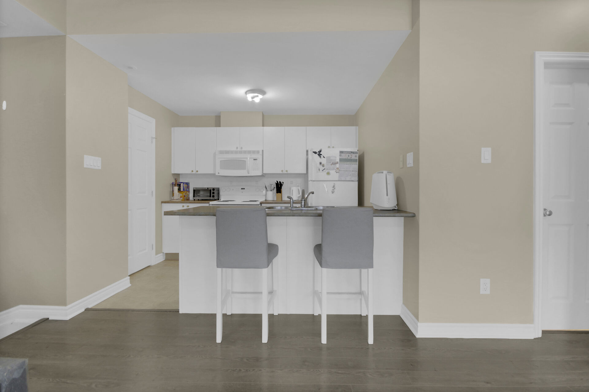 Experience exceptional condo living in the vibrant Jackson Trails community, ideally situated with the convenience of shopping, dining, parks and public transit all within walking distance. This well-maintained upper unit features a spacious living room with access to a private balcony. The kitchen offers ample storage and counter space, while two generously sized bedrooms provide comfortable living. Enjoy the convenience of an in-unit laundry room and a full 4-piece bathroom. Laminate flooring throughout. This is a fantastic starter home at an excellent price point, complete with one owned parking spot.