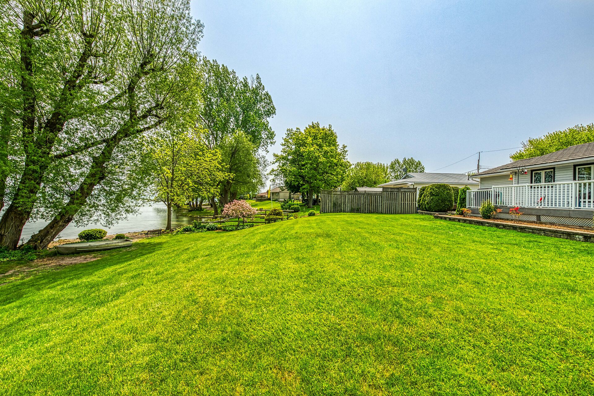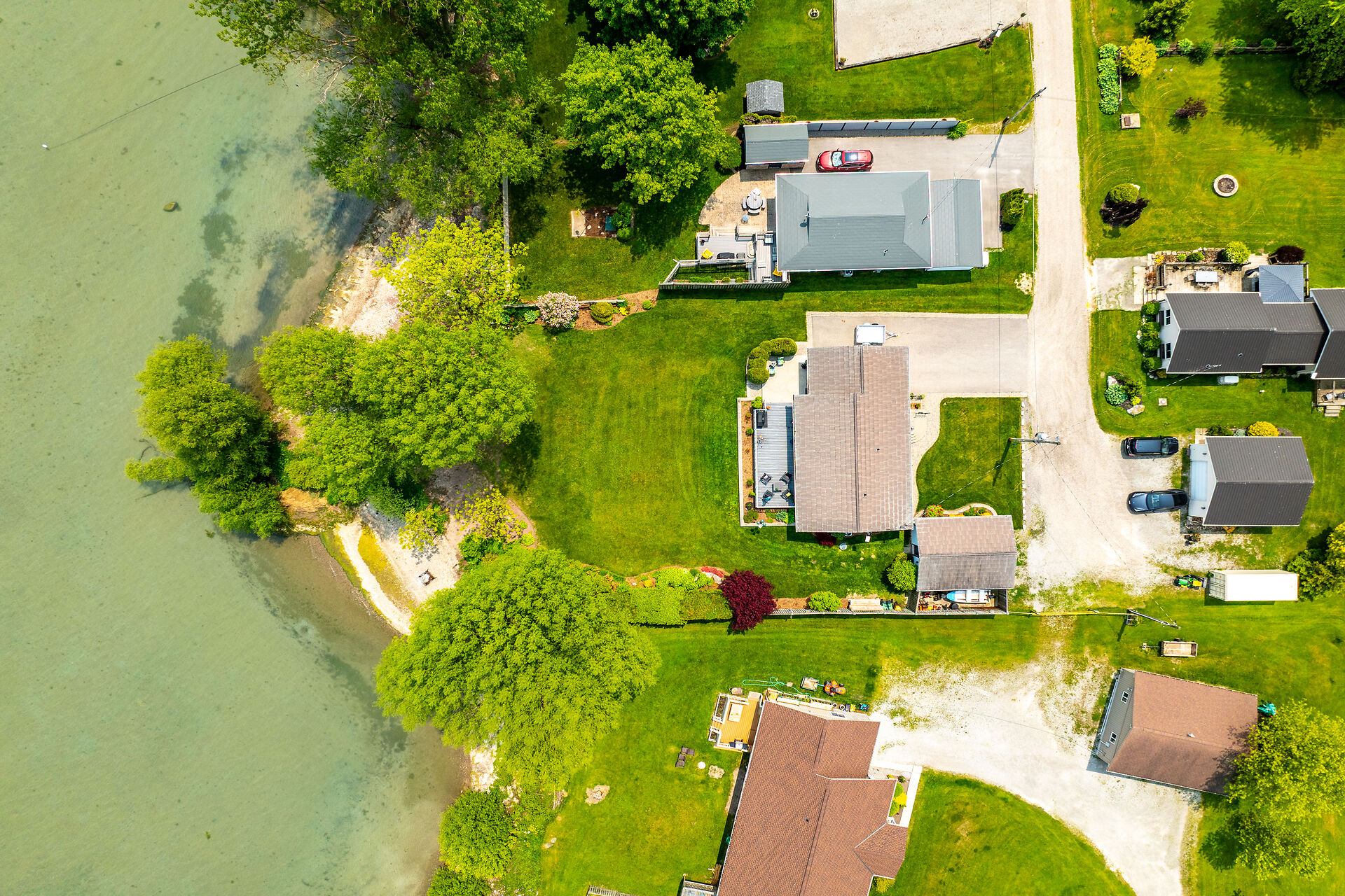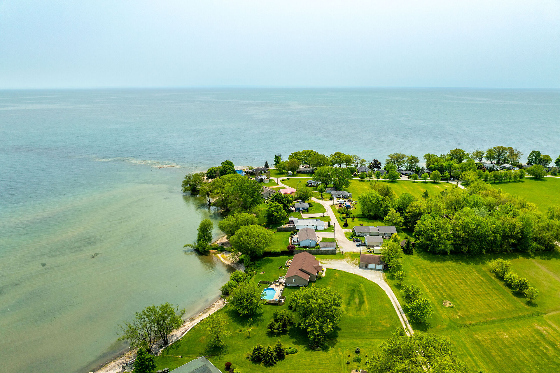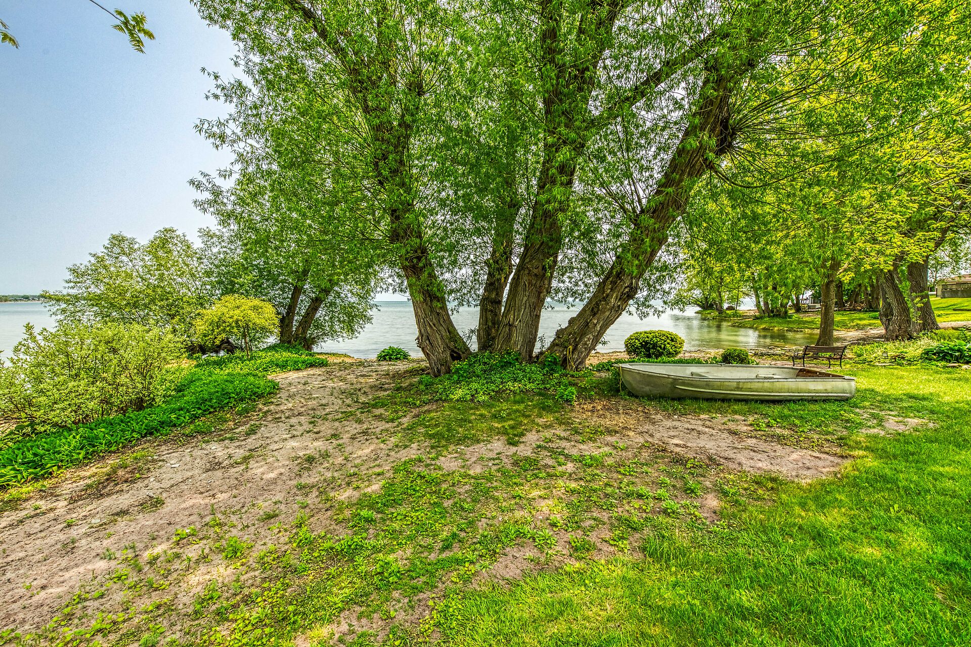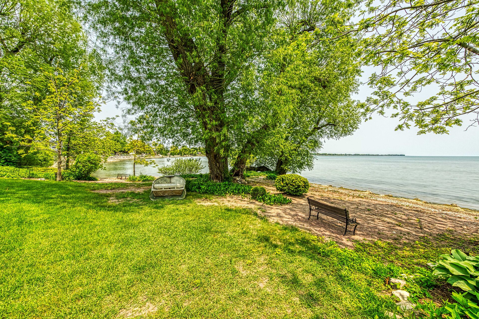 This year-round lake-house/cottage offers nearly 2000 sqft of living space with 3 bedrooms and a finished lower level. Located on a premium ½ acre waterfront lot at Hoover's Point Lane, it features panoramic views and a private beach with about 100 ft of sandy shoreline extending into Lake Erie. The property includes a paved driveway for 4 vehicles and an RV/boat, interlock brick walkways, privacy fenced yard, mature trees, manicured lawn, vibrant gardens, and extraordinary landscape. Also included are an attached garage with inside entry and a detached boathouse/workshop.The outdoor amenities perfectly complement the luxurious interior, creating an inviting atmosphere for relaxation and entertainment.