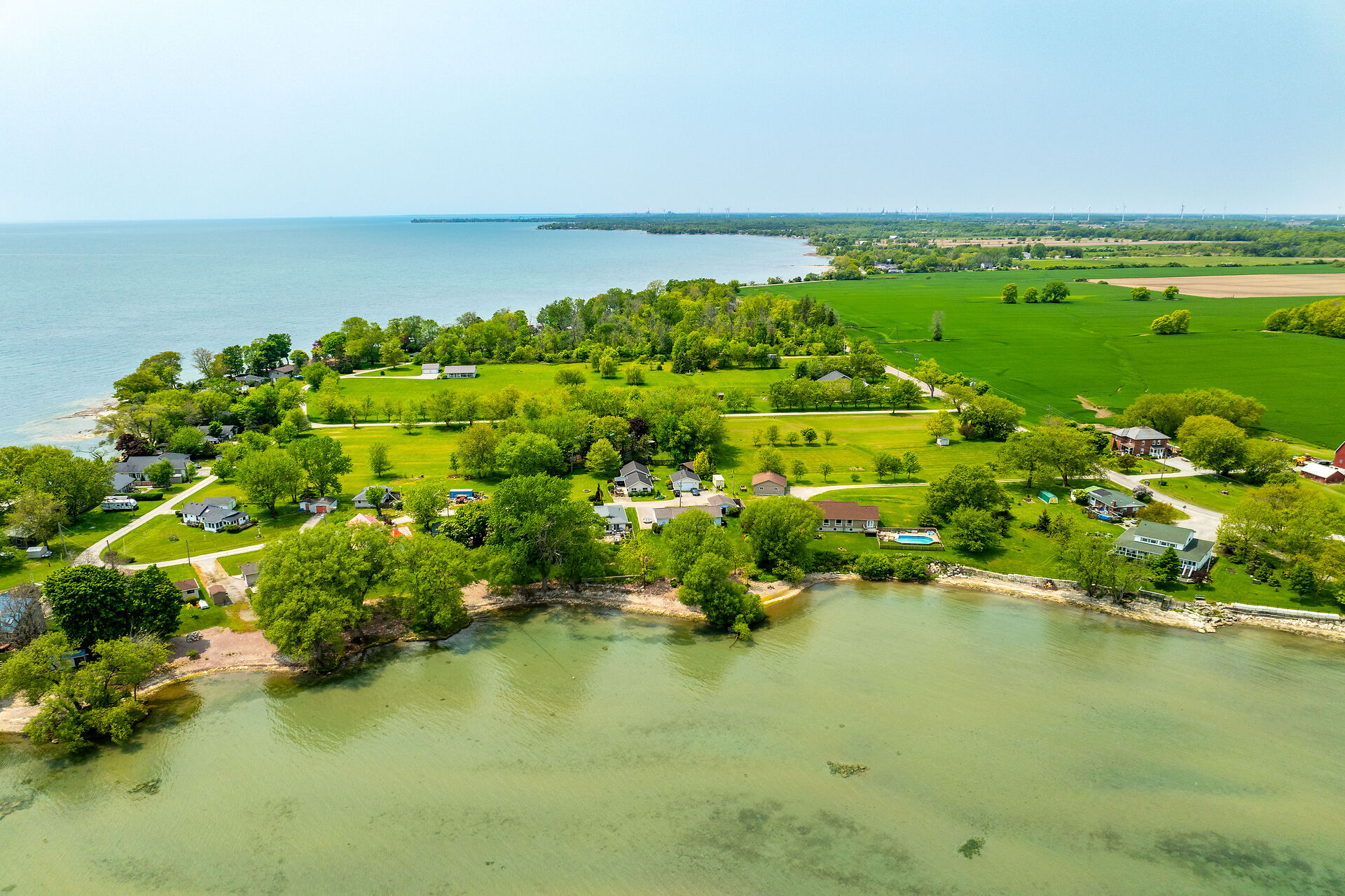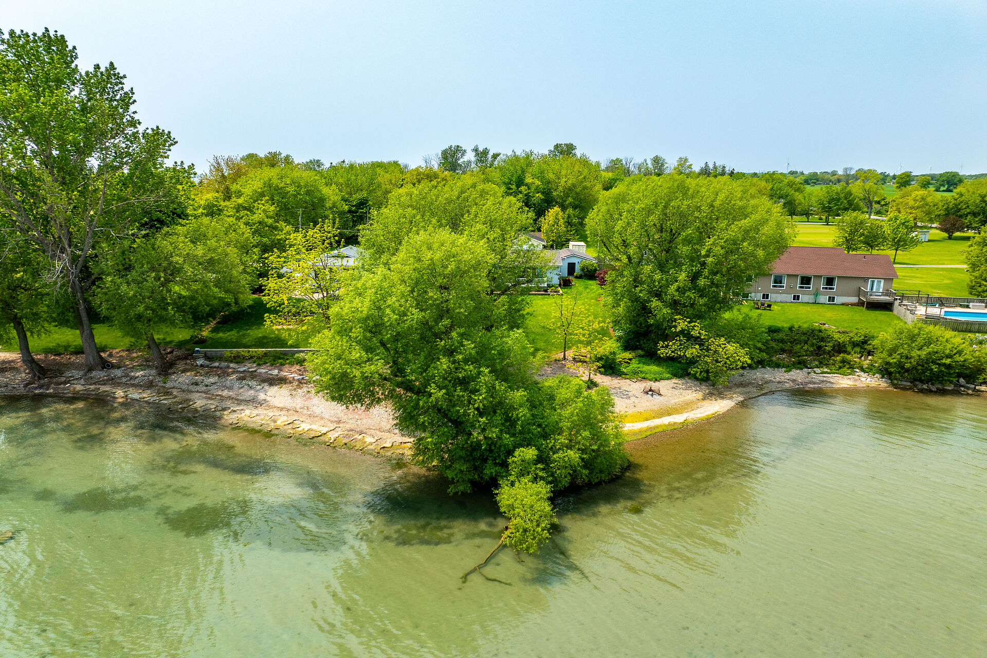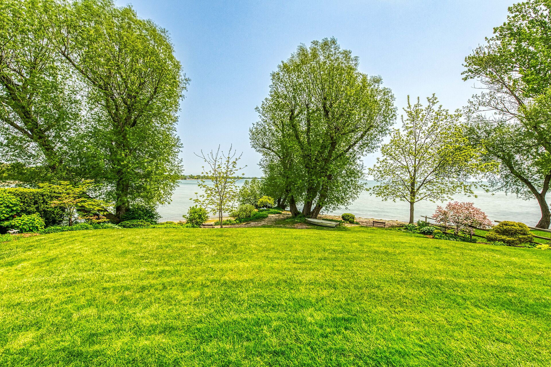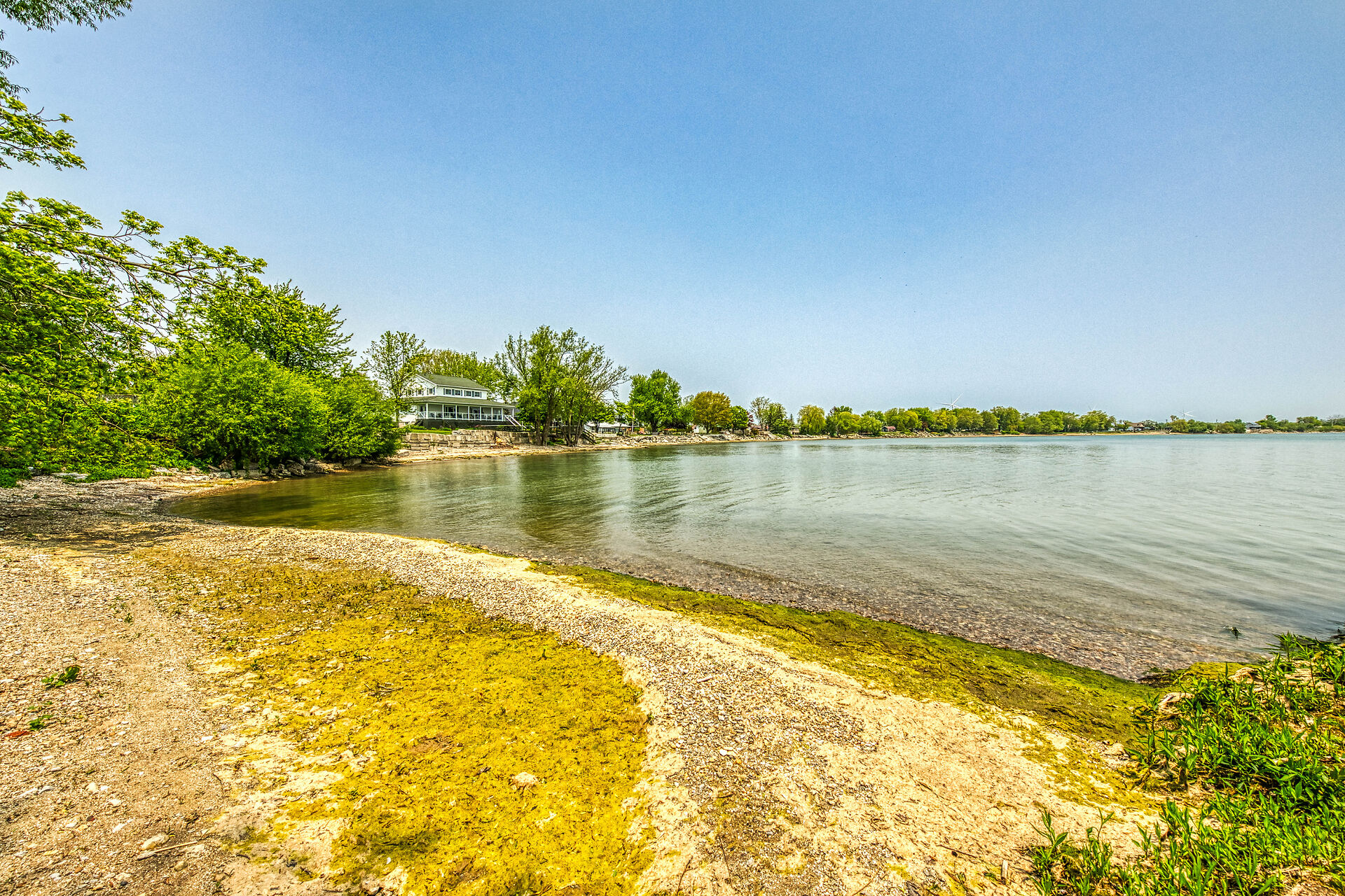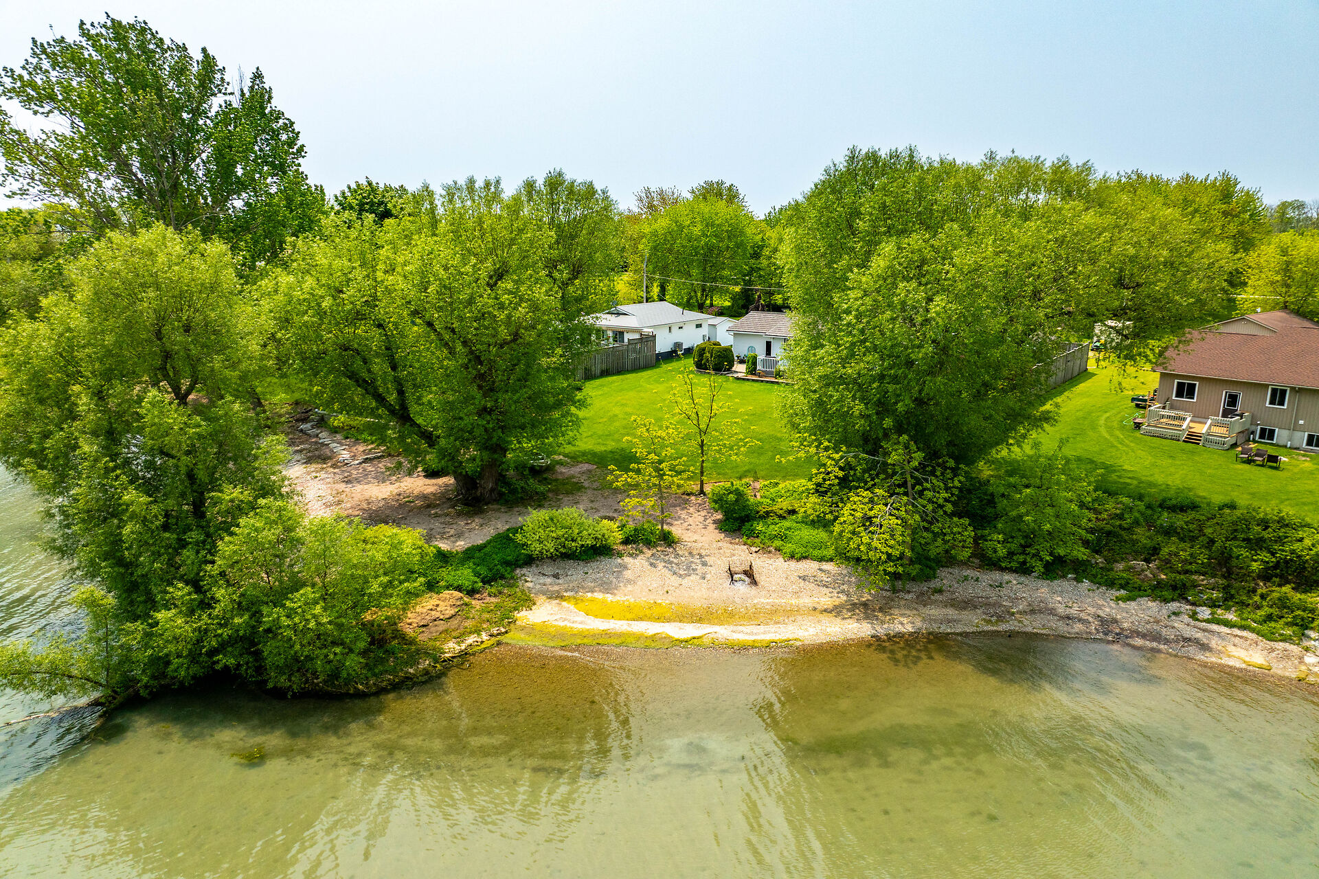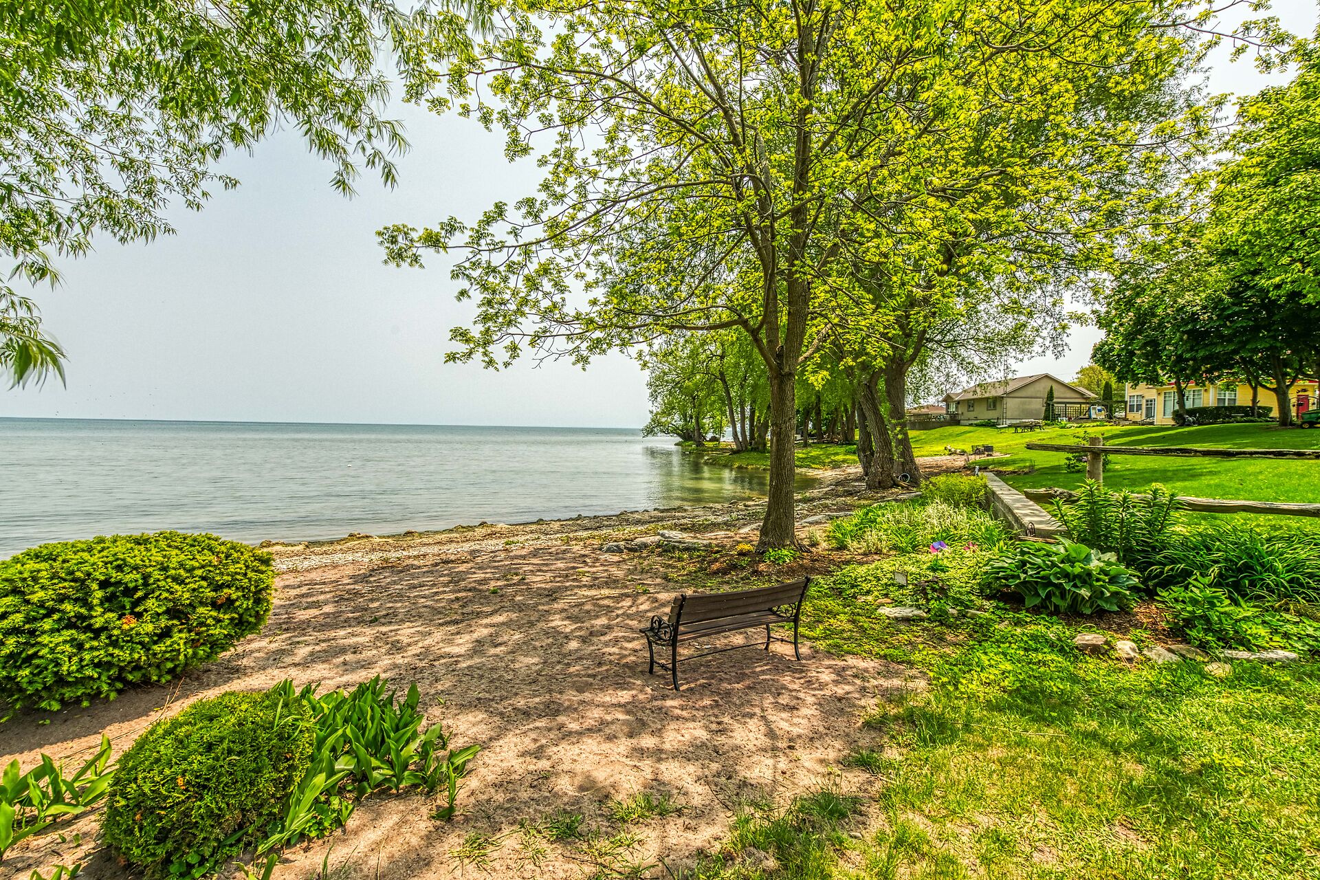 This year-round lake-house/cottage offers nearly 2000 sqft of living space with 3 bedrooms and a finished lower level. Located on a premium ½ acre waterfront lot at Hoover's Point Lane, it features panoramic views and a private beach with about 100 ft of sandy shoreline extending into Lake Erie. The property includes a paved driveway for 4 vehicles and an RV/boat, interlock brick walkways, privacy fenced yard, mature trees, manicured lawn, vibrant gardens, and extraordinary landscape. Also included are an attached garage with inside entry and a detached boathouse/workshop.The outdoor amenities perfectly complement the luxurious interior, creating an inviting atmosphere for relaxation and entertainment.