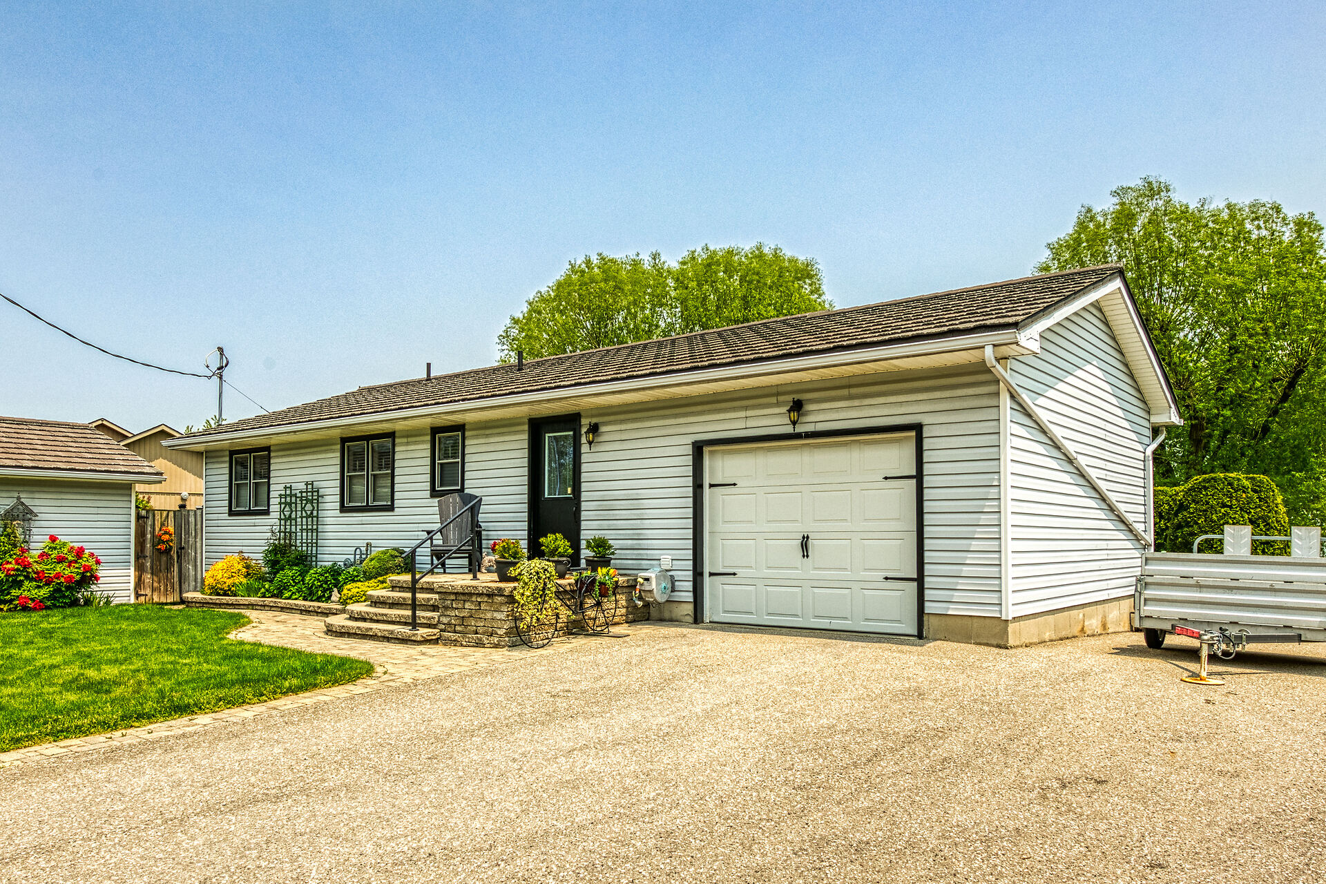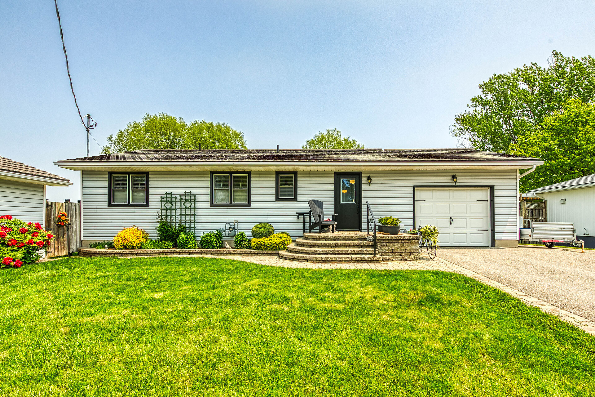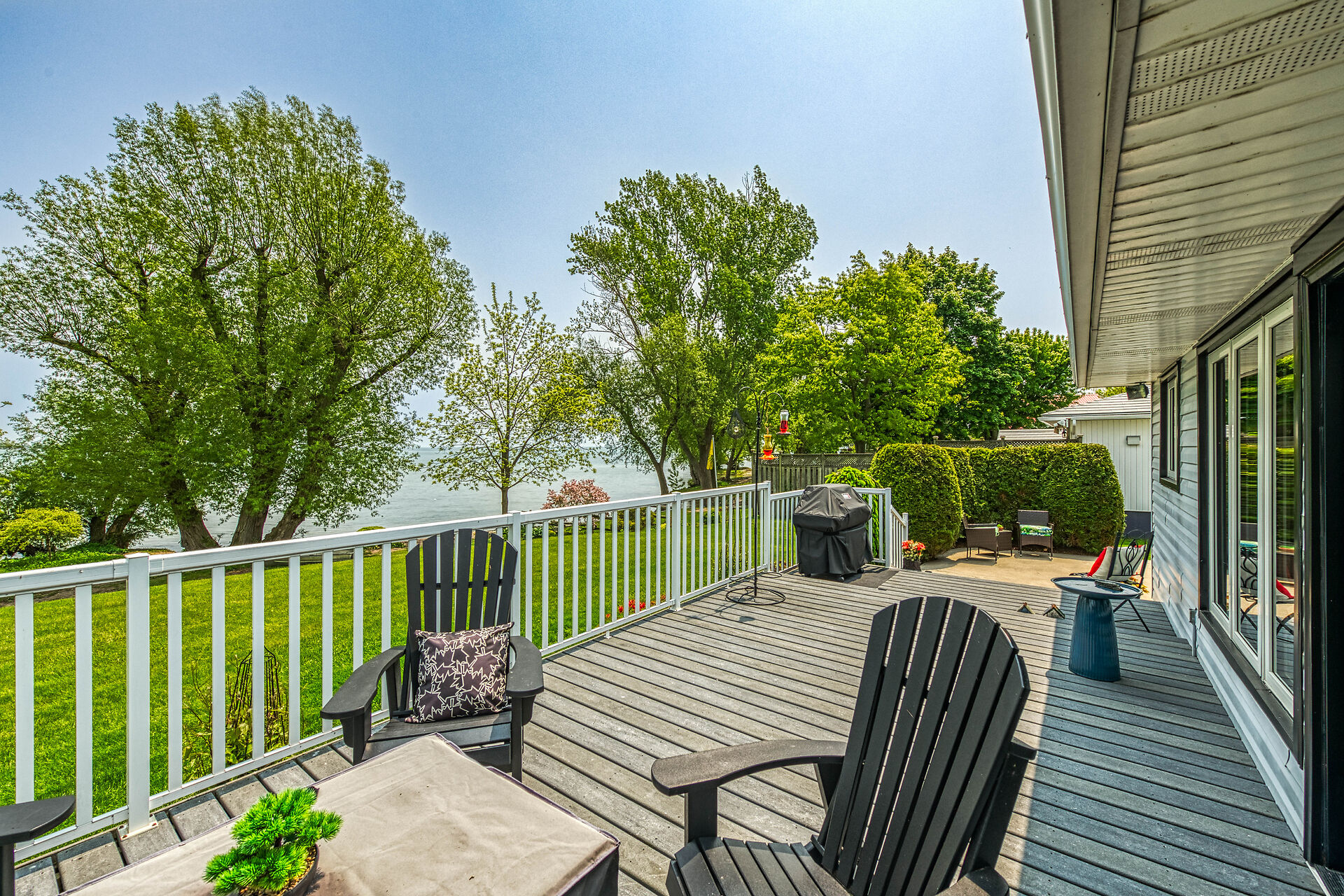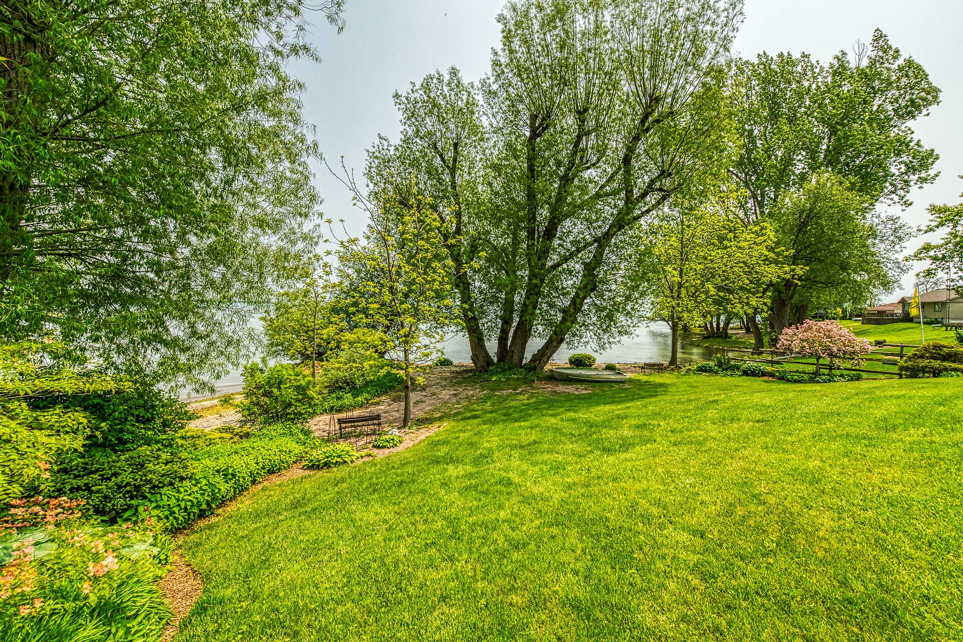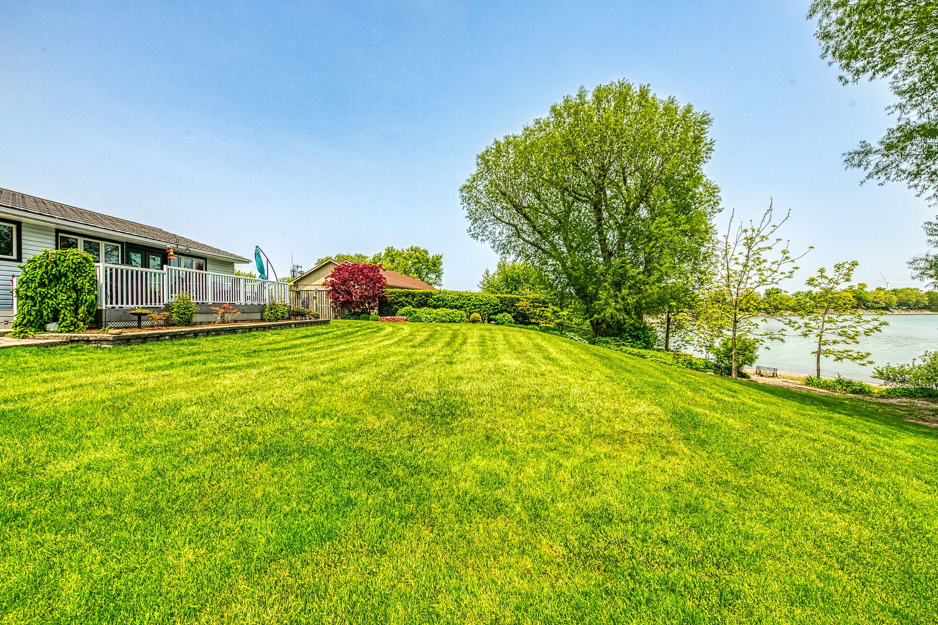 This year-round lake-house/cottage offers nearly 2000 sqft of living space with 3 bedrooms and a finished lower level. Located on a premium ½ acre waterfront lot at Hoover's Point Lane, it features panoramic views and a private beach with about 100 ft of sandy shoreline extending into Lake Erie. The property includes a paved driveway for 4 vehicles and an RV/boat, interlock brick walkways, privacy fenced yard, mature trees, manicured lawn, vibrant gardens, and extraordinary landscape. Also included are an attached garage with inside entry and a detached boathouse/workshop.The outdoor amenities perfectly complement the luxurious interior, creating an inviting atmosphere for relaxation and entertainment.