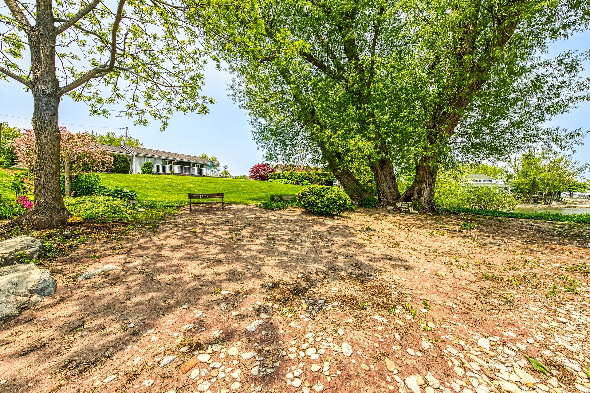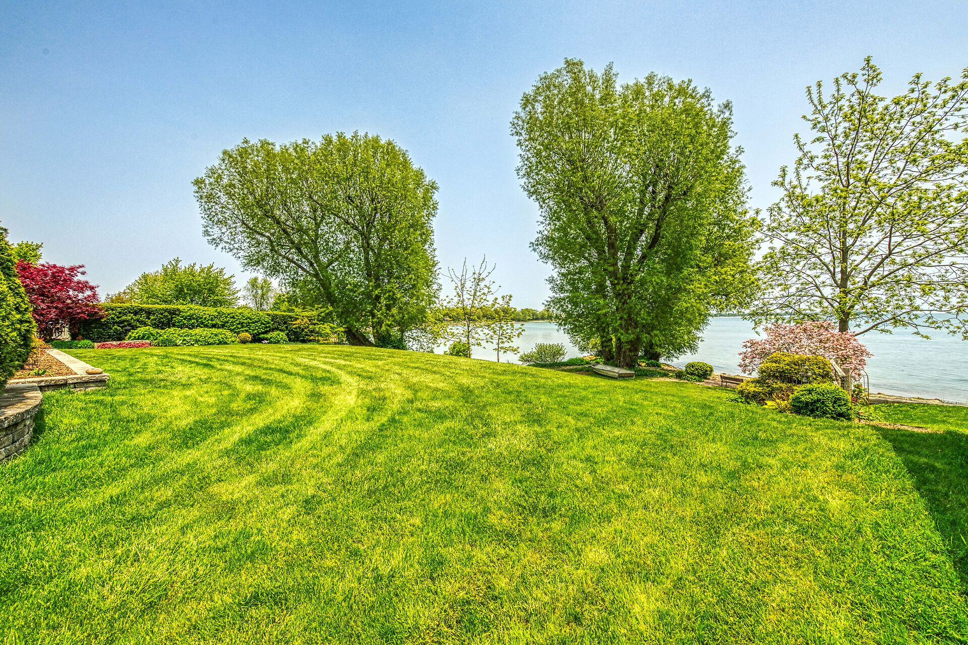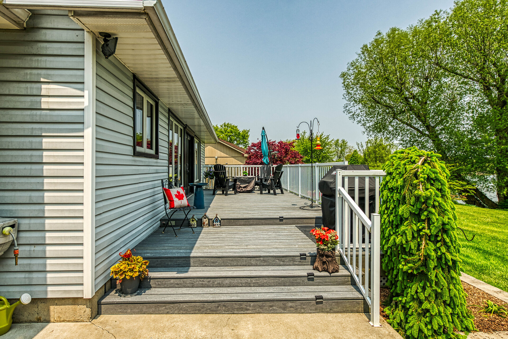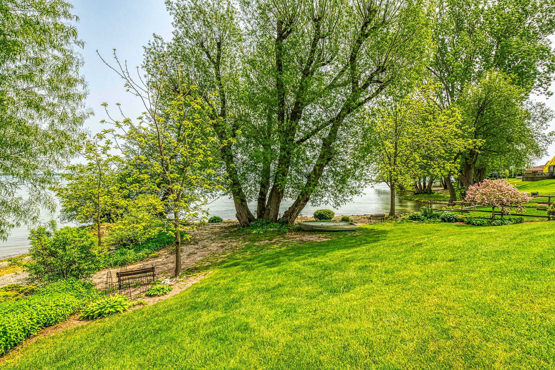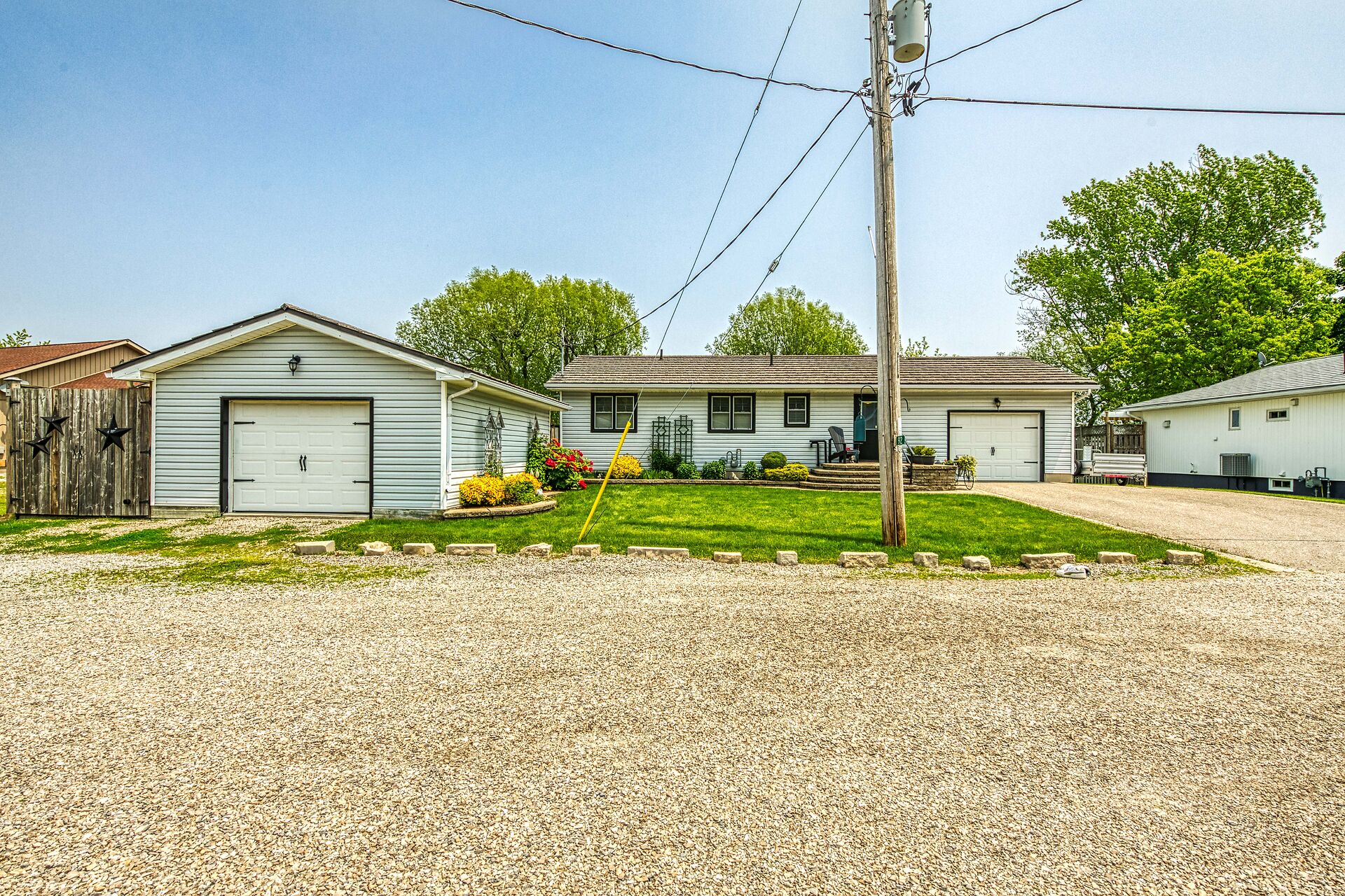 This year-round lake-house/cottage offers nearly 2000 sqft of living space with 3 bedrooms and a finished lower level. Located on a premium ½ acre waterfront lot at Hoover's Point Lane, it features panoramic views and a private beach with about 100 ft of sandy shoreline extending into Lake Erie. The property includes a paved driveway for 4 vehicles and an RV/boat, interlock brick walkways, privacy fenced yard, mature trees, manicured lawn, vibrant gardens, and extraordinary landscape. Also included are an attached garage with inside entry and a detached boathouse/workshop.The outdoor amenities perfectly complement the luxurious interior, creating an inviting atmosphere for relaxation and entertainment.