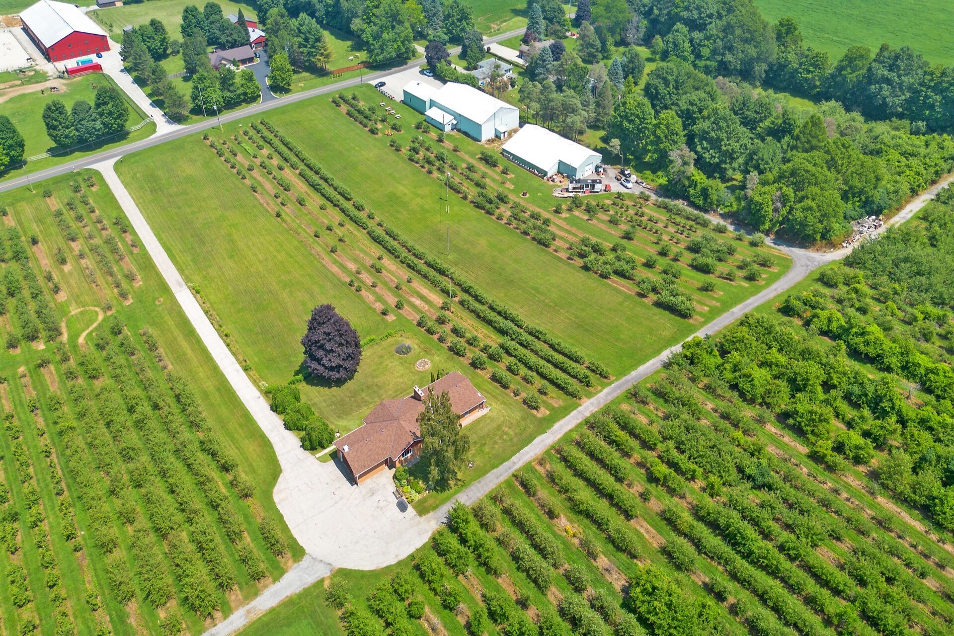 In the heart of a vibrant agri-tourism corridor, this 37+ acre farm has the perfect balance of rural charm & agricultural income. The sandy soil is ideal for 28+ acres planted apple trees with 8+ acres available for veggies, flowers, lavender, hops & specialty crops. The fully licensed cidery, distillery, retail & storage with 15-ft ceilings, shipping, washrooms & ample paved parking. The distillery has cold storage plus more insulated, heated space with drive-in doors for a wide range of permitted uses. A 3+2 bdrm 3 bath bungalow offers housing for workers, income or guests. Bell Fibre, liquor licenses, wholesale & retail network, make this a multi-purpose investment. Live, work and grow—all in one place.