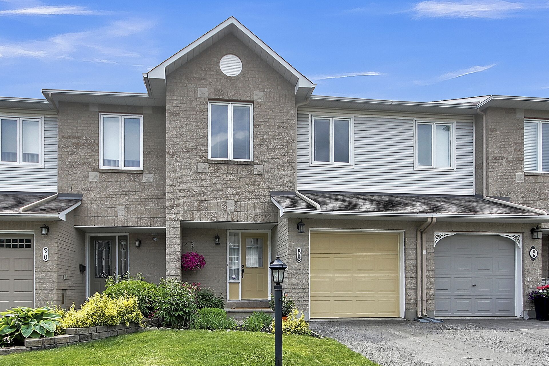 Welcome to 88 Covington Place – a beautifully maintained executive townhome in Centrepointe! This spacious home offers hardwood floors in the open-concept living and dining areas (currently used in reverse), perfect for entertaining. The large kitchen features added cabinets and ample counter space. Upstairs: a generous primary bedroom with walk-in closet and a 5-piece ensuite, plus two more bedrooms. The finished basement has a cozy rec room with wood-burning fireplace. Enjoy summer BBQs on the west-facing deck. Recent updates: flooring, fresh paint, washer, dryer – just move in and enjoy!