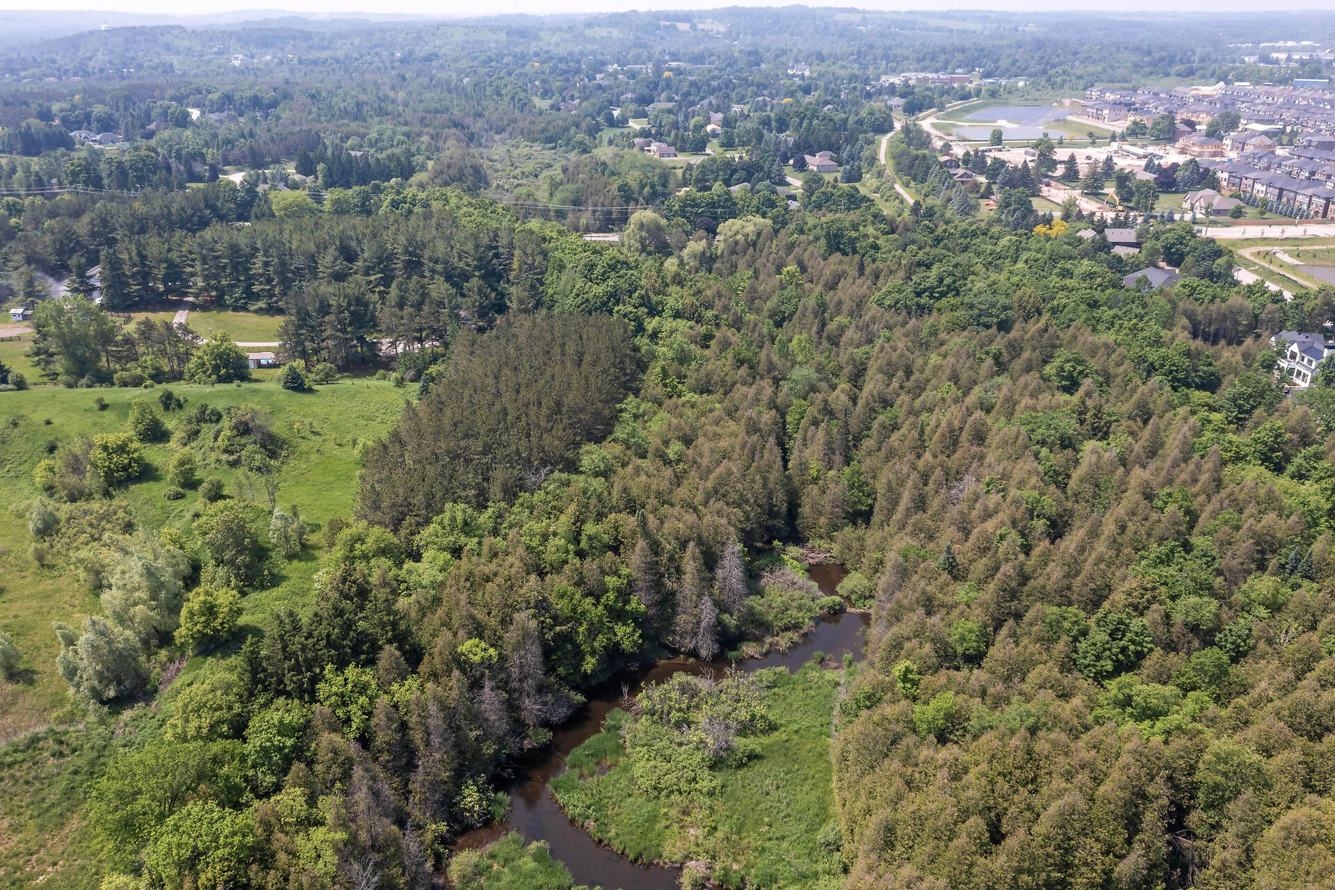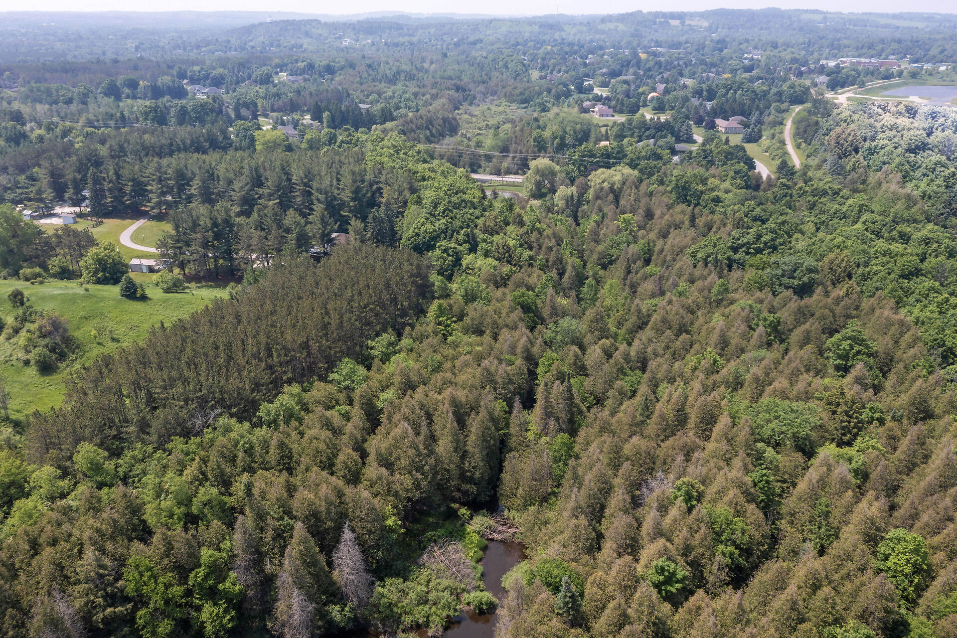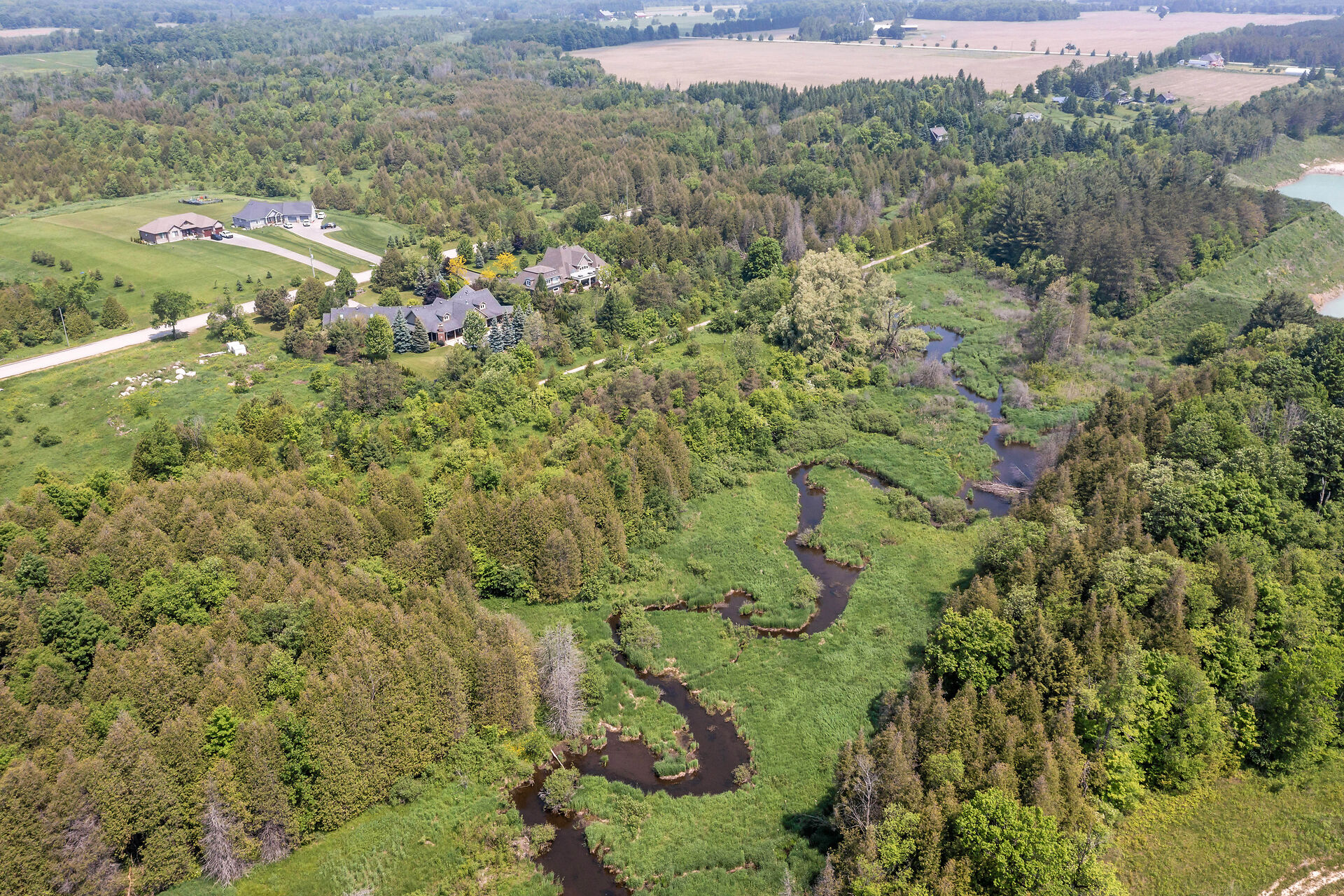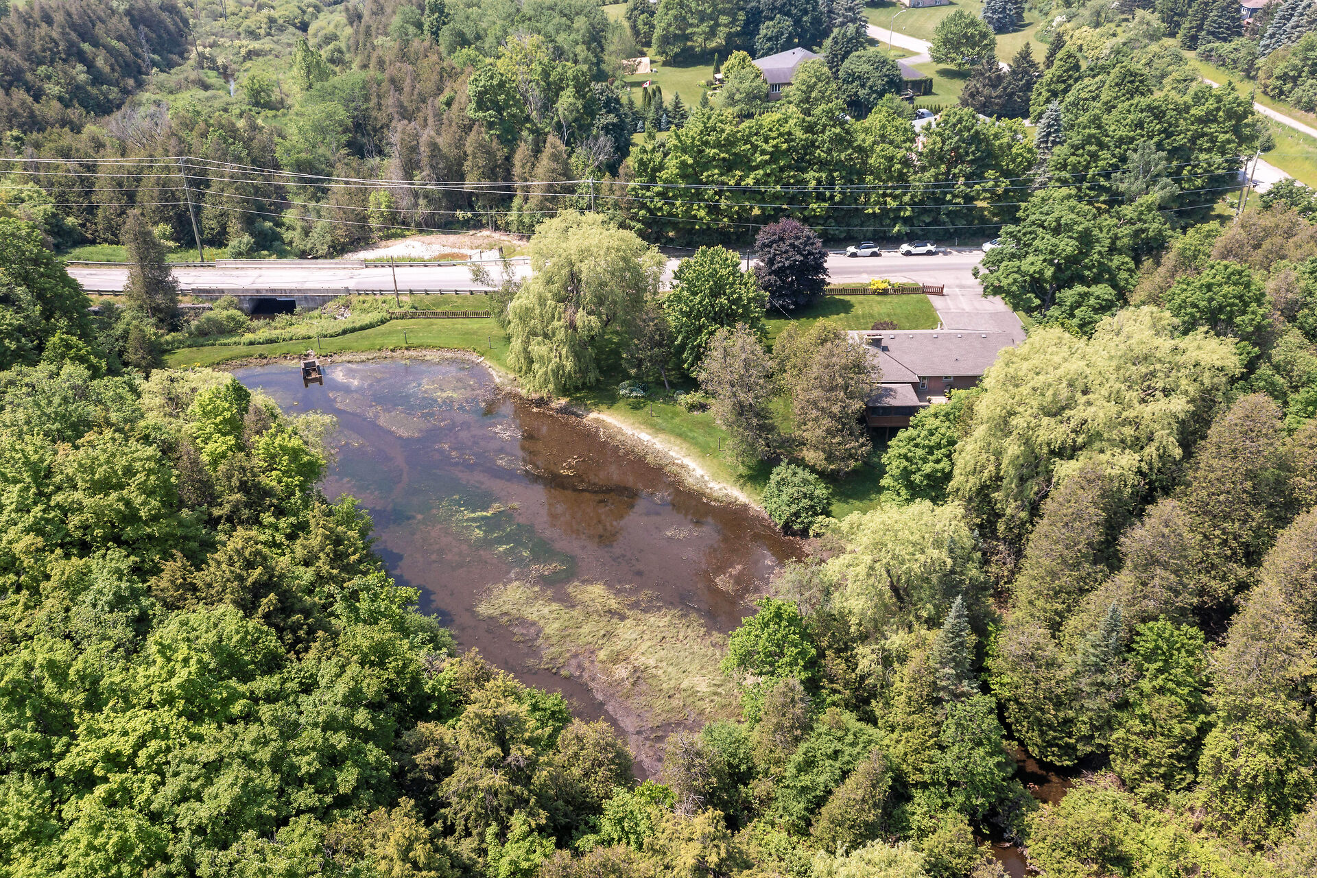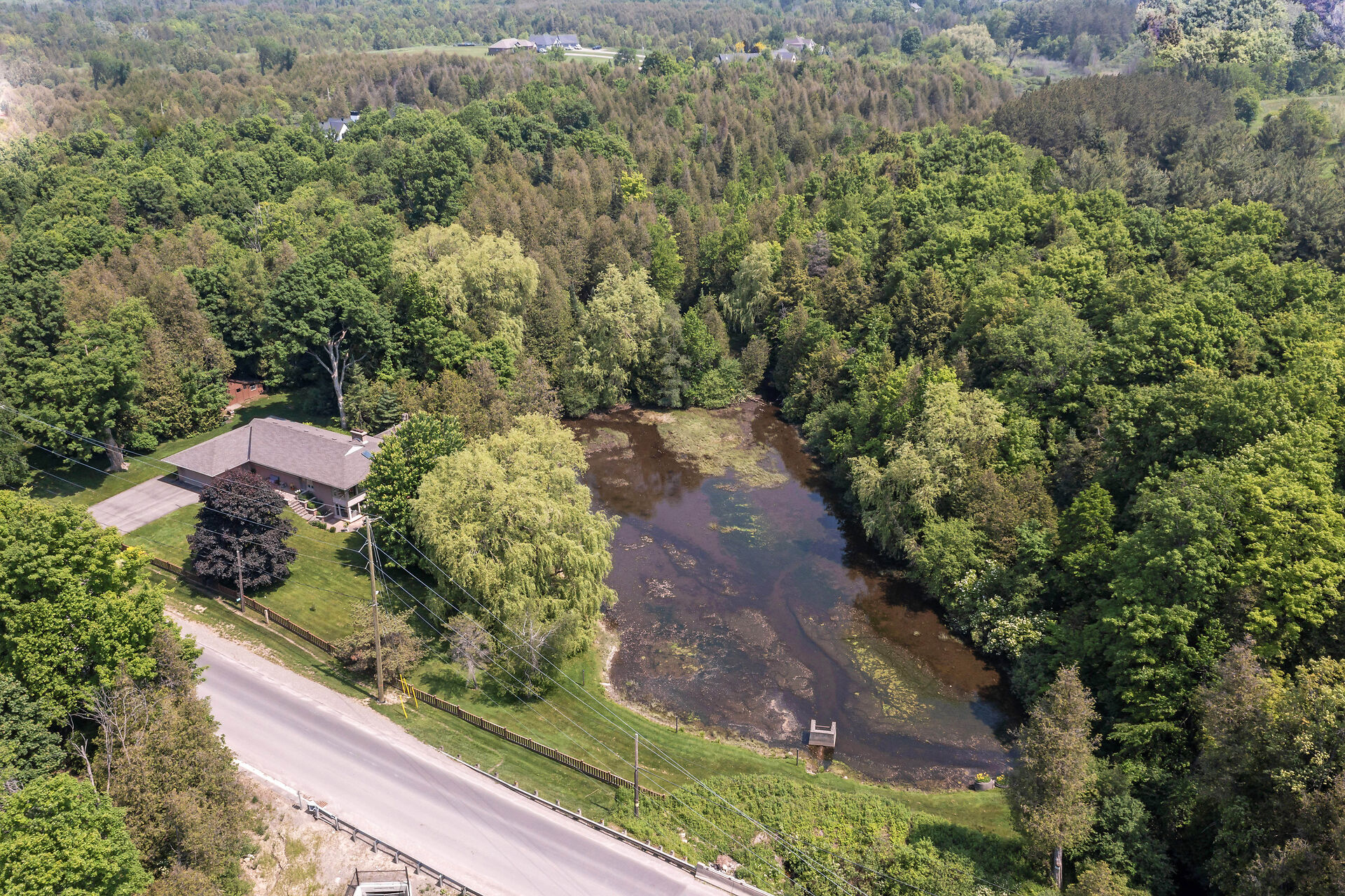 Welcome to Your Private Woodland Retreat Nestled on 10.3 acres of pristine, forested land, this lovingly maintained 3-bdrm home offers the perfect blend of comfort, nature& privacy. Follow the sound of the West Credit River as it gently flows into your very own private pond a peaceful, picture-perfect setting for morning coffees, evening bonfires, or quiet reflection. Inside, the home exudes warmth & care, with bright, airy living spaces with endless opportunity. The finished walkout basement adds valuable living space, perfect for a cozy family room, home office, or guest suite. Possible severance ability due to the frontage, extra cash in the pocket.
