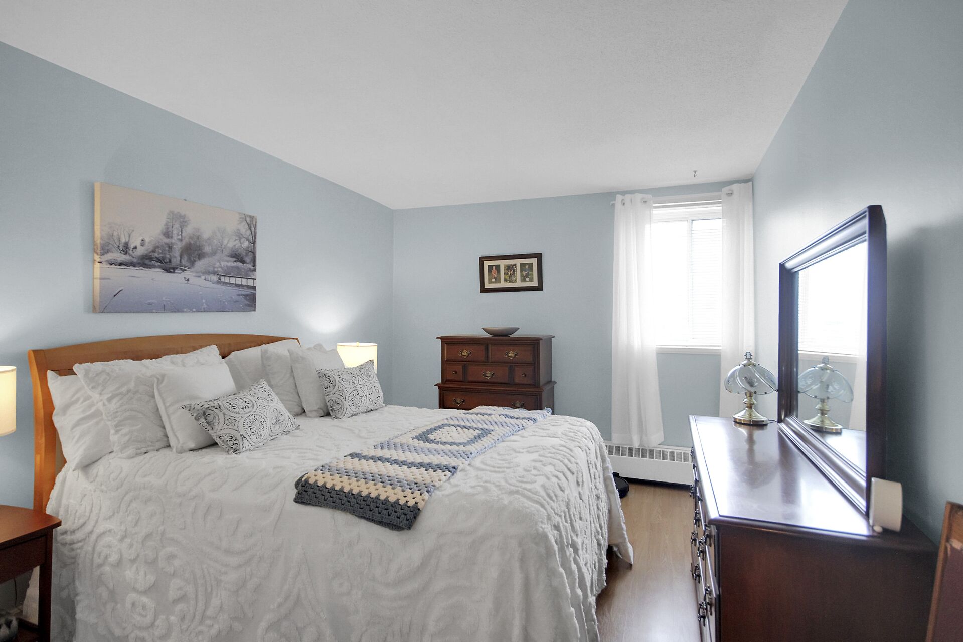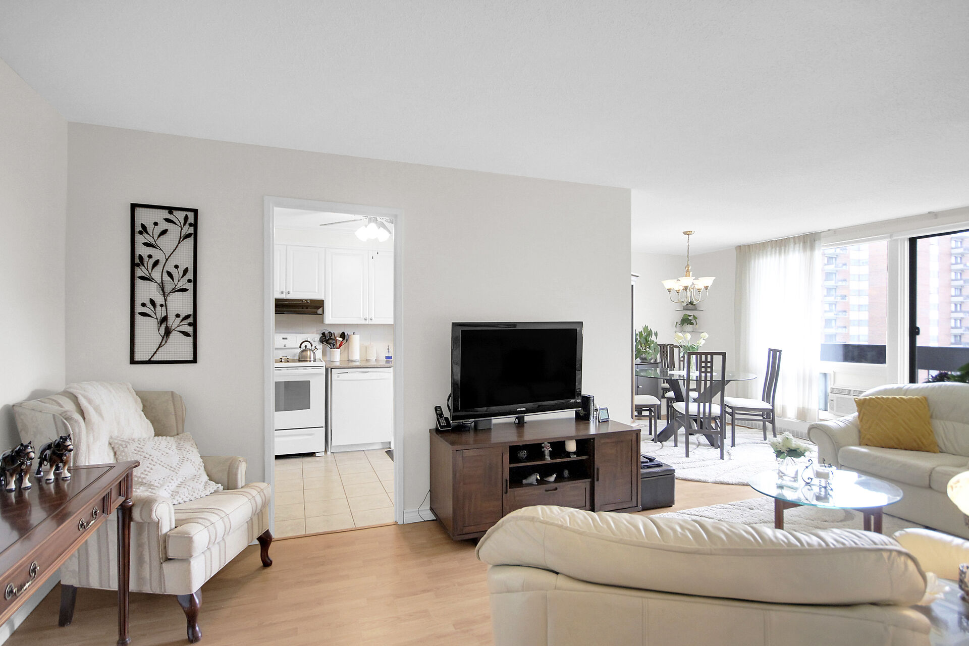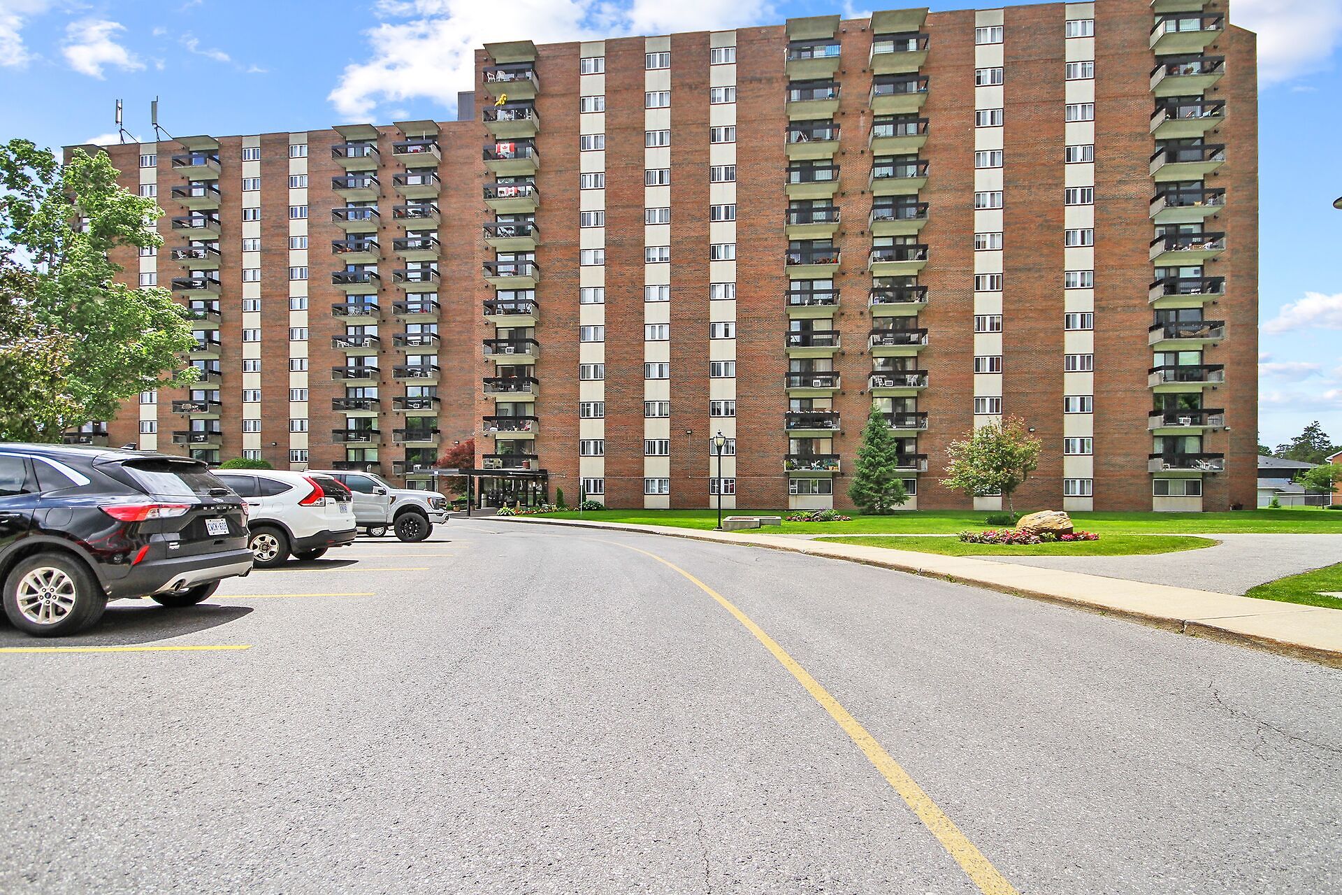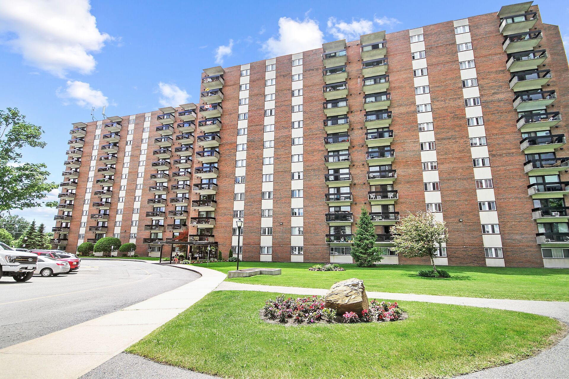 Renovated two-bedroom, one-bathroom condo located in a well-run building. Updated kitchen includes three appliances: fridge, stove, and dishwasher. Laminate flooring throughout. Condo fees cover heat, hydro, and water. One indoor heated parking and one locker included. Loads of amenities: indoor and outdoor swimming pools, party room, billiards room, workshop, and fitness center. Lots of visitor parking. This apartment is close to everything: walking distance to a wide variety of stores, restaurants, and services, close to public transit, schools, churches, and banks. Small dogs are permitted.