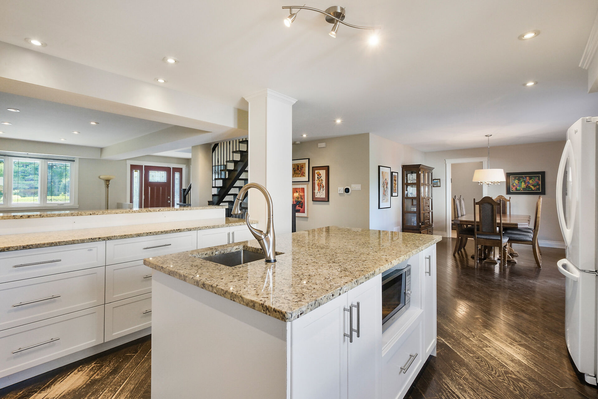 Discover this beautifully updated family home at 949 Cavan in Ottawa's desirable West End. Ideal for growing families, it features modern finishes, flat ceilings with pot lights, and hardwood floors throughout (ceramic in baths). The spacious kitchen offers a large island, granite countertops, and ample cabinetry. Enjoy a main-floor laundry room and a bright upper level with a skylight. The generous primary suite includes a spa-like ensuite, plus three additional bedrooms. The finished basement adds a rec room, bedroom, and full bath. Step outside to a private deck. Close to transit, Hwy 417, and minutes from Westboro dining and shops.