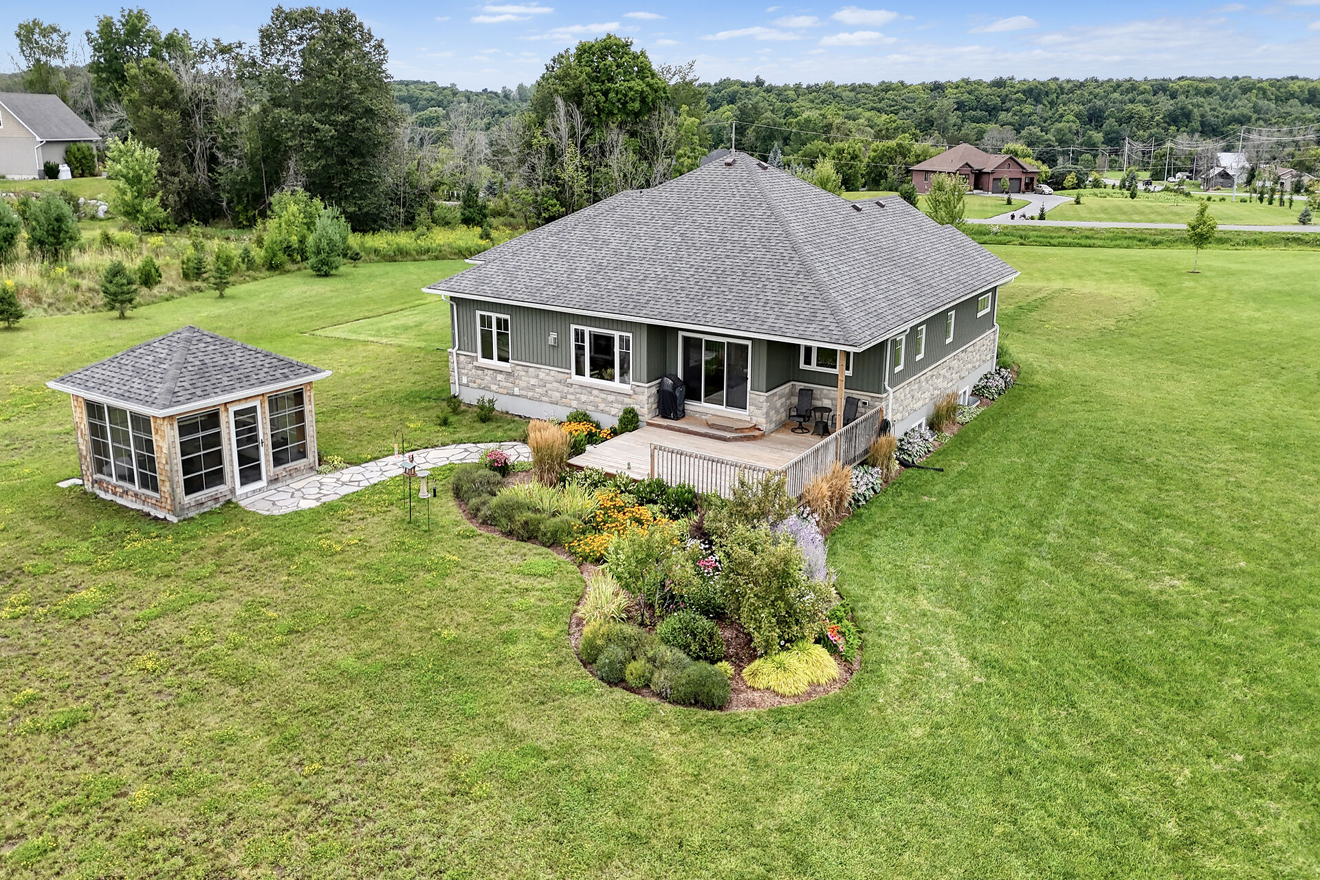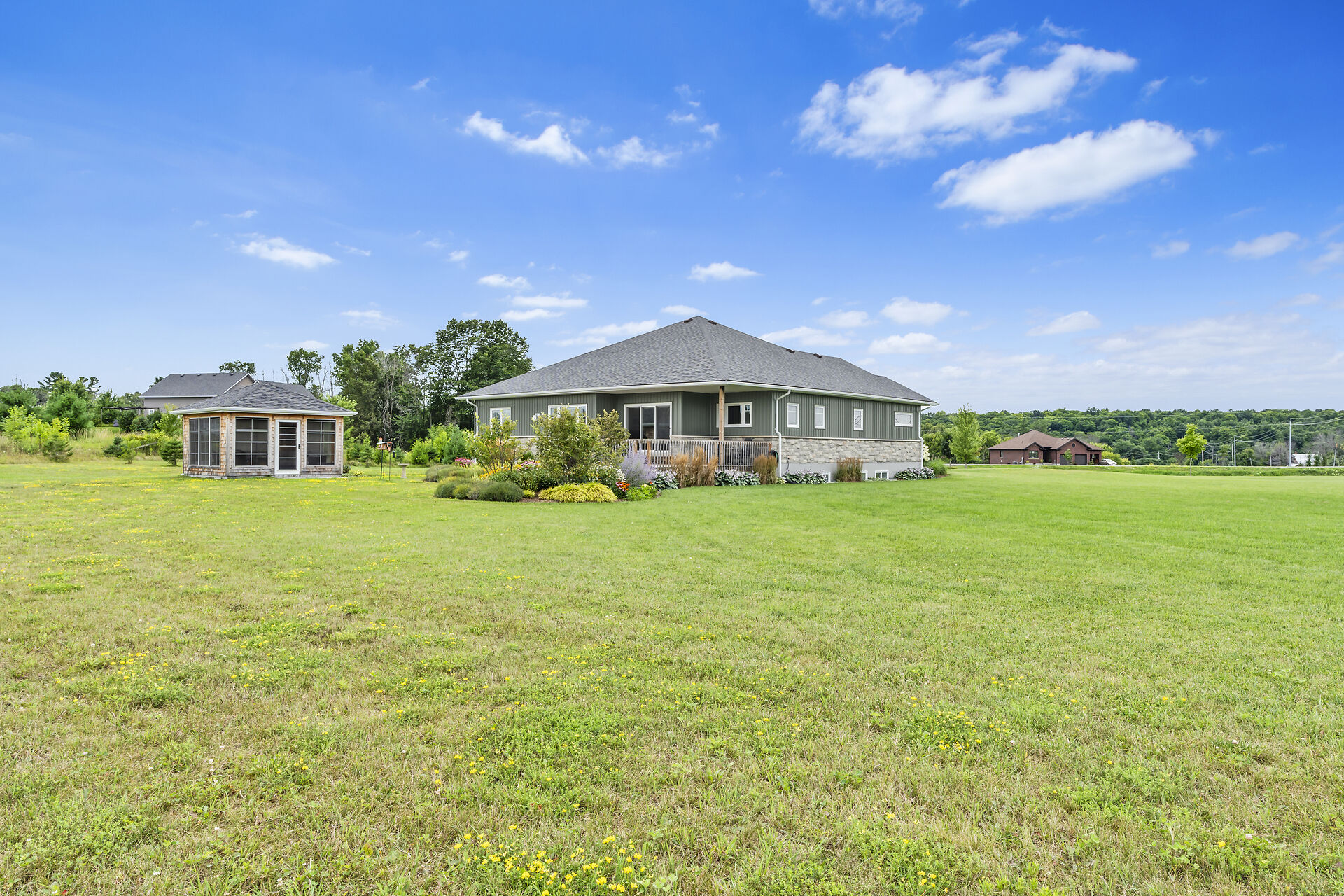 Welcome to your dream home nestled in the heart of Sandstone Shores Estates - a perfect fusion of creative design, quality construction, and everyday comfort. This custom-built 2+2 bedroom, 3 full bathroom residence is set on over 3 acres of cleared, pristine land, offering privacy, tranquility, and room to breathe. As you arrive, the stately driveway and attached 2-car garage make a grand first impression. Step inside and be immediately captivated by the custom oak flooring along with soaring 9-foot vaulted ceilings on both levels. The foyer welcomes you into an open and airy space that's both warm and impressive. The chef's kitchen is a showpiece. Book your private showing today!
