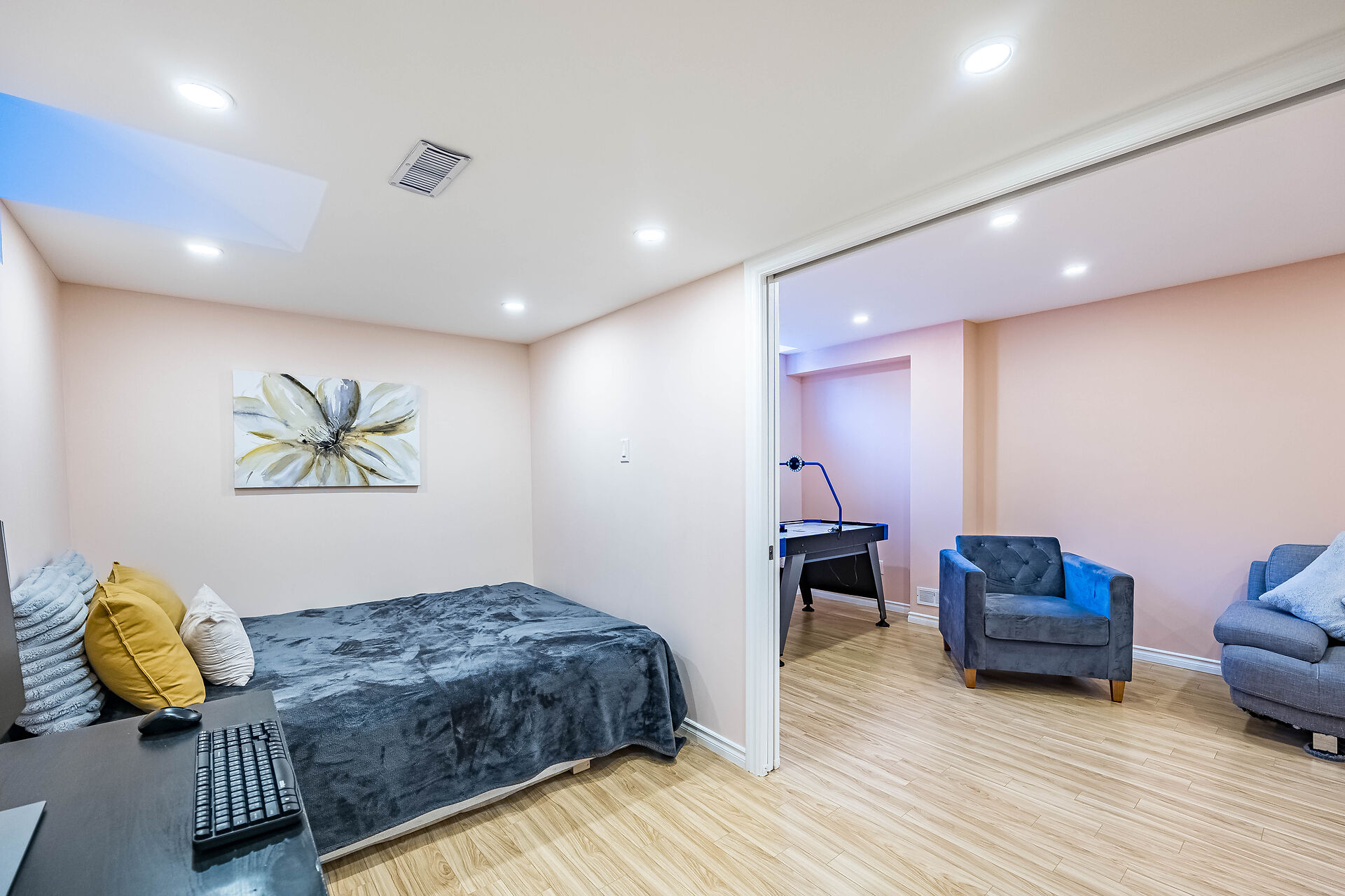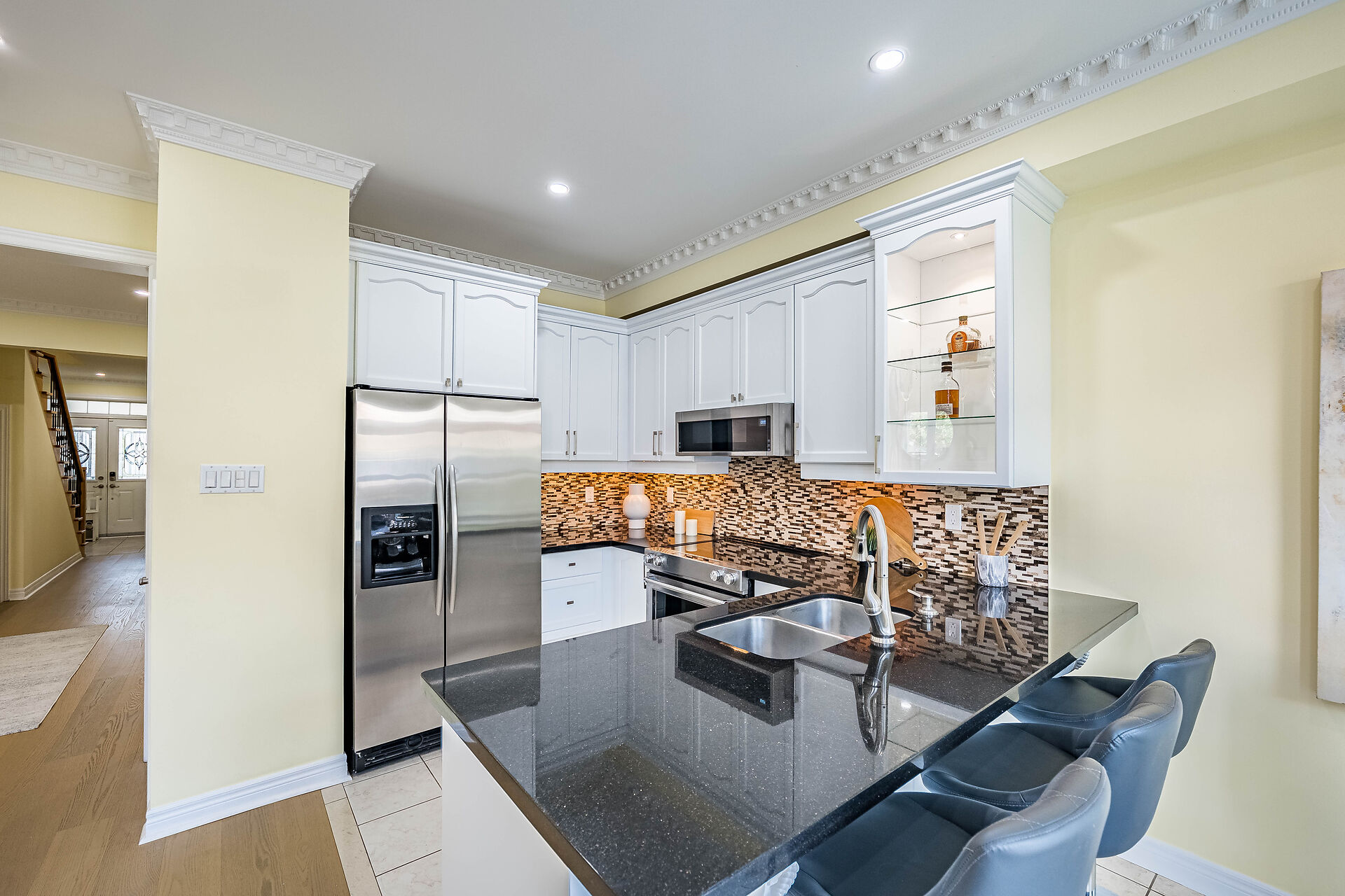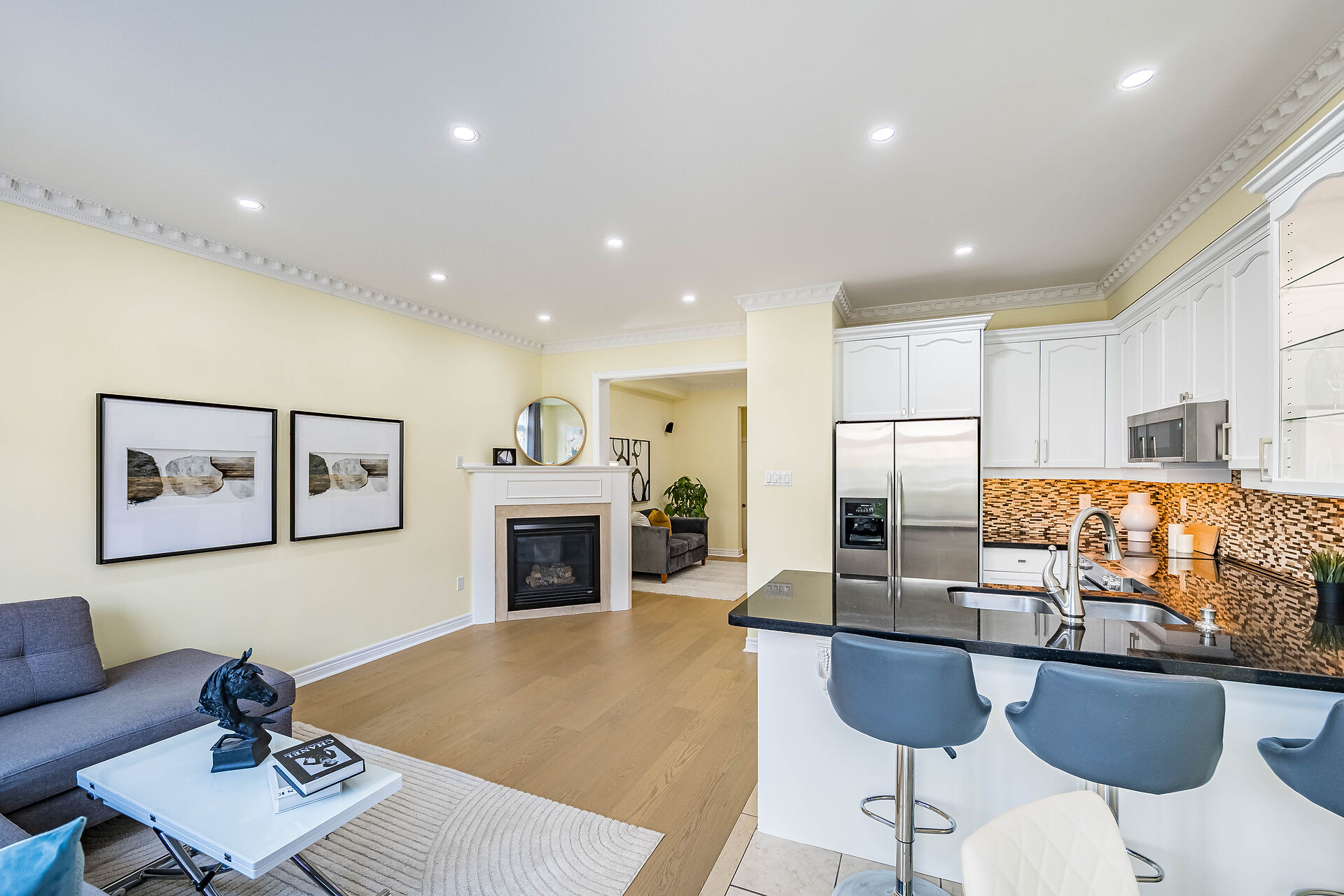 Stunning Home In Prestigious Thornberry Woods. Functional Layout W/1,928 Sq Ft Above Grade. Tastefully Upgraded W/9 Ft Smooth Ceiling on Main, Crown Mouldings, Hardwood Floors Throughout, Hardwood Staircase. Open Concept Living Room W/Fireplace , LED Pot Lights Throughout Main , Contemporary Kitchen W/Tall Cabinets, Granite C-Top, Backsplash, S/S Steel High End Appliances , Spacious Eat-In Area With Walk-Out To Fully Interlocked Backyard, Great Size Sun-Filled Bedrooms , W/I Custom Closets Organizers, 2-nd Floor Laundry, Upgraded Bathrooms W/Granite C-Tops, Recently Finished Basement W/Recreation Room, Gym Den, Bedroom and a Full Bathroom, Enclosed Porch, Double Door Entrance, Front Interlock With 4 Car Parking.