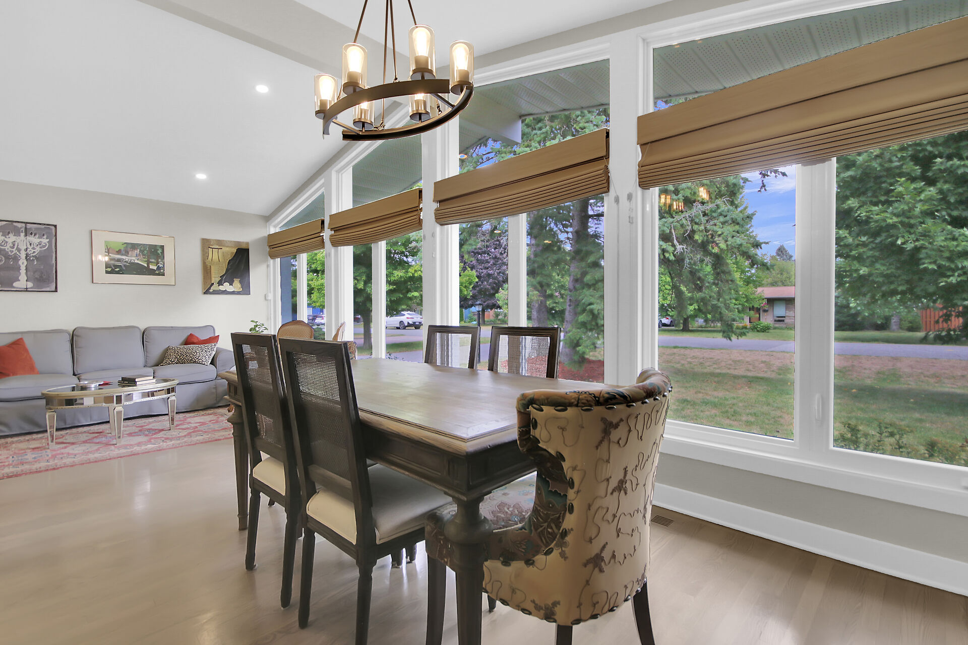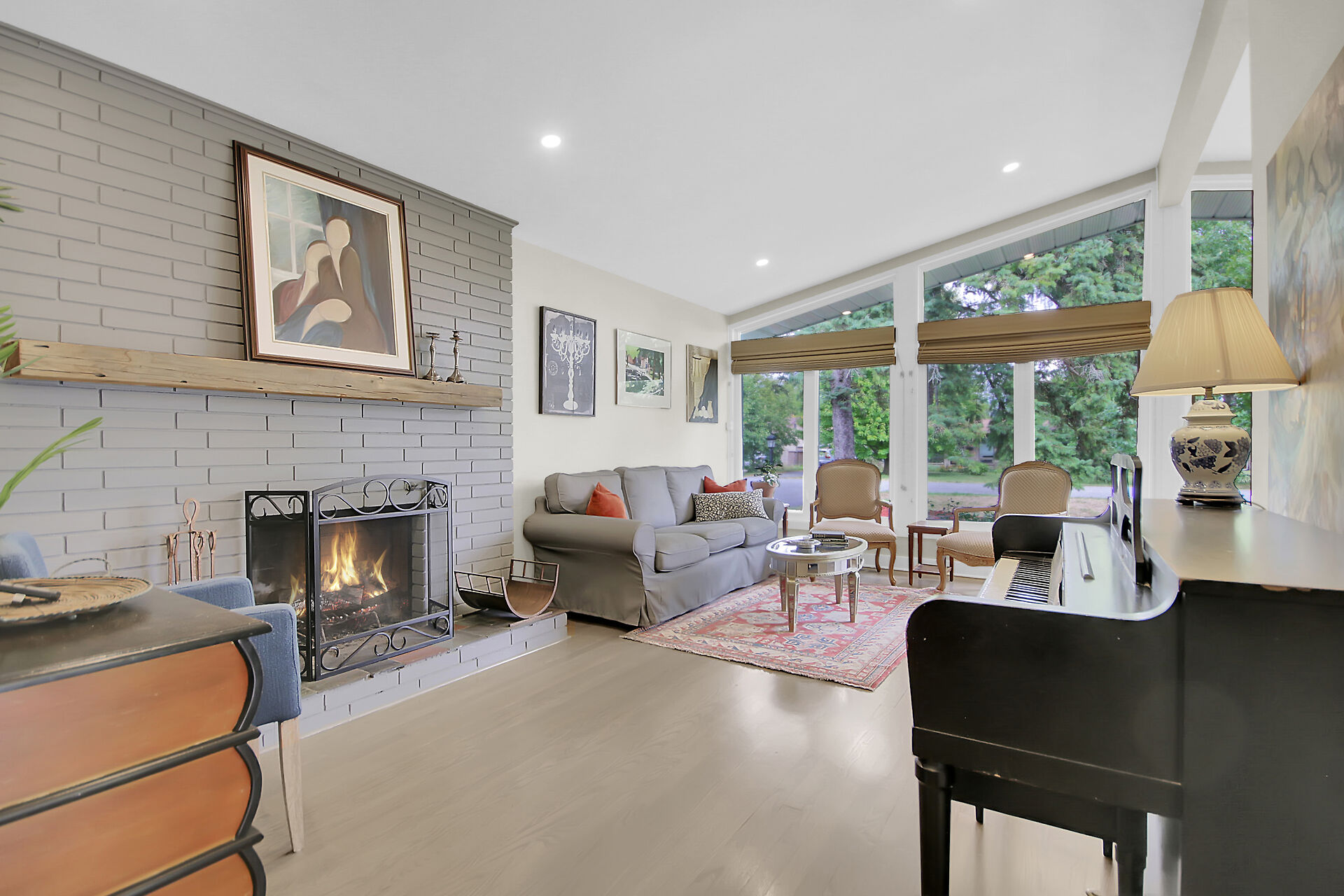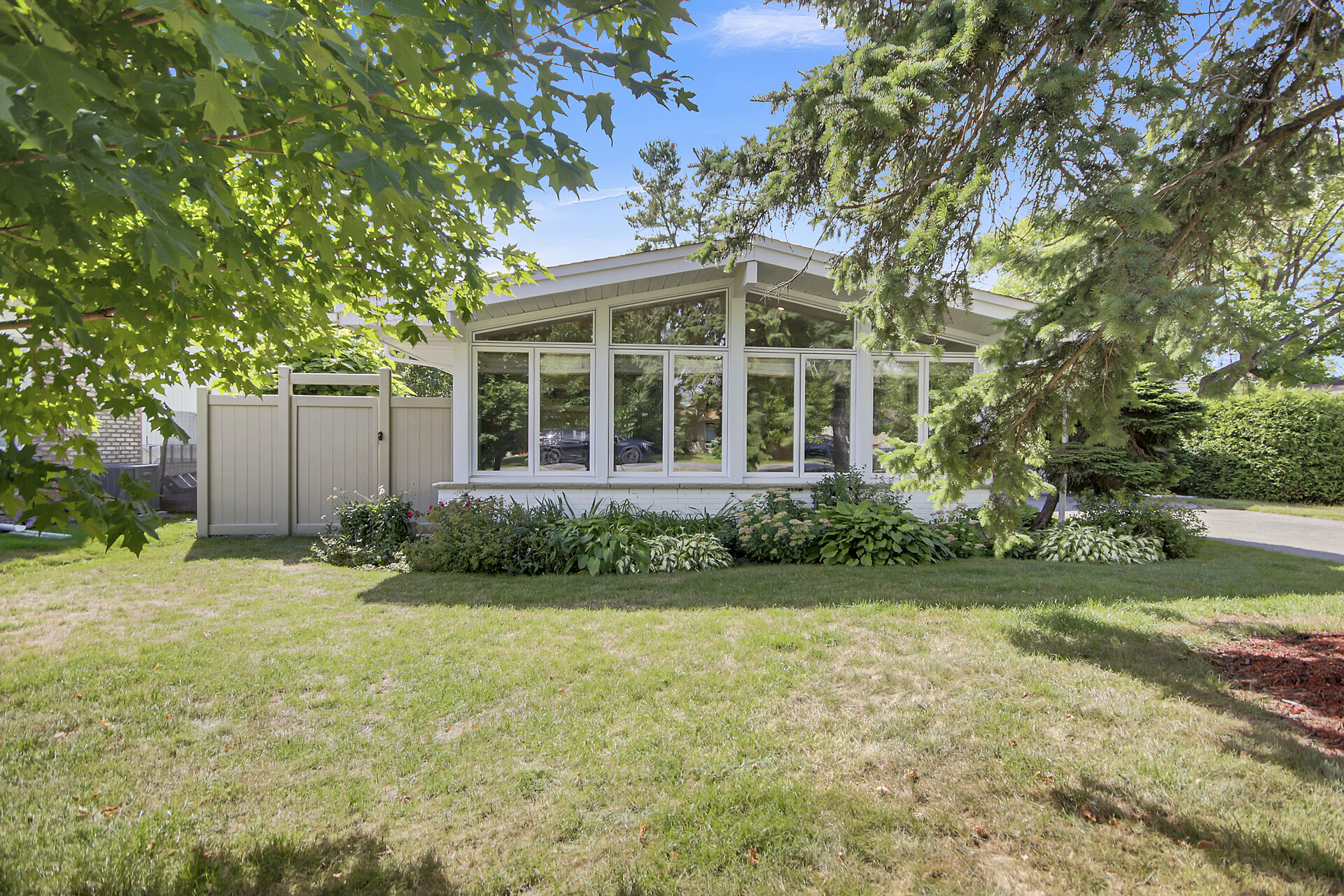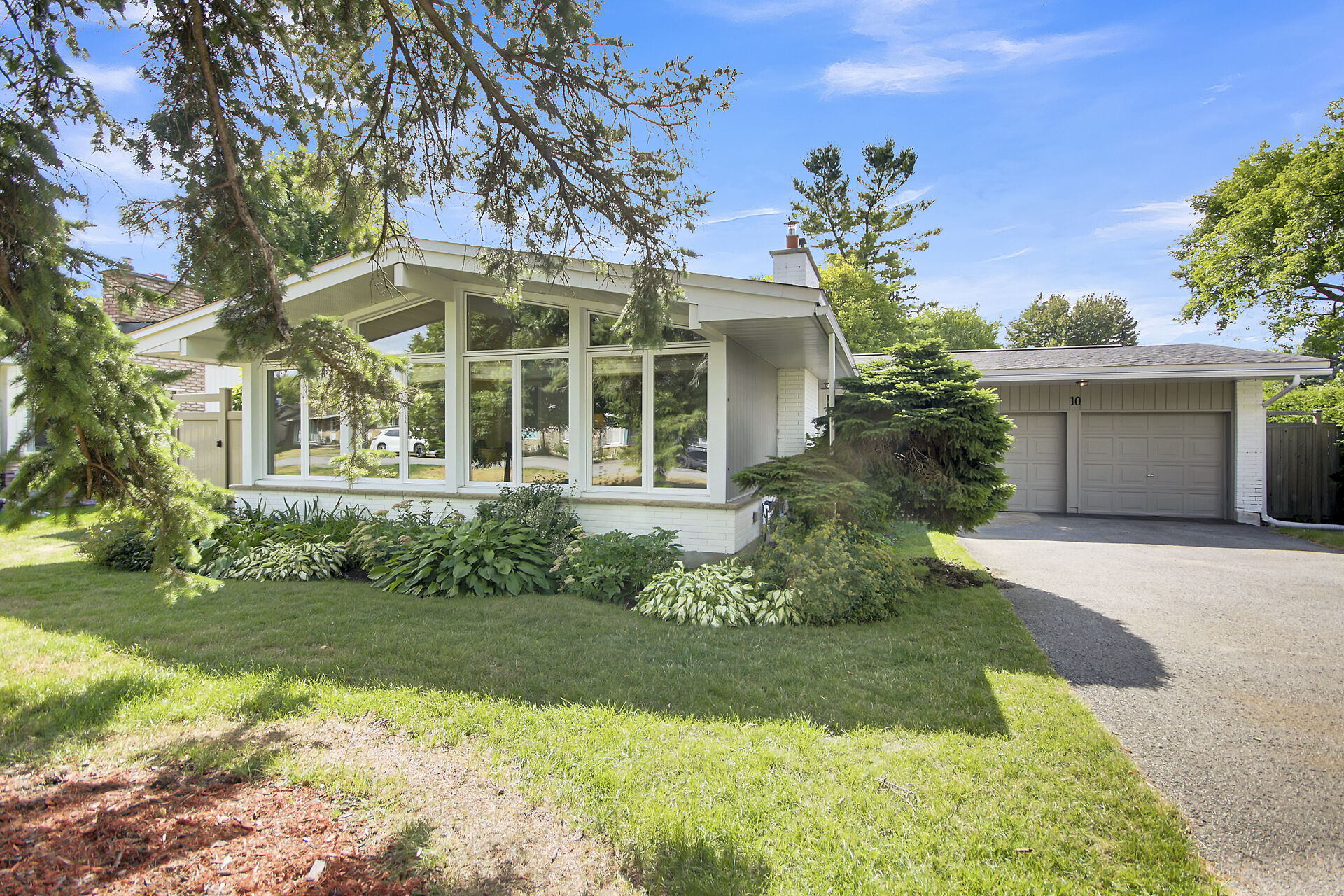 This beautiful 3+1 bedroom, 3-bathroom mid-century modern bungalow is nestled on a quiet, family-friendly street, just steps from the tranquil NCC Greenbelt trails. With its timeless design, this spacious home offers a perfect blend of classic charm and modern updates.The open-concept living and dining areas feature large, upgraded windows that reach the ceiling, flooding the space with natural light and wood burning fireplace. Beautiful hardwood flooring runs throughout the main level, which also includes three bedrooms, a bright den or 4th bedroom, and a stunning sunroom ideal for relaxing or entertaining.The newly renovated basement is a must-see, offering a cozy gas fireplace, and spa-like Bathroom.