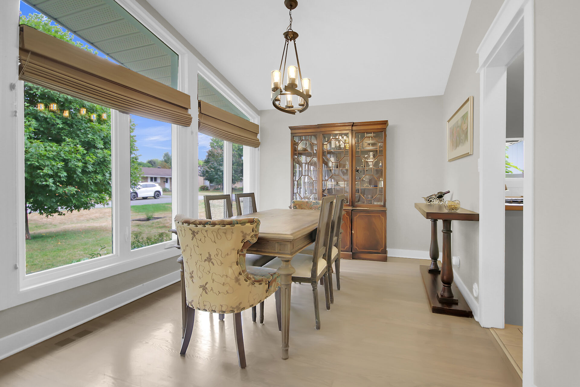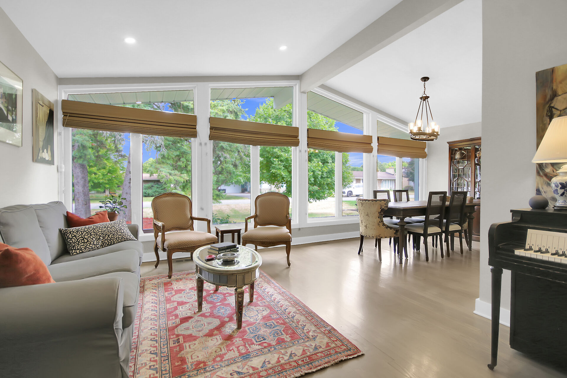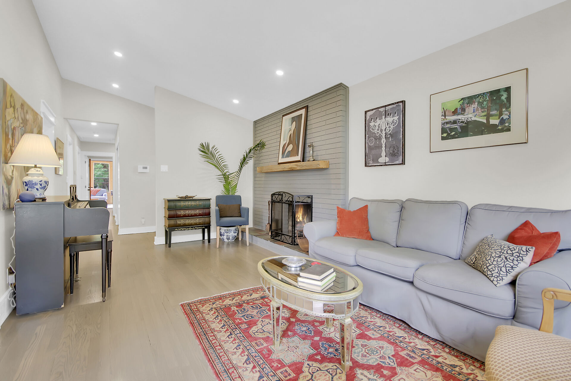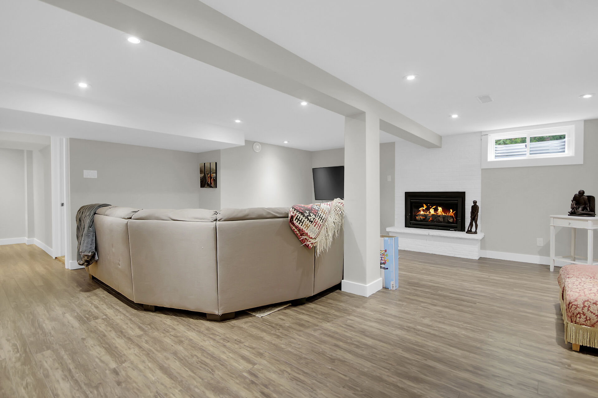 This beautiful 3+1 bedroom, 3-bathroom mid-century modern bungalow is nestled on a quiet, family-friendly street, just steps from the tranquil NCC Greenbelt trails. With its timeless design, this spacious home offers a perfect blend of classic charm and modern updates.The open-concept living and dining areas feature large, upgraded windows that reach the ceiling, flooding the space with natural light and wood burning fireplace. Beautiful hardwood flooring runs throughout the main level, which also includes three bedrooms, a bright den or 4th bedroom, and a stunning sunroom ideal for relaxing or entertaining.The newly renovated basement is a must-see, offering a cozy gas fireplace, and spa-like Bathroom.