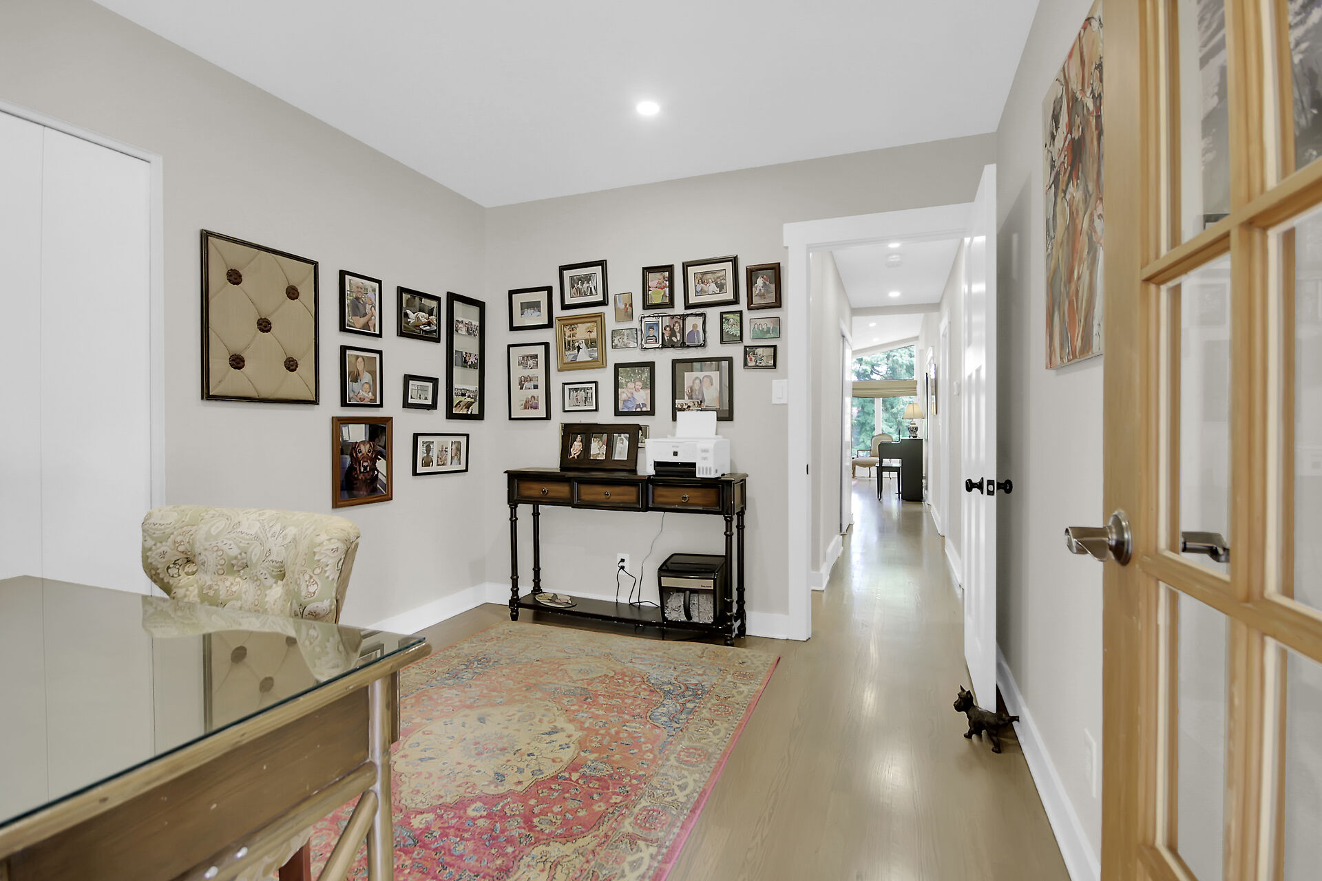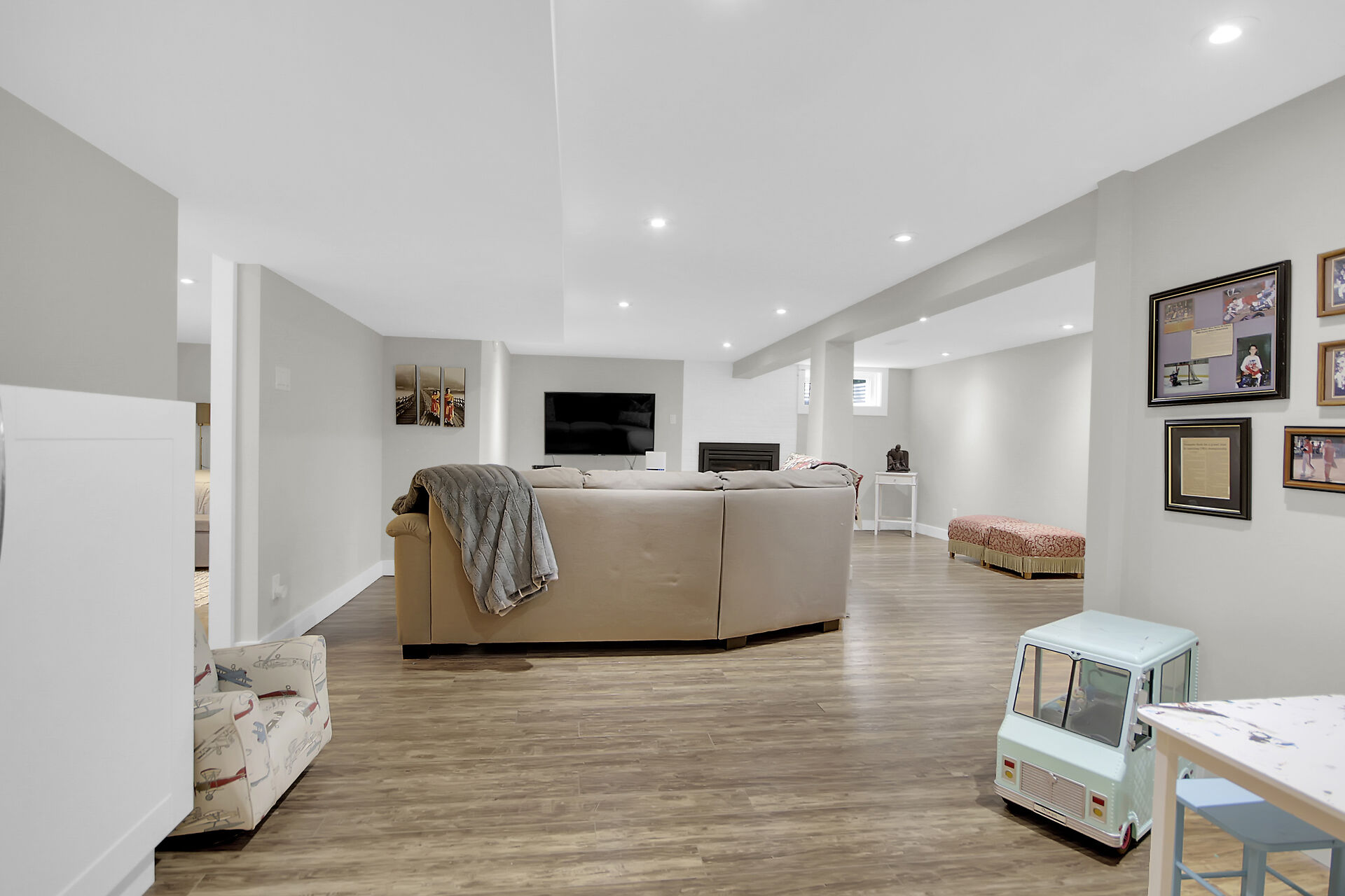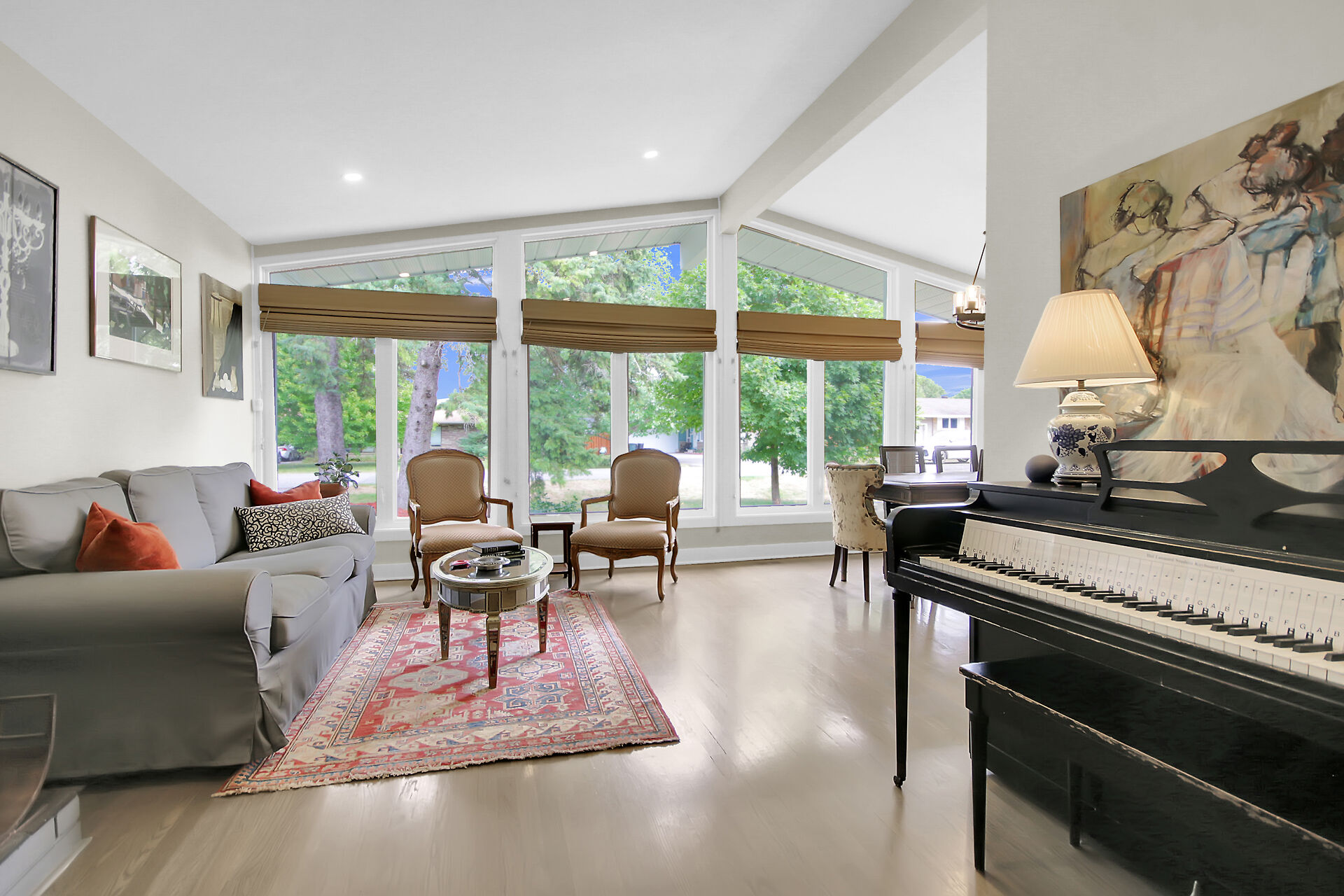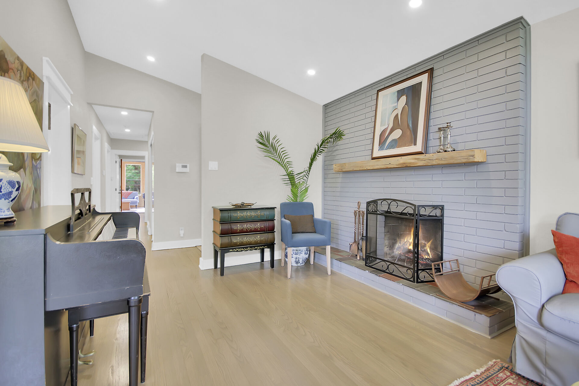 This beautiful 3+1 bedroom, 3-bathroom mid-century modern bungalow is nestled on a quiet, family-friendly street, just steps from the tranquil NCC Greenbelt trails. With its timeless design, this spacious home offers a perfect blend of classic charm and modern updates.The open-concept living and dining areas feature large, upgraded windows that reach the ceiling, flooding the space with natural light and wood burning fireplace. Beautiful hardwood flooring runs throughout the main level, which also includes three bedrooms, a bright den or 4th bedroom, and a stunning sunroom ideal for relaxing or entertaining.The newly renovated basement is a must-see, offering a cozy gas fireplace, and spa-like Bathroom.