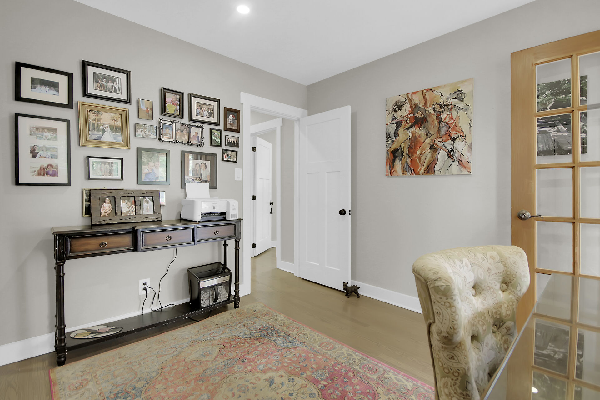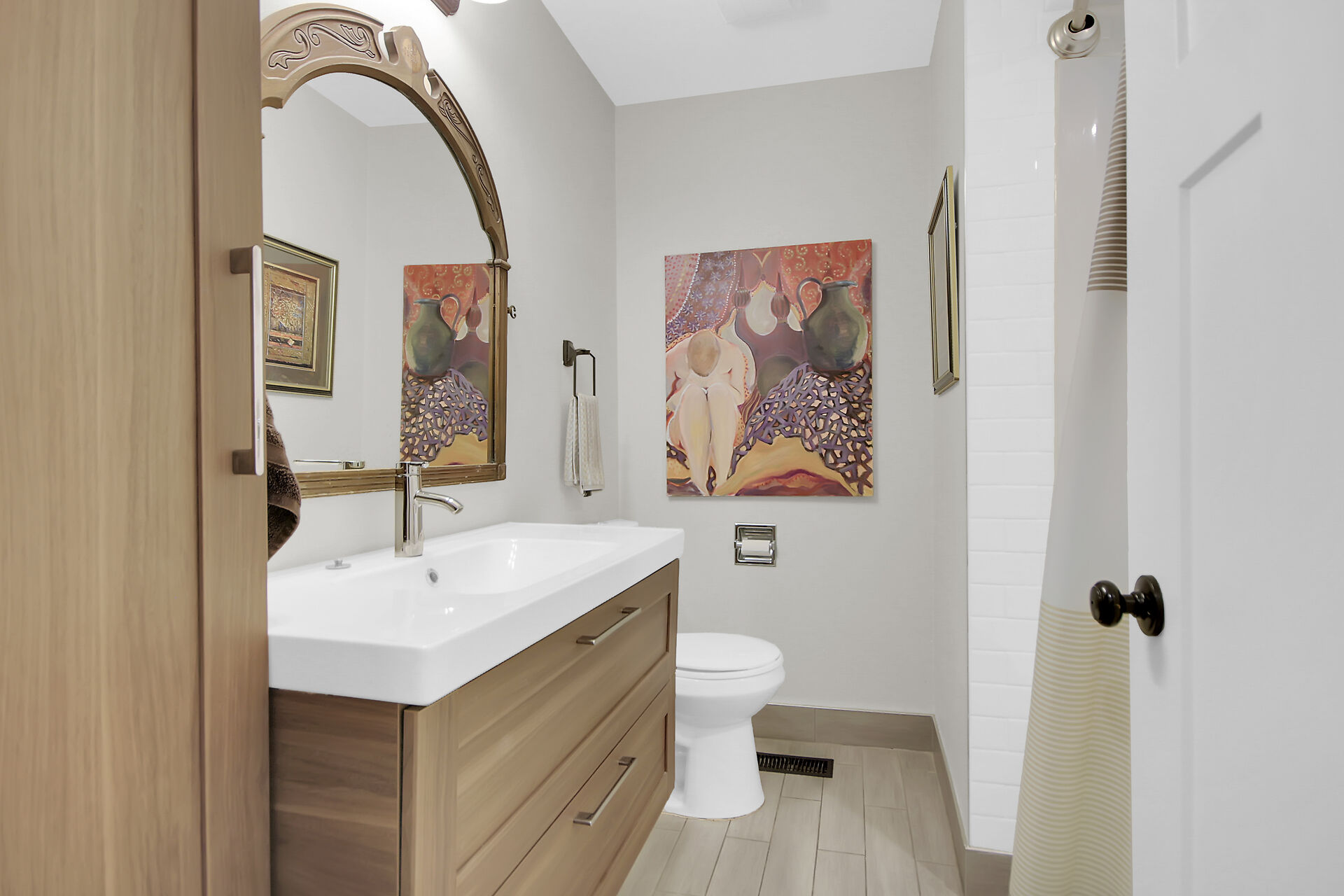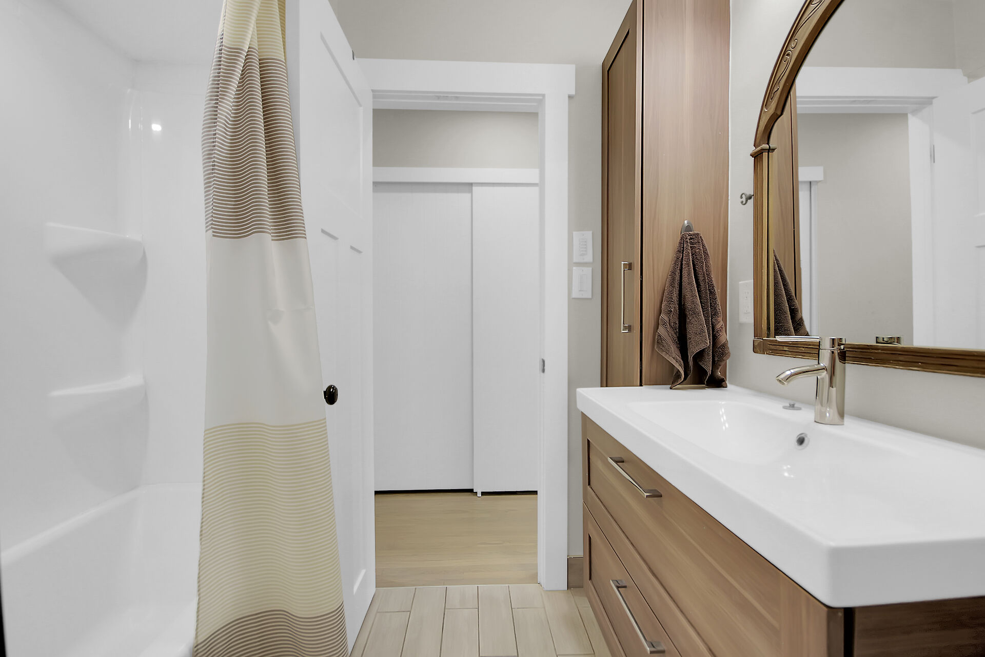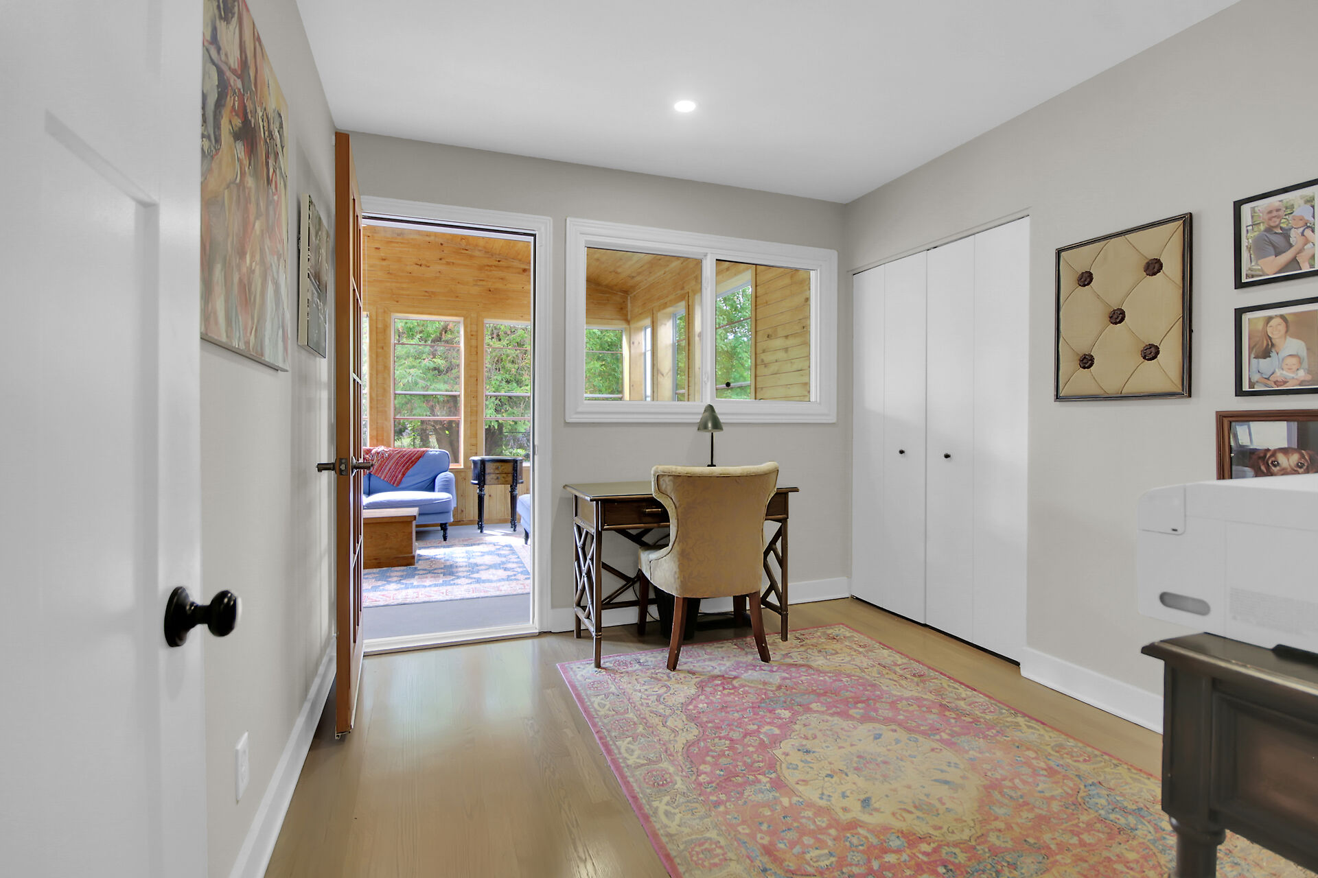 This beautiful 3+1 bedroom, 3-bathroom mid-century modern bungalow is nestled on a quiet, family-friendly street, just steps from the tranquil NCC Greenbelt trails. With its timeless design, this spacious home offers a perfect blend of classic charm and modern updates.The open-concept living and dining areas feature large, upgraded windows that reach the ceiling, flooding the space with natural light and wood burning fireplace. Beautiful hardwood flooring runs throughout the main level, which also includes three bedrooms, a bright den or 4th bedroom, and a stunning sunroom ideal for relaxing or entertaining.The newly renovated basement is a must-see, offering a cozy gas fireplace, and spa-like Bathroom.