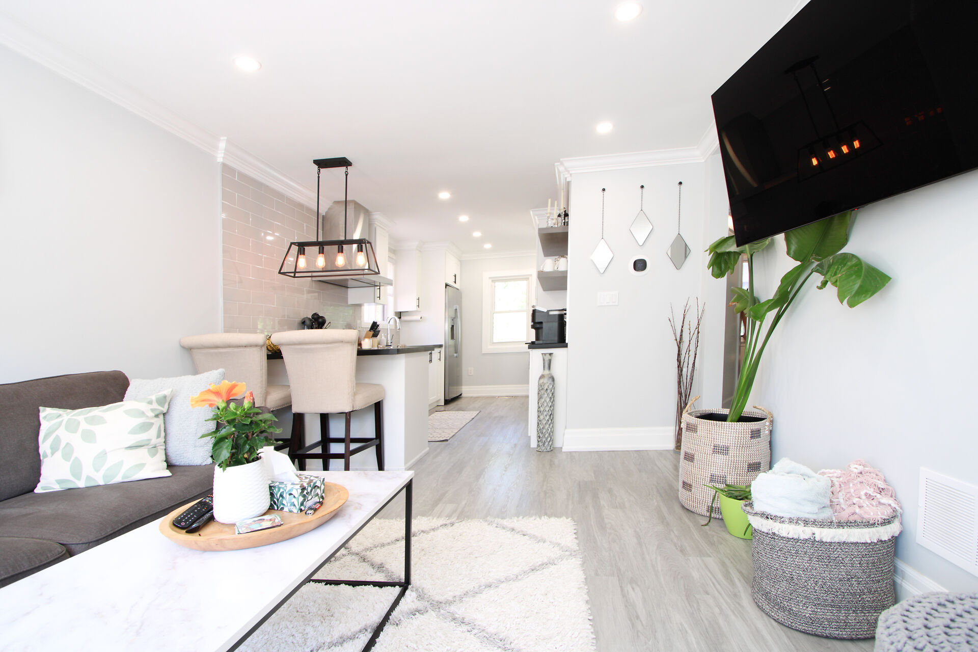 This fully renovated bungalow offers bright, open-concept living with a sleek kitchen (2022) featuring GE stainless-steel appliances, a pantry, and coffee bar. Stylish LVP flooring, updated lighting, and upgraded HVAC, electrical (2022), and plumbing (2025) ensure comfort and efficiency. The main level includes two bedrooms and a 4-piece bath. Downstairs, a new staircase (2025) leads to a versatile rec/office space, third bedroom, and full bath/laundry (2025) with GE washer/dryer. Bonus: large utility/storage room with extra fridge/freezer. Enjoy a multi-level deck with gas BBQ hookup (2022) and a spacious, fenced yard with fruit trees, gardens, and room to expand. Just steps from Inch Park and minutes to shopping