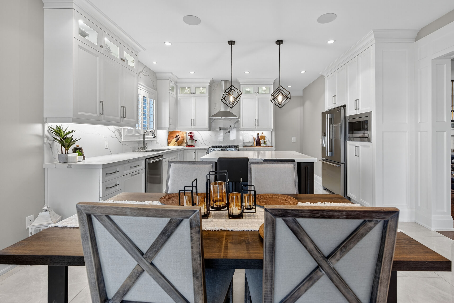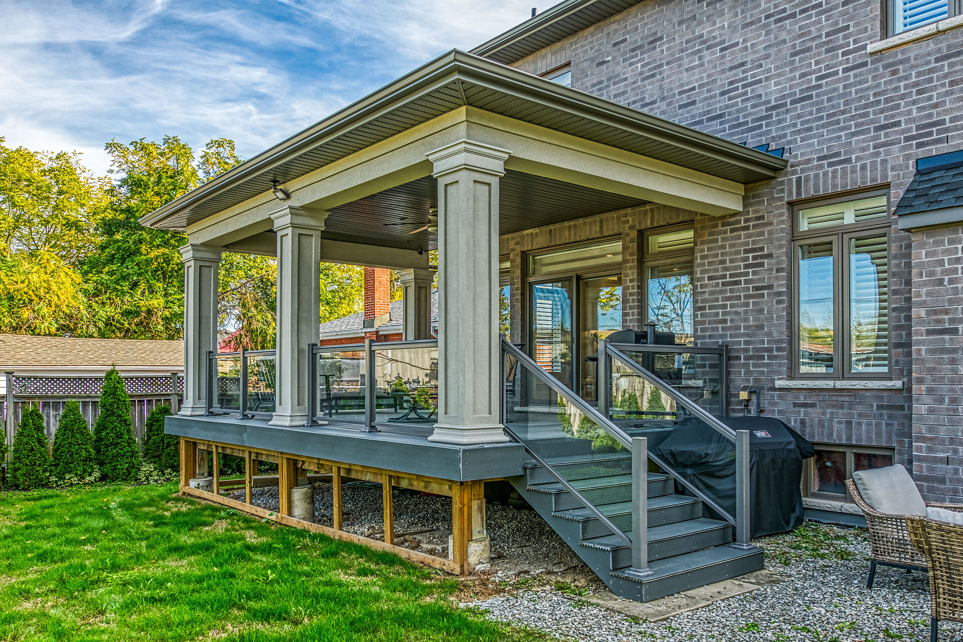 Every inch of this 2,531 sq ft custom-built home has been thoughtfully designed. Featuring 3 spacious bedrooms and 2.5 luxurious baths, this home offers quartz countertops in all bathrooms, kitchen, laundry, and wet bar. Enjoy engineered hardwood throughout, solid wood doors, custom cabinetry in every room, built-in ceiling speakers, wide staircase, and a private side entrance to the insulated, unfinished basement. Coffered ceilings, California shutters, and pot lights elevate every room. The fenced backyard with newly planted cedar trees offers growing privacy. Double garage + 4-car drive. A truly turnkey luxury home!