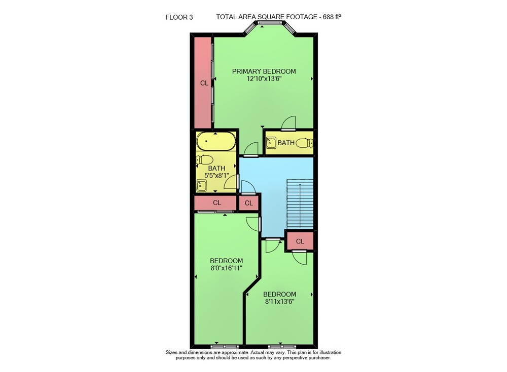 Floor 2: 519 sq ft, Floor 3: 688 sq ft, Floor 1: 442 sq ft