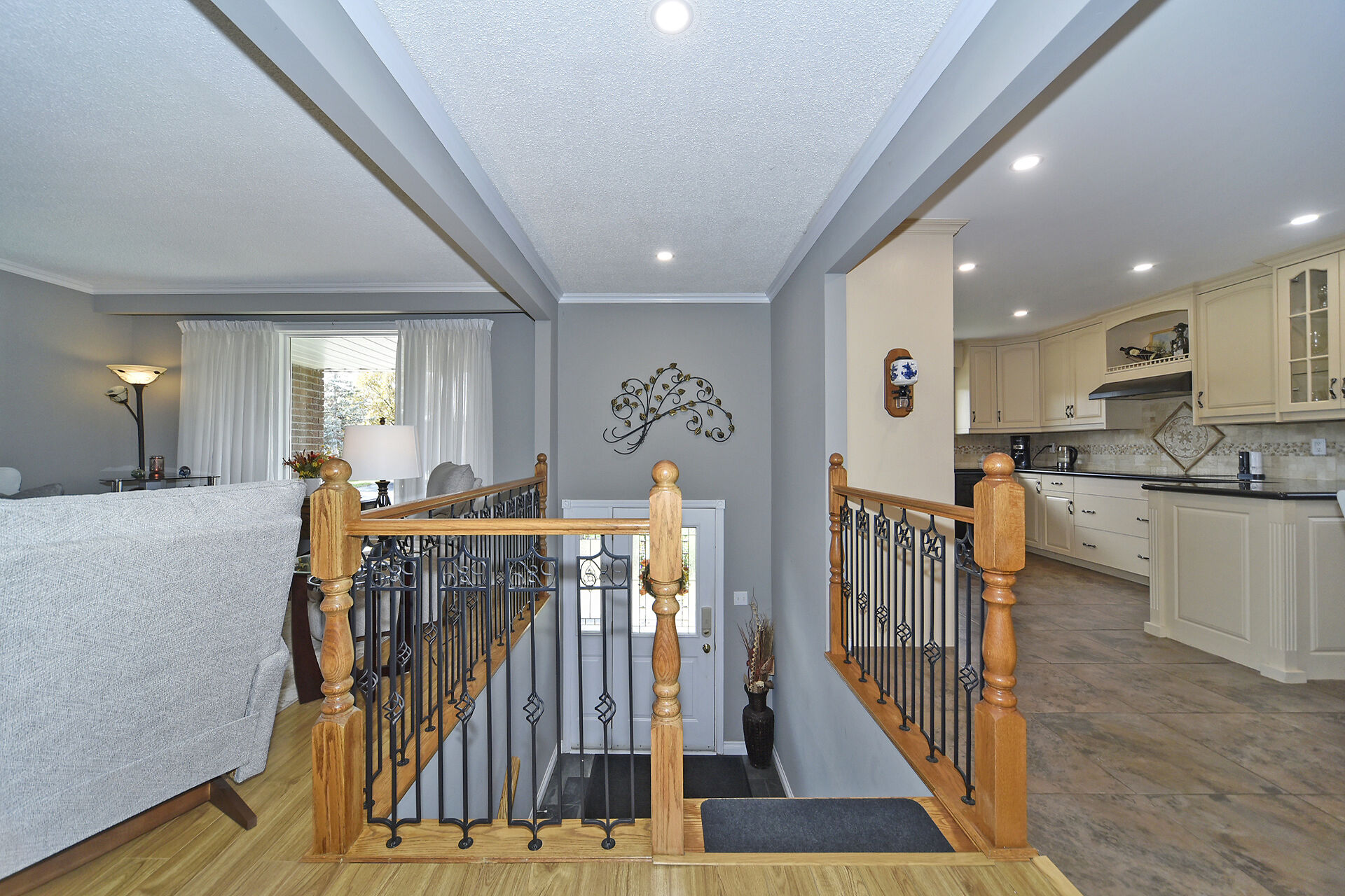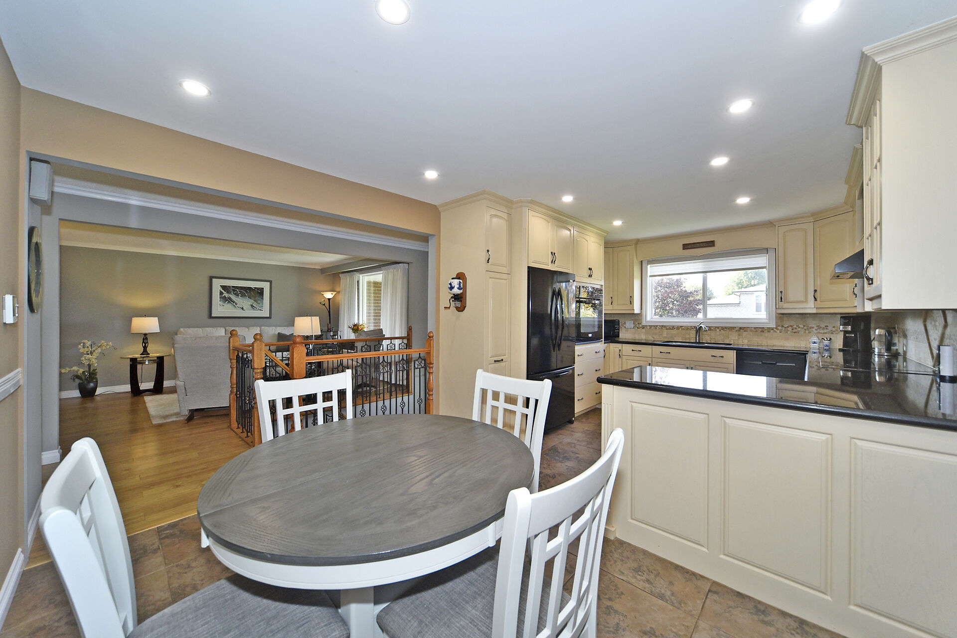 This custom built home has been lovingly cared for and is situated on a mature lot with 2 road frontages and a second garage at the back. Well suited for multi generational living or rental income. The main floor features a country kitchen with ample cabinets, granite countertops and heated floor. The Primary bedroom is 17x11.5 feet with His and Hers closets and a 3pc ensuite which features a walk in shower. All bedrooms are a good size and main bathroom features an air jet tub. Lower level is huge with a Gas Fireplace and 2 walk outs to patio and yard. Fourth bedroom or office has above grade window and a 2pc bath beside. The 14.5x9 ft laundry has an entrance to oversize single garage & lots of storage.
