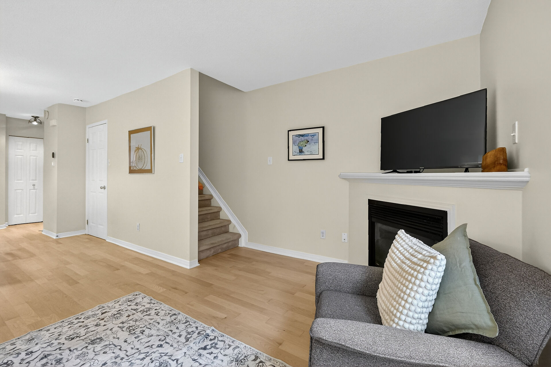 Welcome to this hidden enclave community of townhomes in the heart of Hintonburg, close to central Ottawa and walkable to all the coffee shops and stores in the Wellington neighbourhood. This bright, spacious end-unit, with 2 good-sized bedrooms and 1.5 baths has a prime, quiet location on the interior cul-de-sac. Just a 5-minute walk to two LRT lines at the Bayview Stn! Ground level is the garage with inside access, with a mechanical room and storage, as well as a flex family room/den/guest room with the optional queen-sized Murphy bed, and walk-out to your low-maintenance, private courtyard-style rear yard.