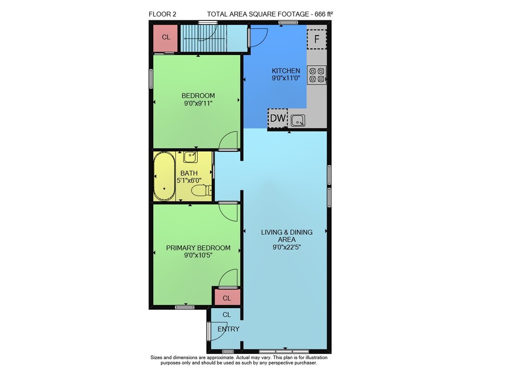 Floor 2: 666 sq ft, Floor 1: 643 sq ft