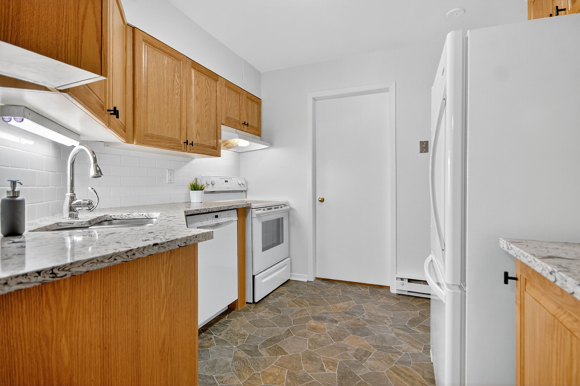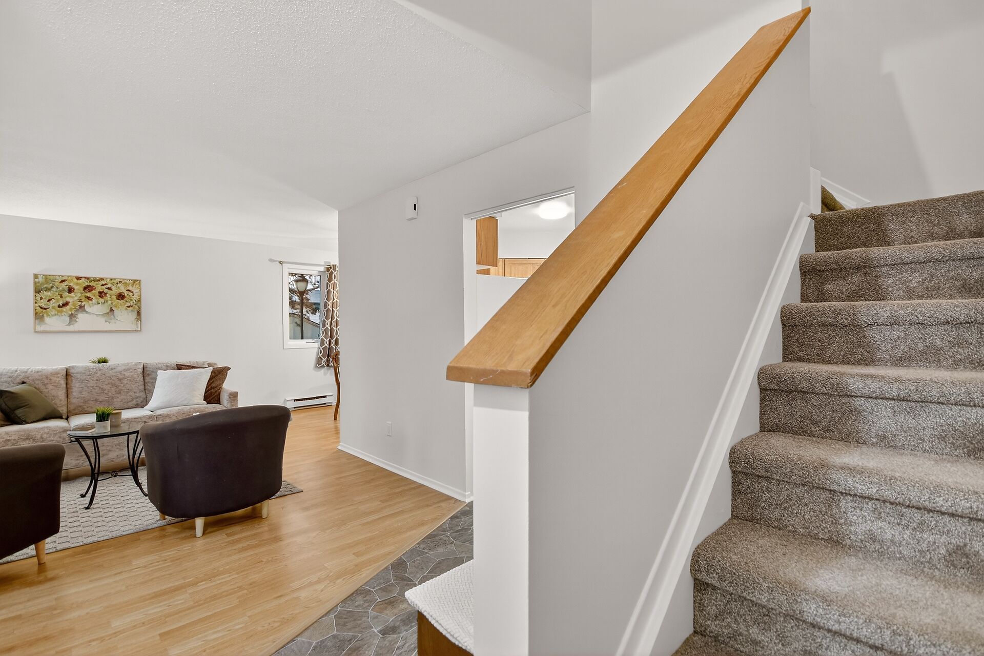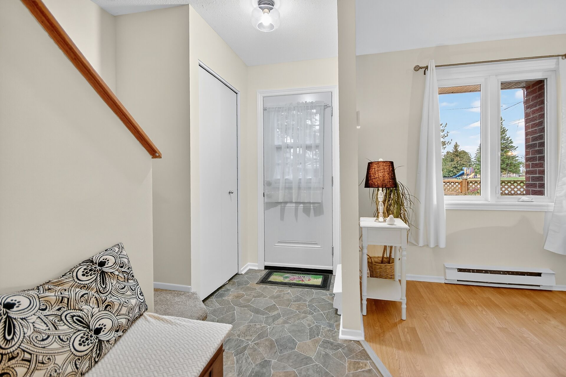 Welcome to 95 Findlay Avenue, Unit F1. A charming 2 Story, 2 bedroom, 1.5 bath end unit townhome is perfectly situated at the edge of Carleton Place. A welcoming foyer with ample closet space leads into a warm and spacious living room with 2 large windows and an electric fireplace. Seamless flow into the dining room area, perfect for relaxing and entertaining. Functional Galley Style kitchen features granite countertops and beautiful wood cabinets. A convenient powder room combined with laundry located just off of the kitchen. Second level offers a spacious primary bedroom with a wall to wall closet and 2nd bedroom. Large walk in storage room. Private Yard overlooking park. Close to Ottawa Valley Rail Trail & hwy 7