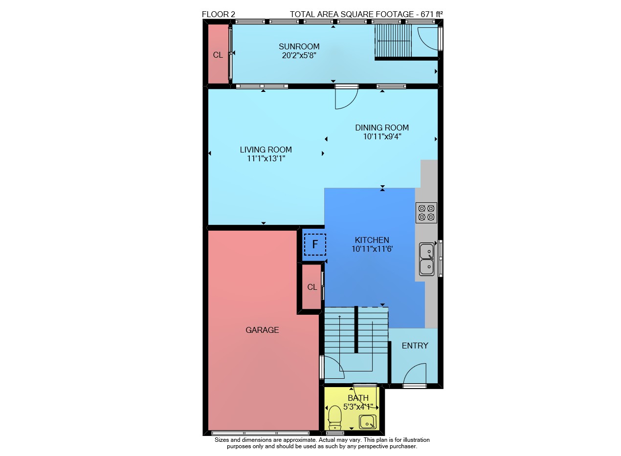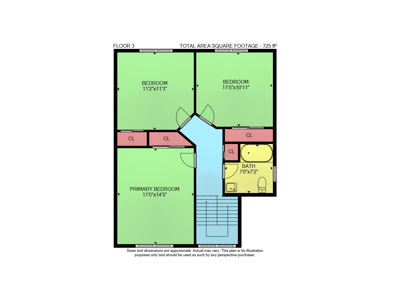 Floor 2: 671 sq ft, Floor 3: 725 sq ft,