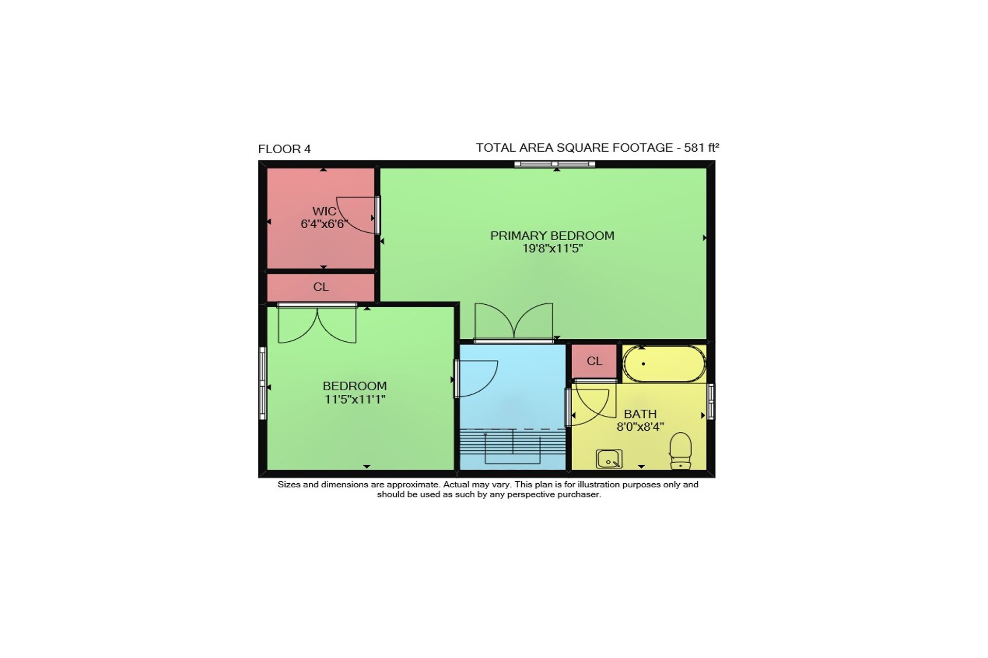 Floor 3: 615 sq ft, Floor 4: 581 sq ft, Floor 2: 568 sq ft, Floor 1: 629 sq ft