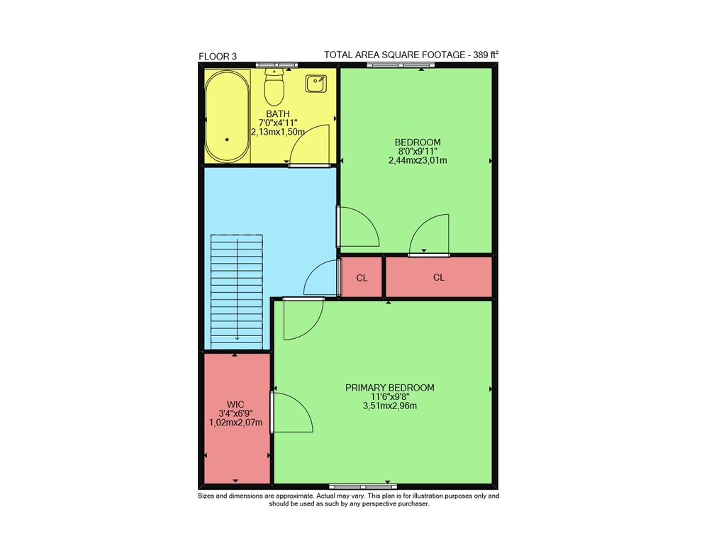 Floor 2: 360 sq ft, Floor 3: 389 sq ft, Floor 1: 309 sq ft