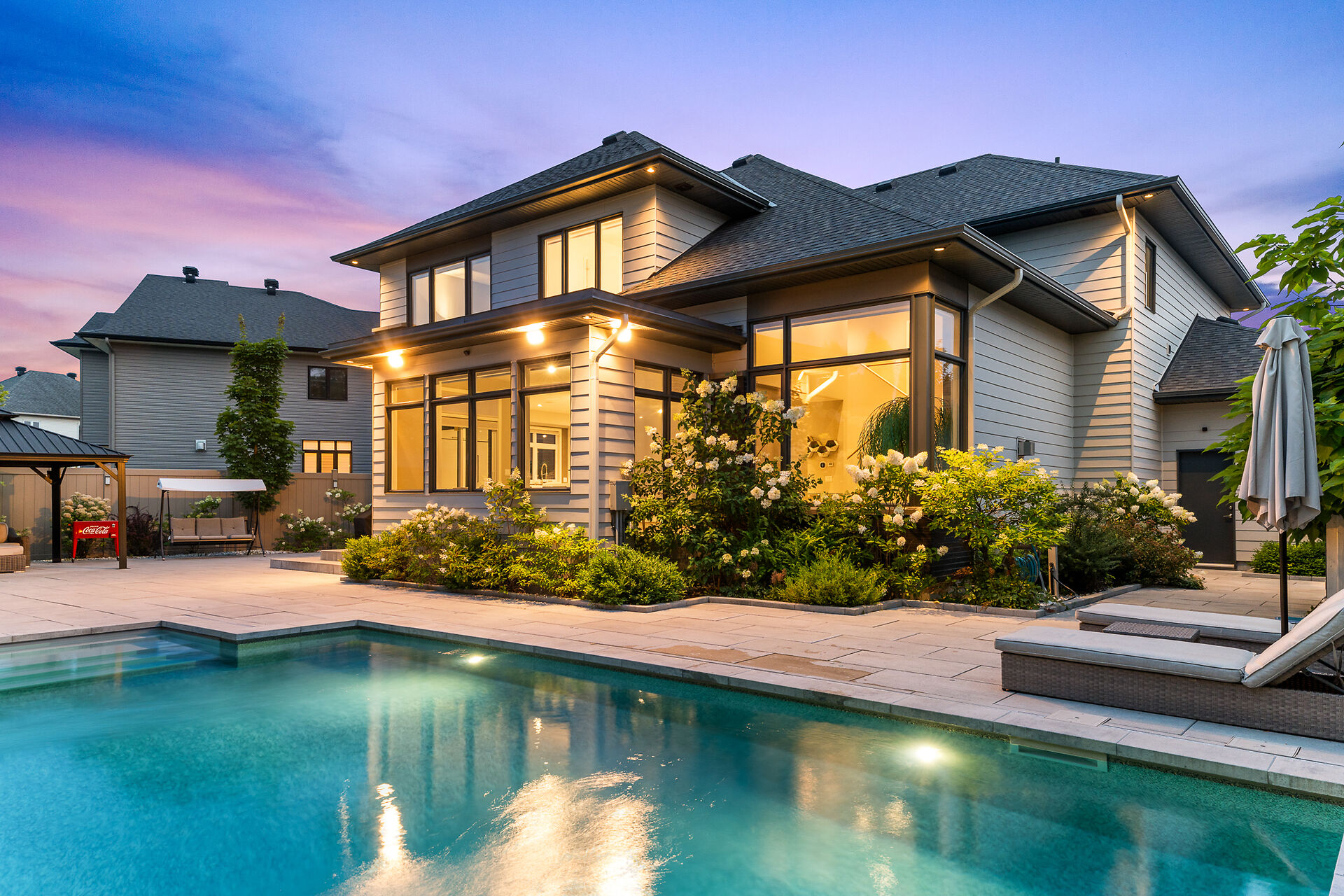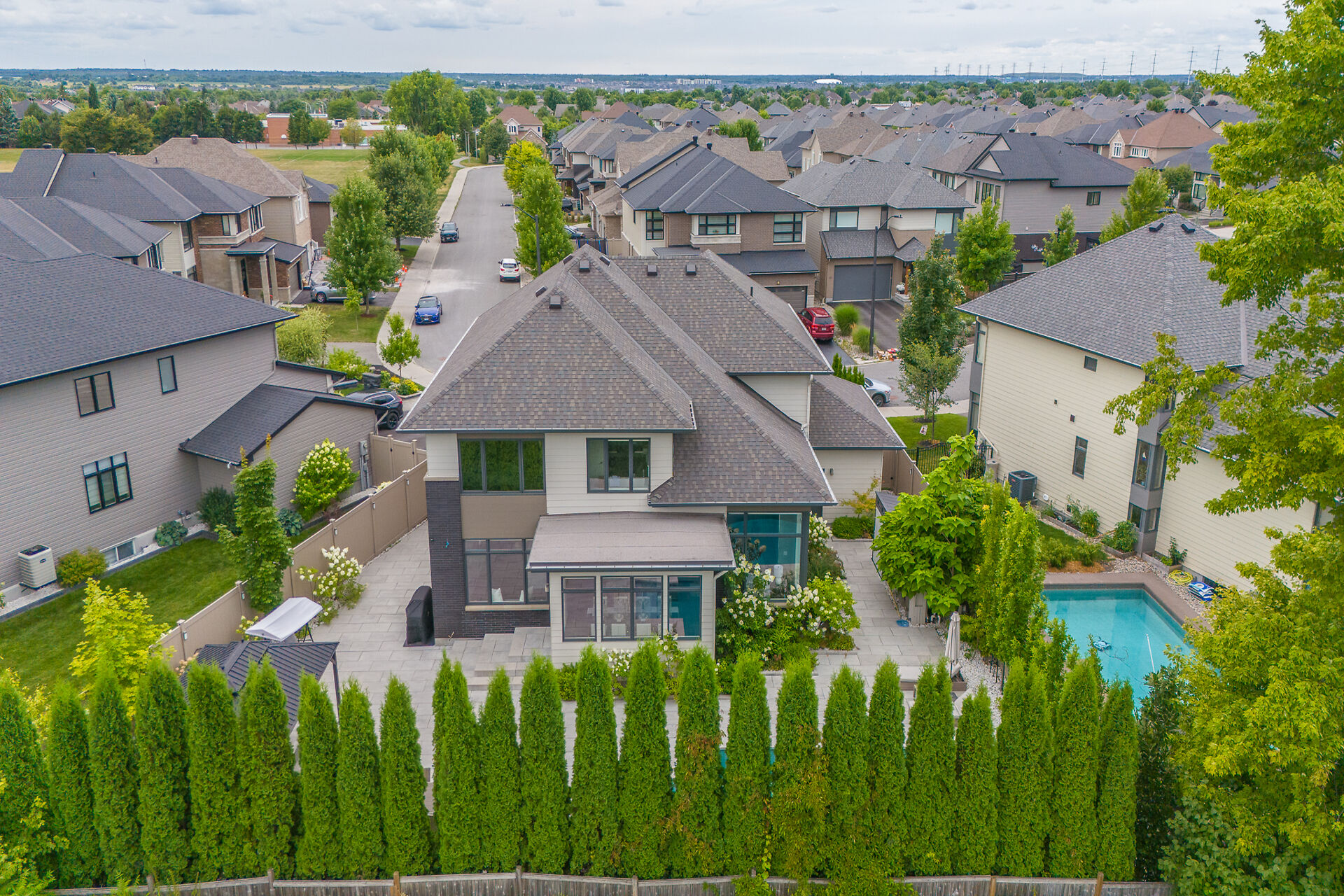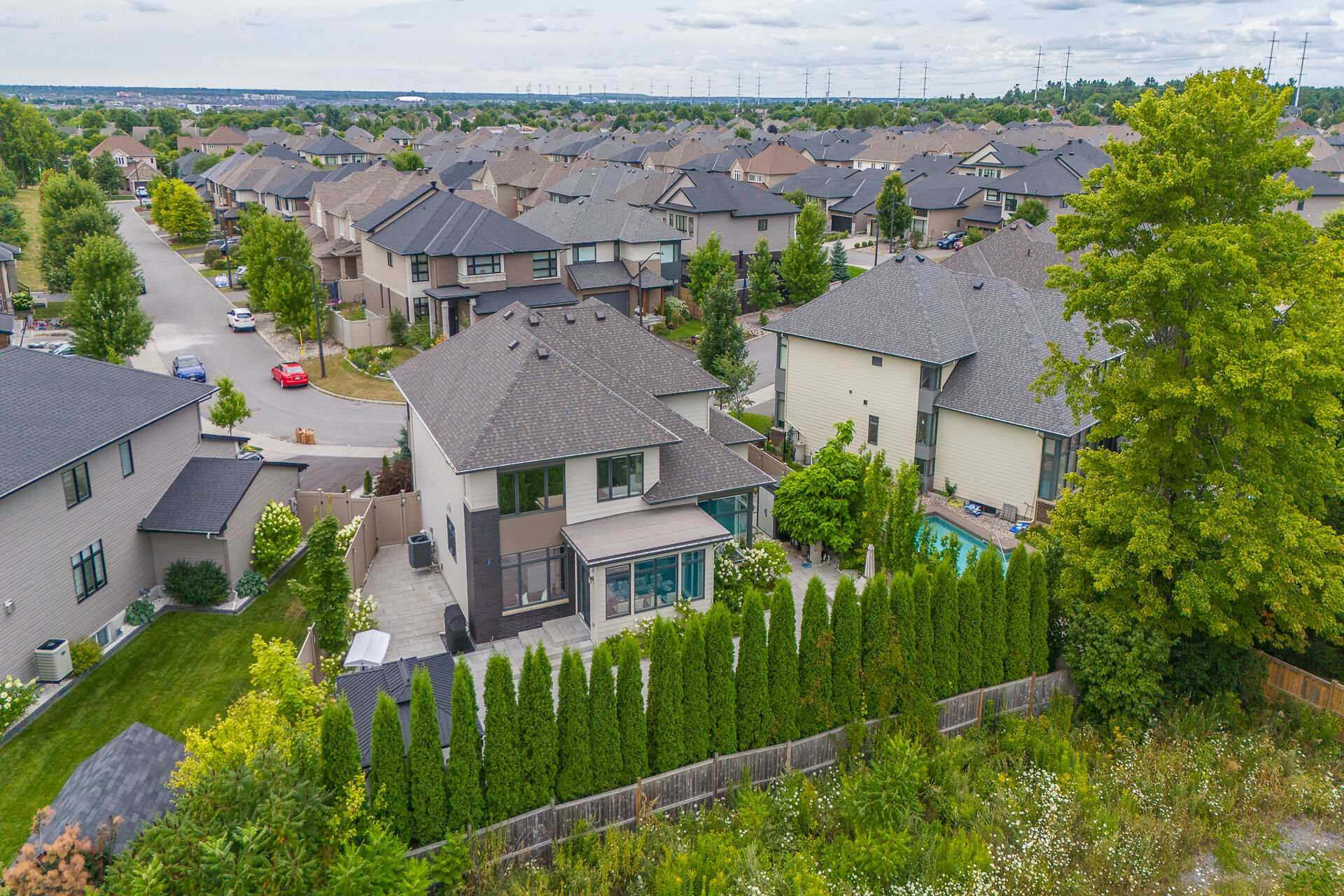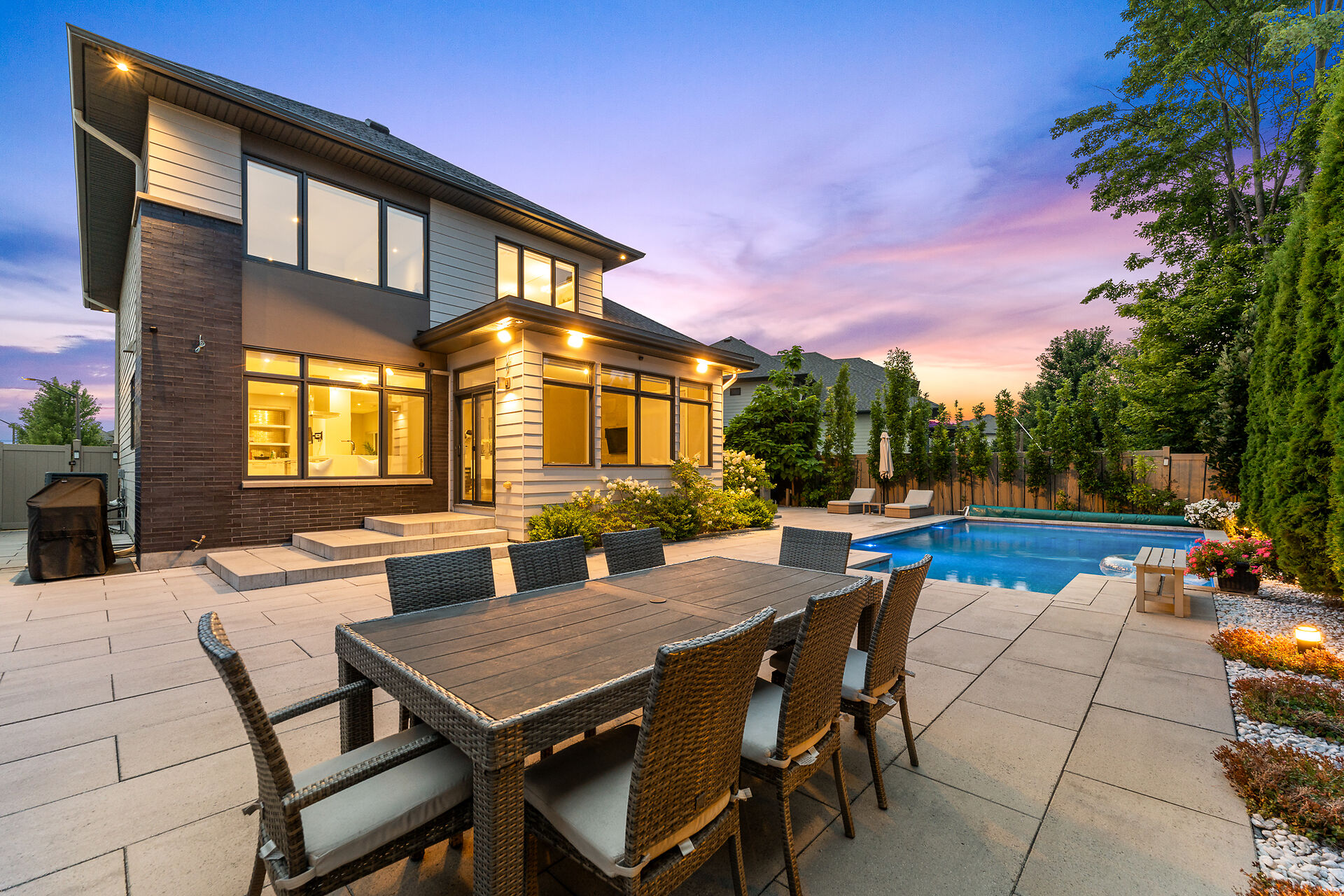 Experience the extraordinary in the heart of Bridlewood. The Borden is a one-of-a-kind luxury home in Kanata, set on an oversized lot with over $330,000 in premium upgrades. Striking curb appeal and modern architecture lead to a sun-filled open-concept interior with hardwood floors and a chef's kitchen featuring a massive island, built-in ovens, induction cooktop, and coffee center. The living room impresses with soaring two-storey ceilings, a floor-to-ceiling tiled feature wall, and a sleek linear gas fireplace. Upstairs, the primary suite offers a spa-like retreat, with three additional bedrooms each featuring ensuites. The finished basement includes a fifth bedroom, ensuite, and a stunning home theatre...