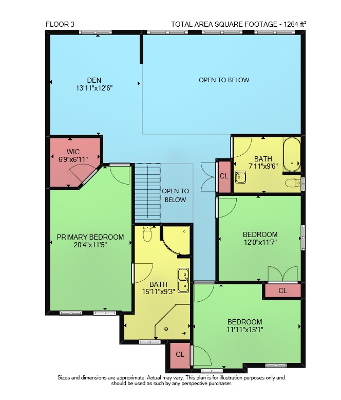 Floor 2: 1209 sq ft, Floor 3: 1264 sq ft,
