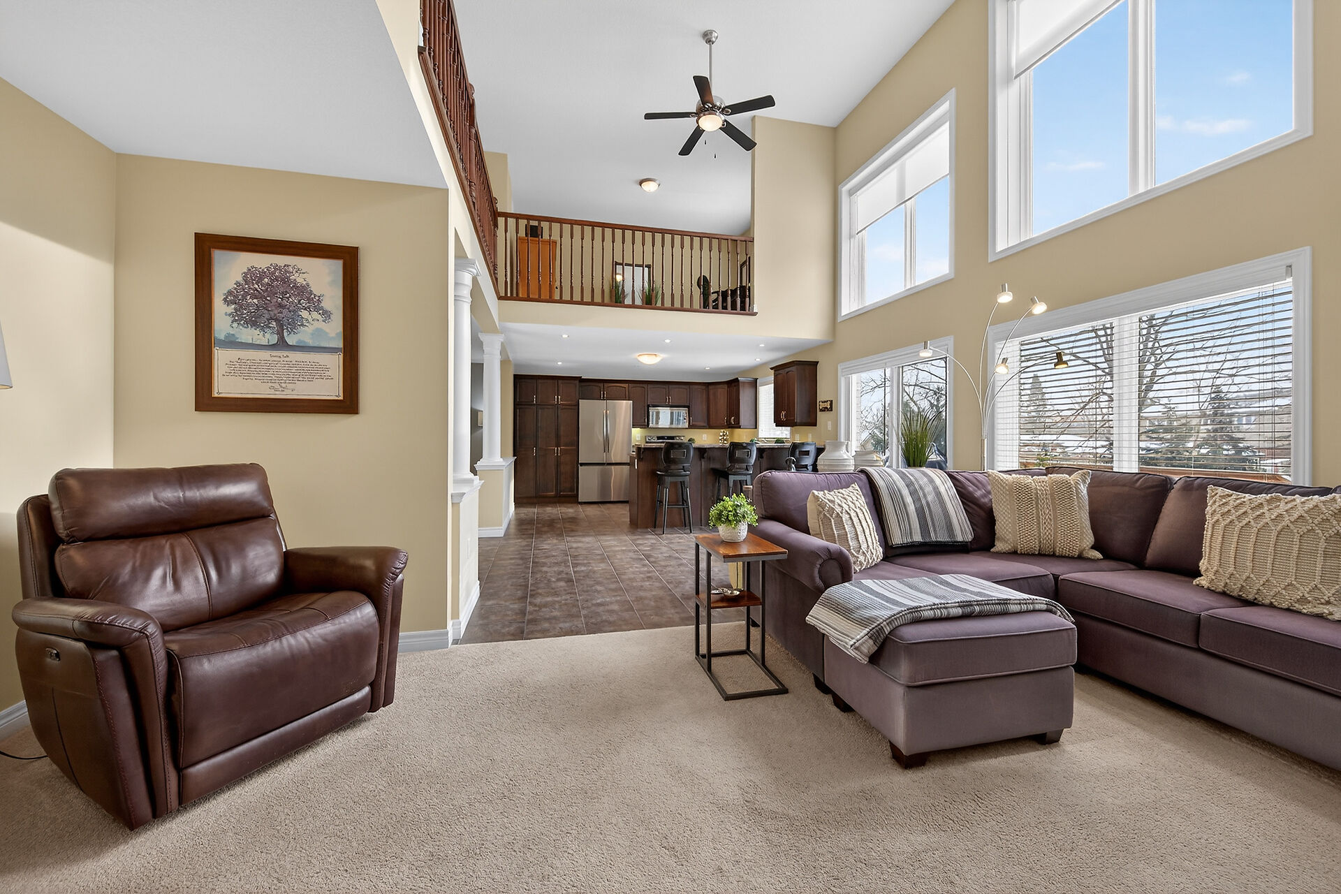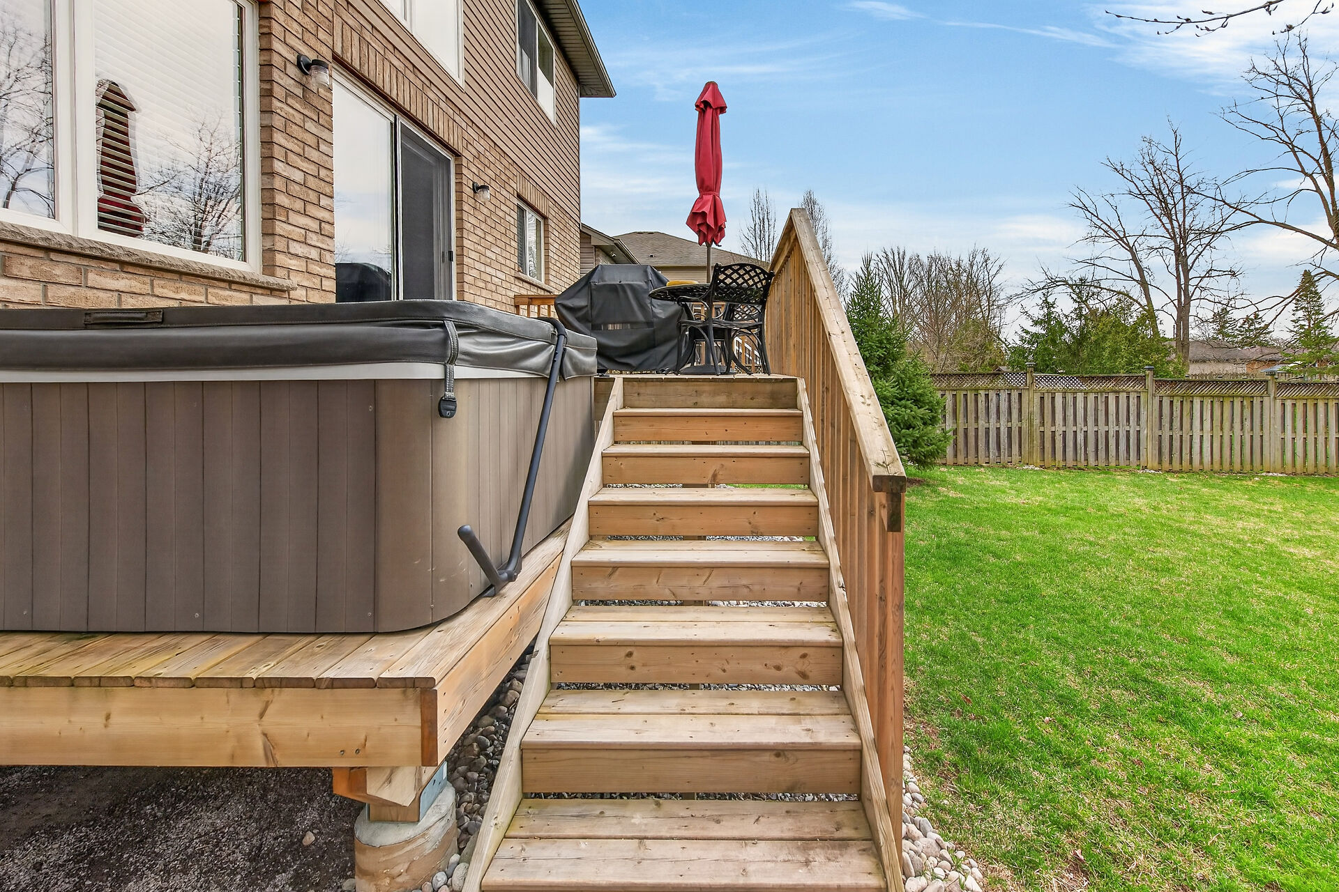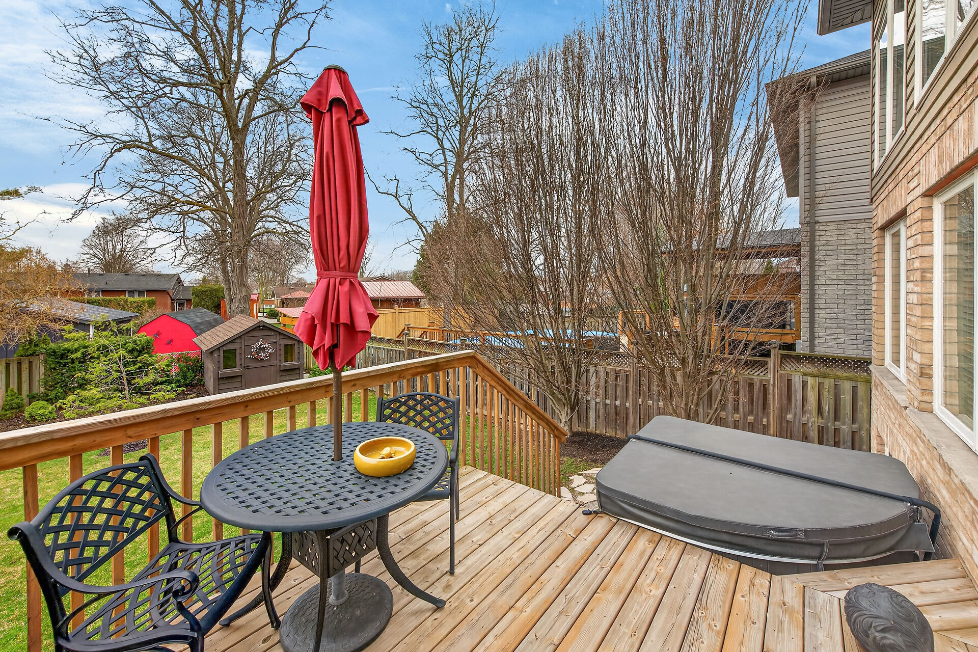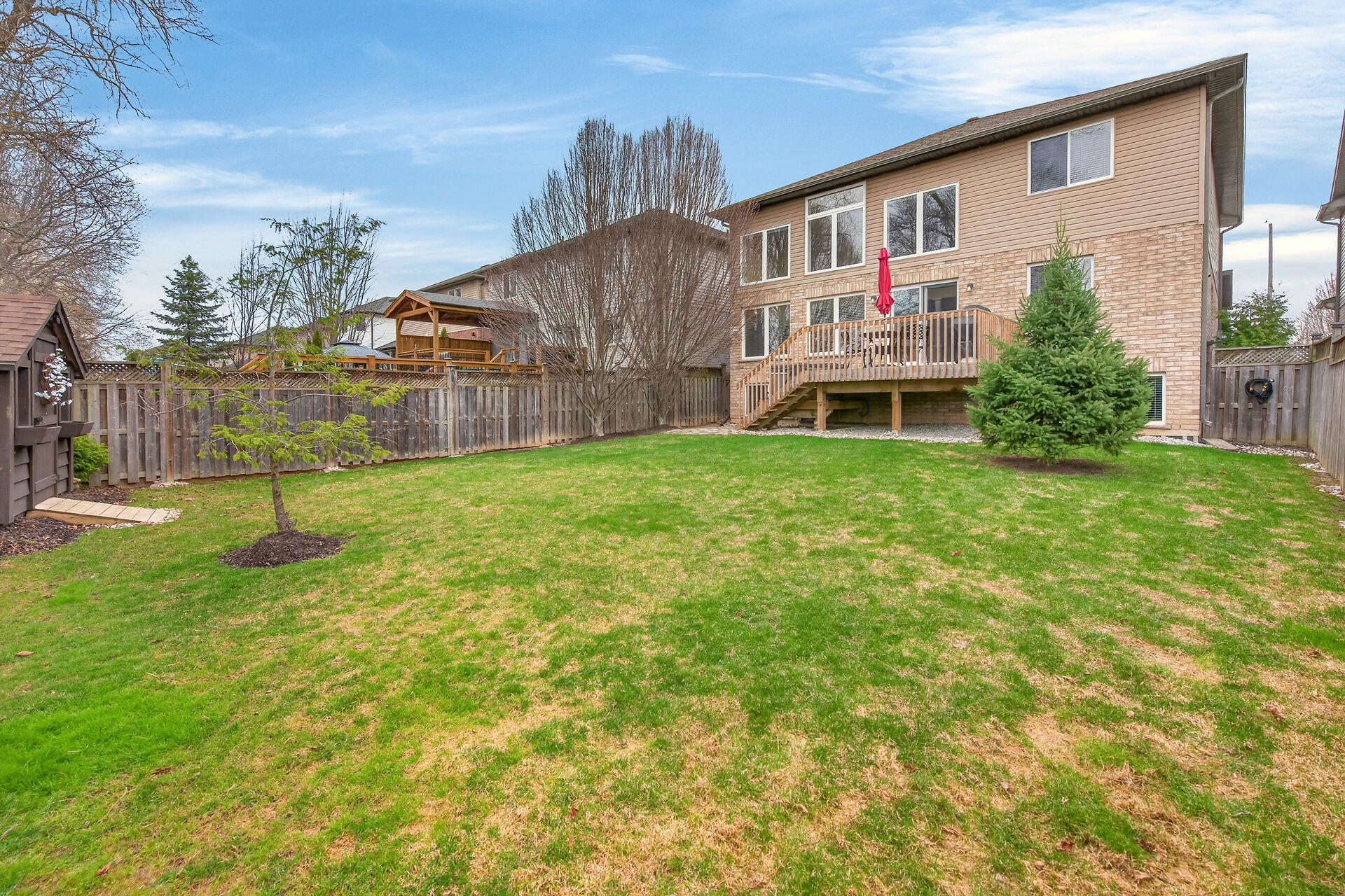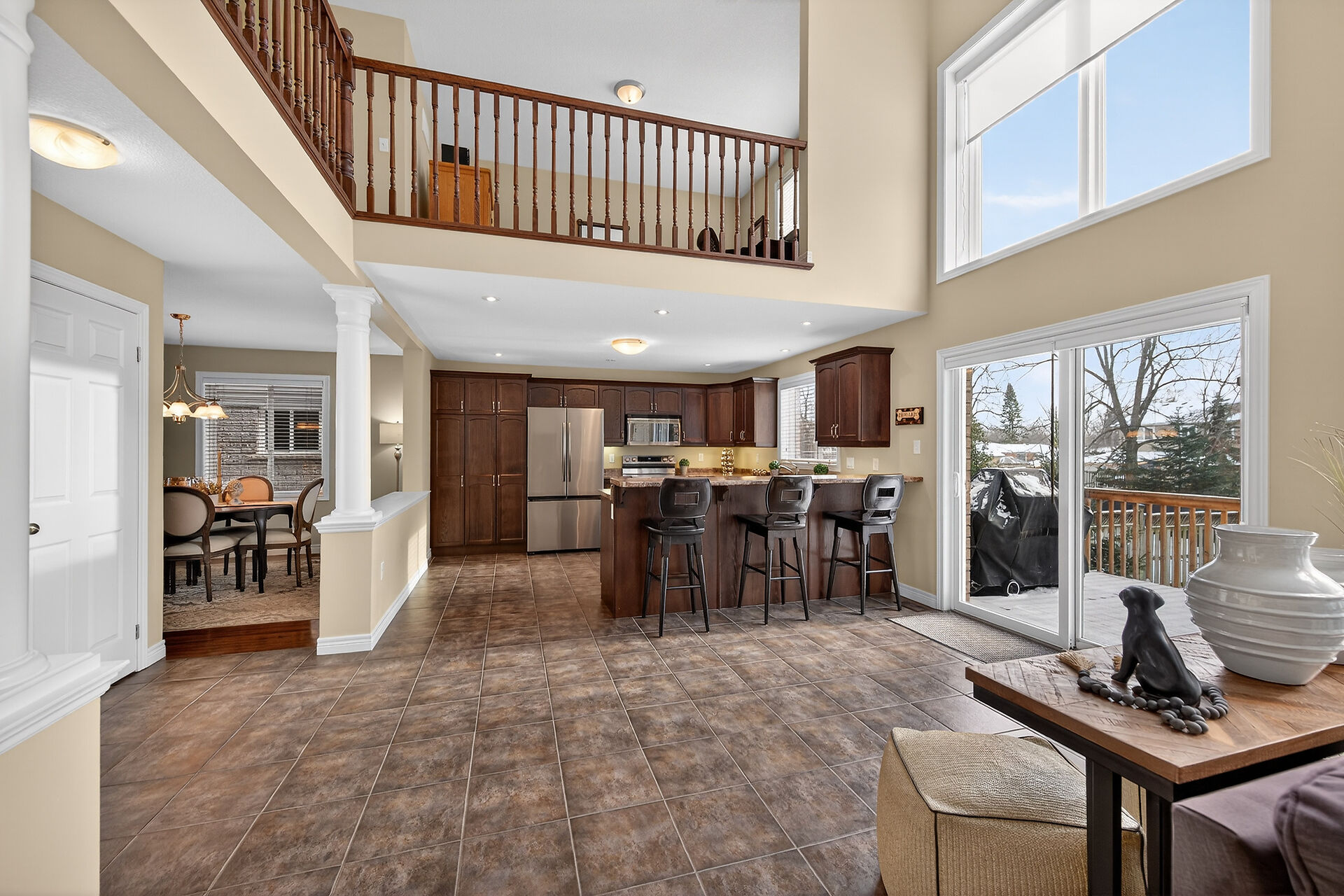 Welcome to this meticulously maintained home with a sophisticated open-concept layout. The family room features impressive two-story south-facing windows, filling the space with natural light, along with a gas fireplace. The main floor offers a formal living & dining area, a chef's kitchen with dinette, powder room, main floor laundry, garage access & patio doors to the back deck. Upstairs are three generous bedrooms, a versatile loft, main bath, & a primary suite with walk-in closet & spa-like ensuite. The insulated basement offers future potential with large windows & a bathroom rough-in. Enjoy the fully fenced, landscaped yard with deck, hot tub, and shed, all in one of Caledonia's most desirable neighbourhoods.